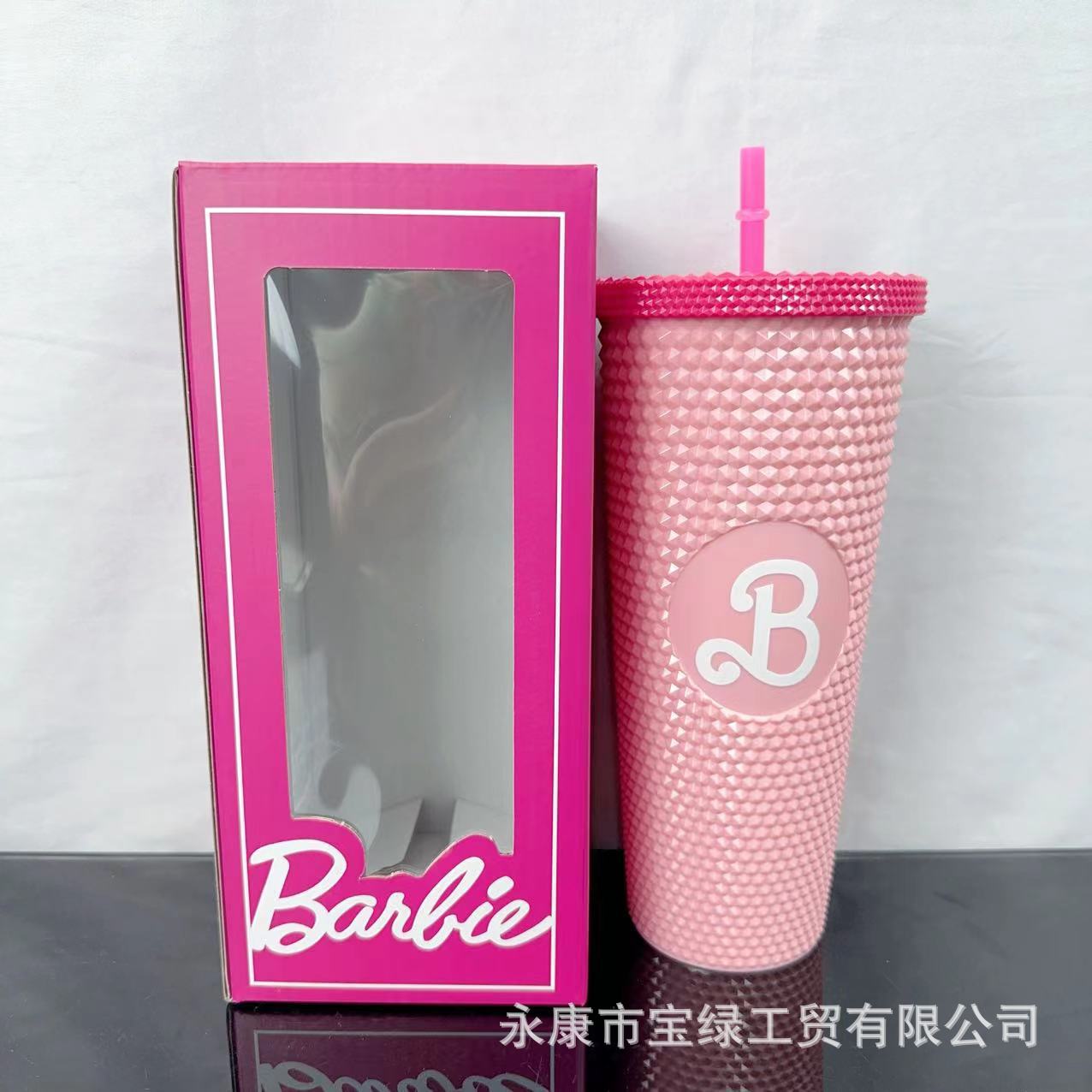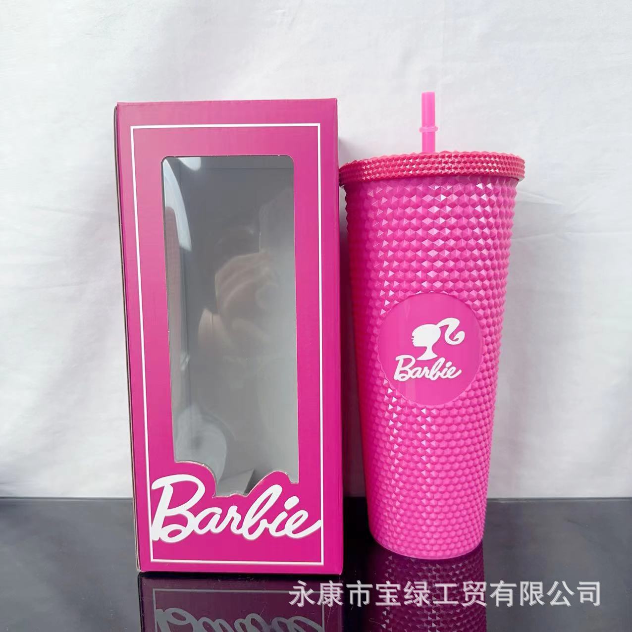 국경 컵 높은 가치의 바비 컵 물 컵 더블 레이어 플라스틱 컵 큰 용량 흡입 튜브 컵 뚜껑 두리안 컵스토어 가기