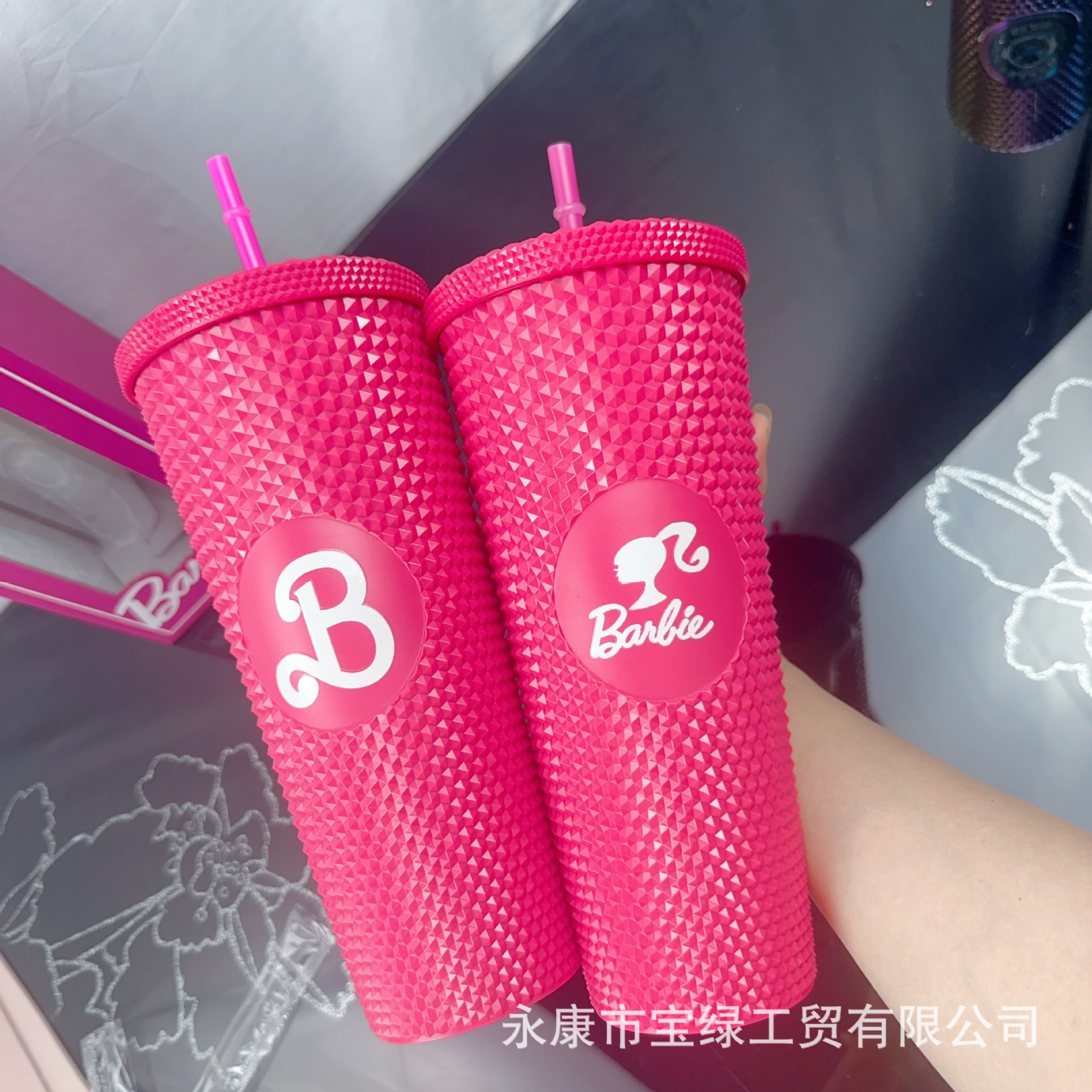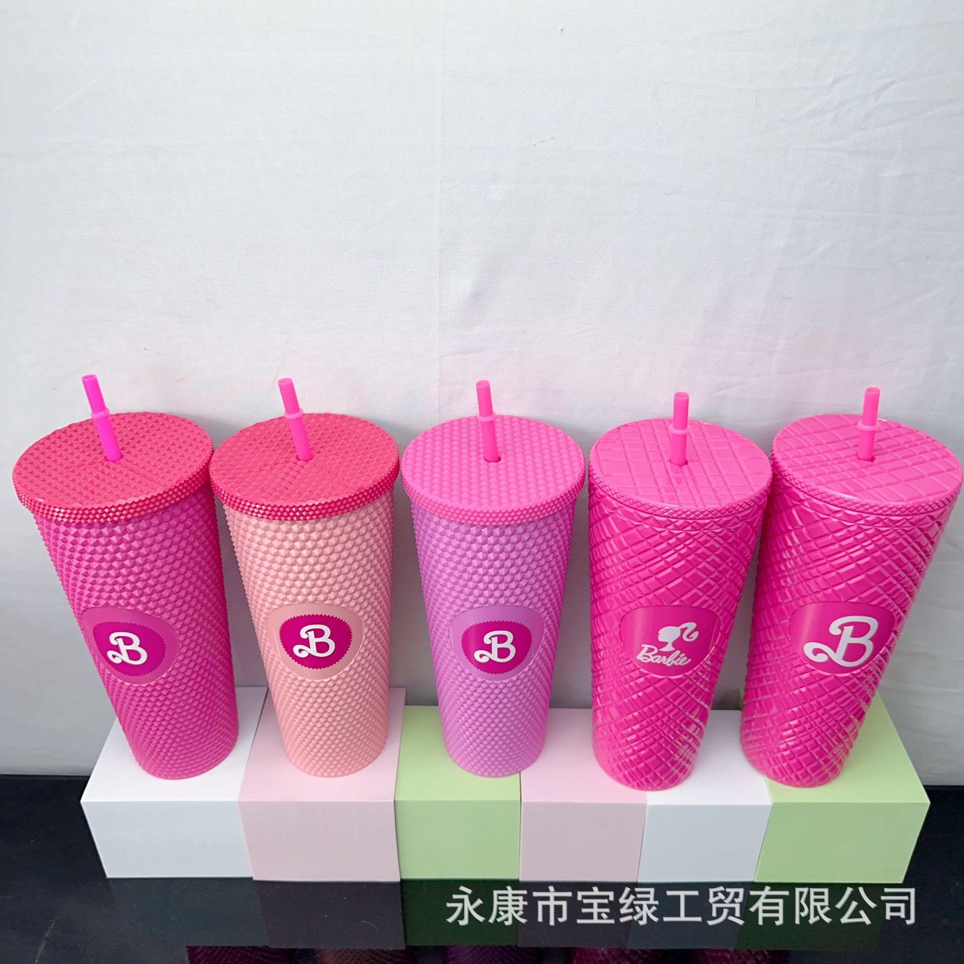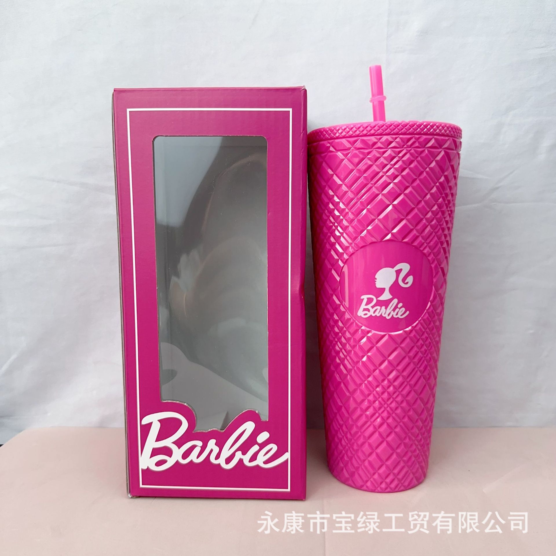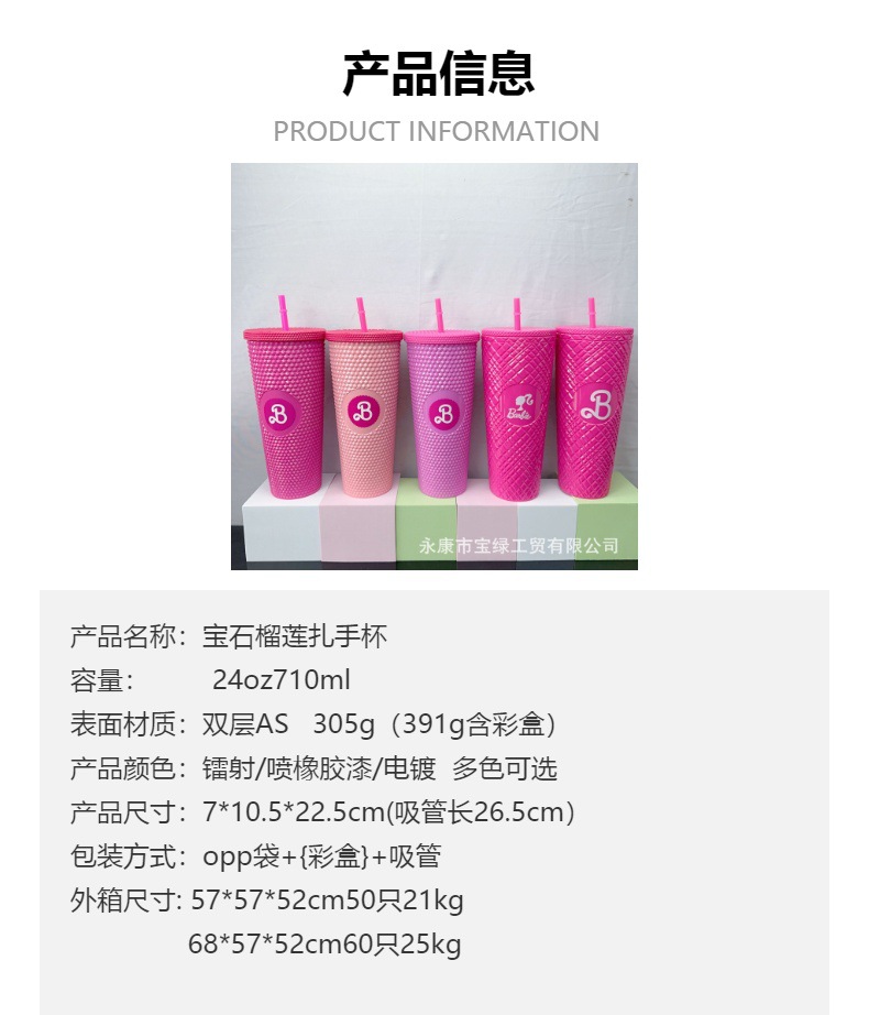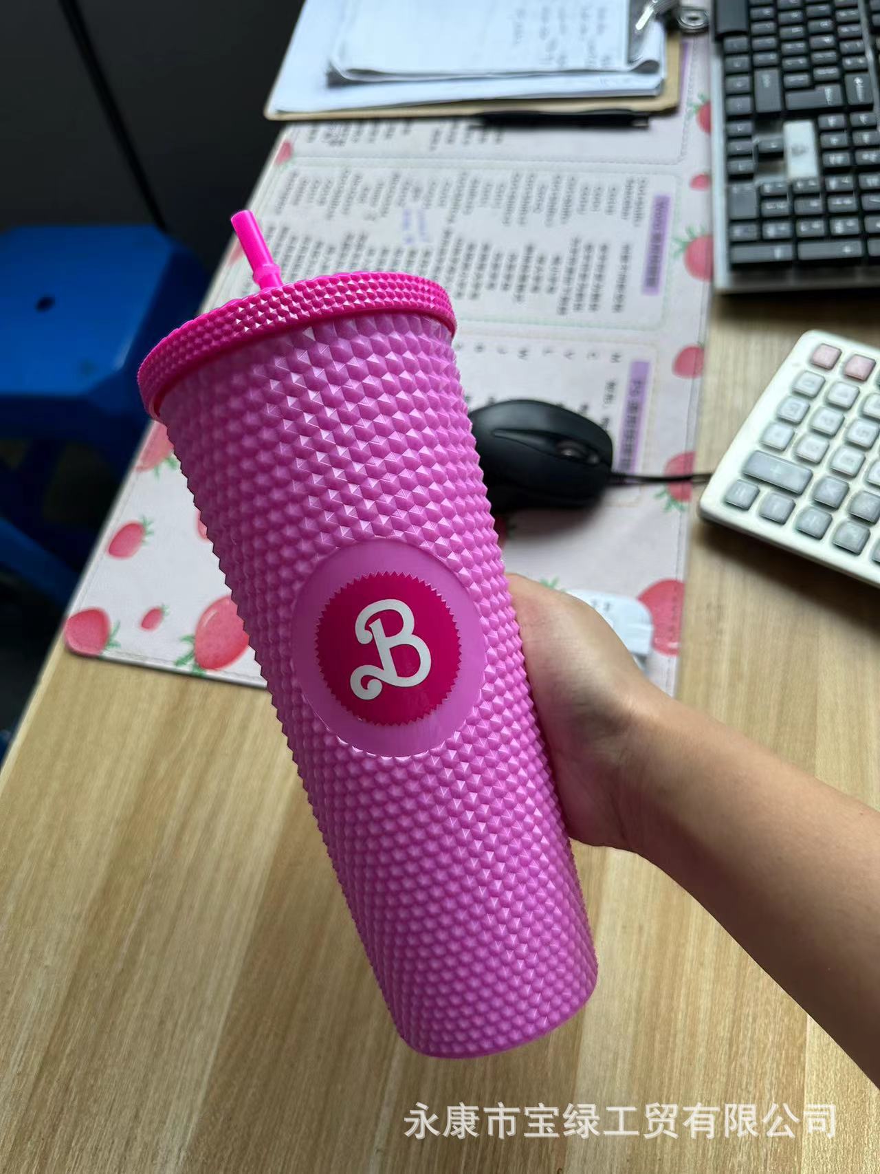 국경 컵 높은 가치의 바비 컵 물 컵 더블 레이어 플라스틱 컵 큰 용량 흡입 튜브 컵 뚜껑 두리안 컵