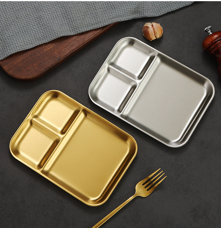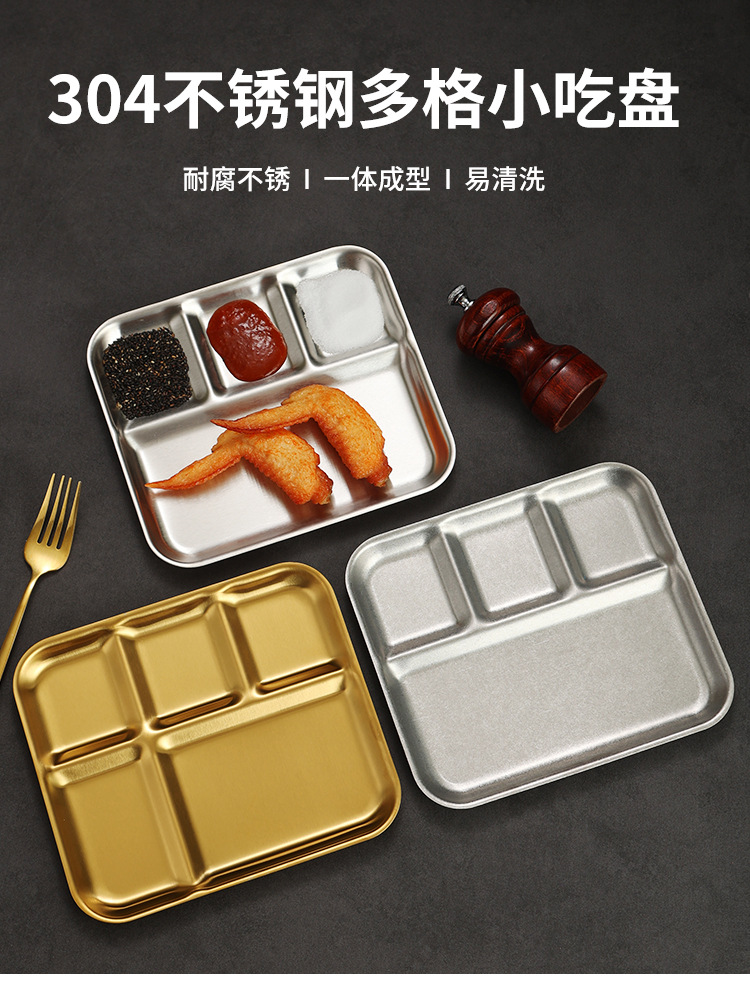 한국식 스텐 조미료 접시 바베큐 가게 골든 빈티지 스페셜 식기 딥 플레이트 3 칸 소스 접시 스테이크 접시스토어 가기