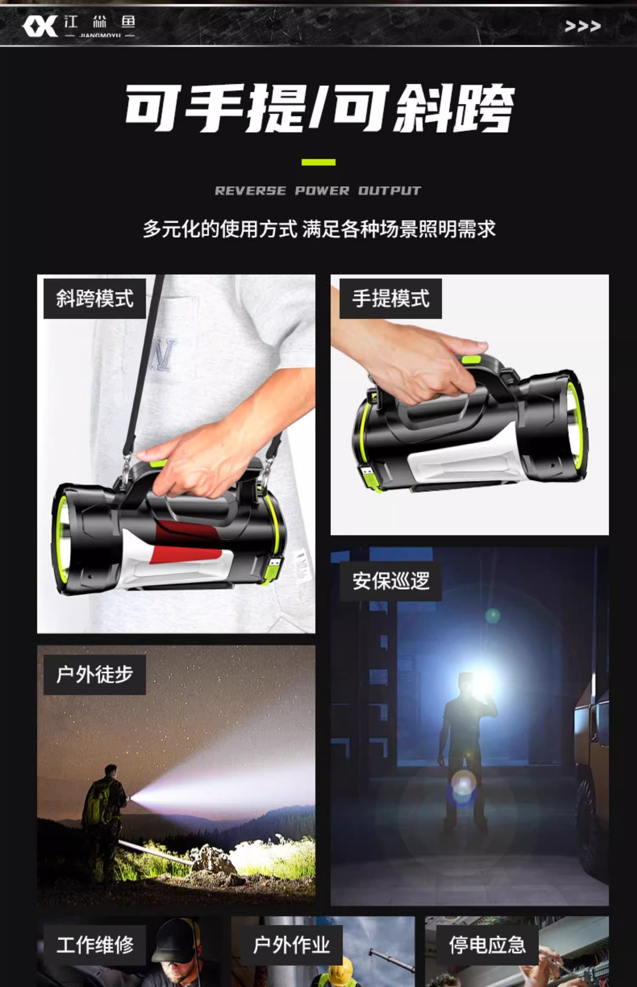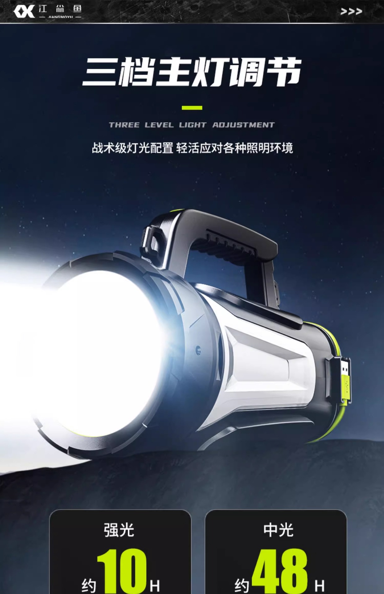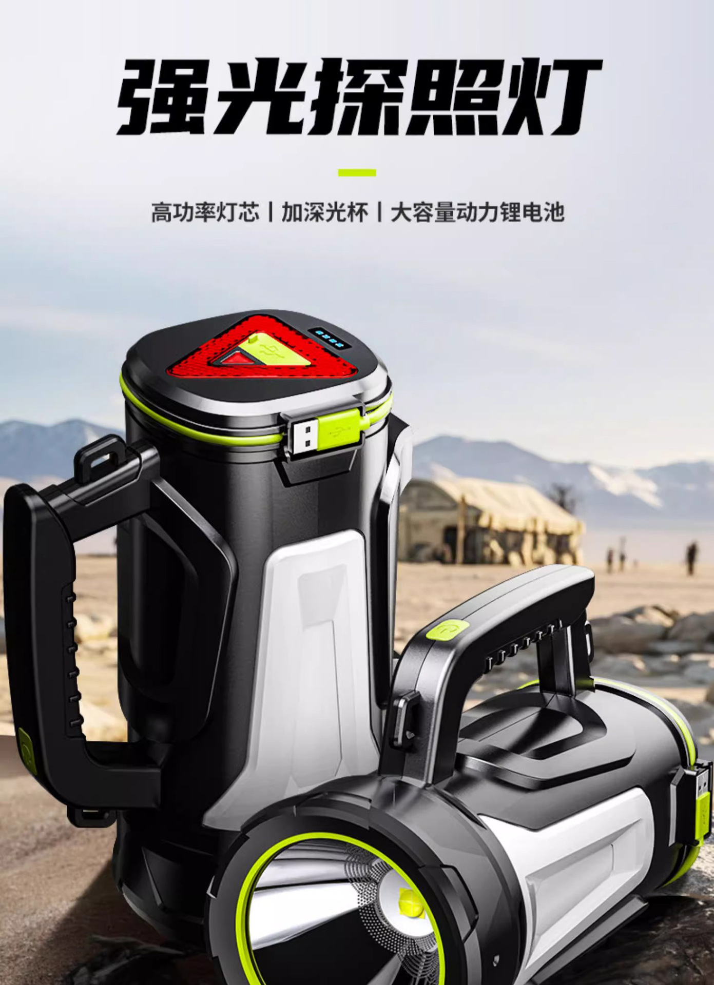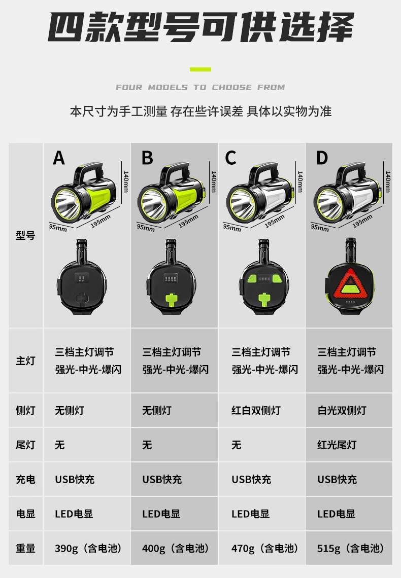 휴대용 야외 강력 탐조등 충전식 장시간 사용 순찰 비상 후미등 경고 휴대용 손전등 맞춤 제작