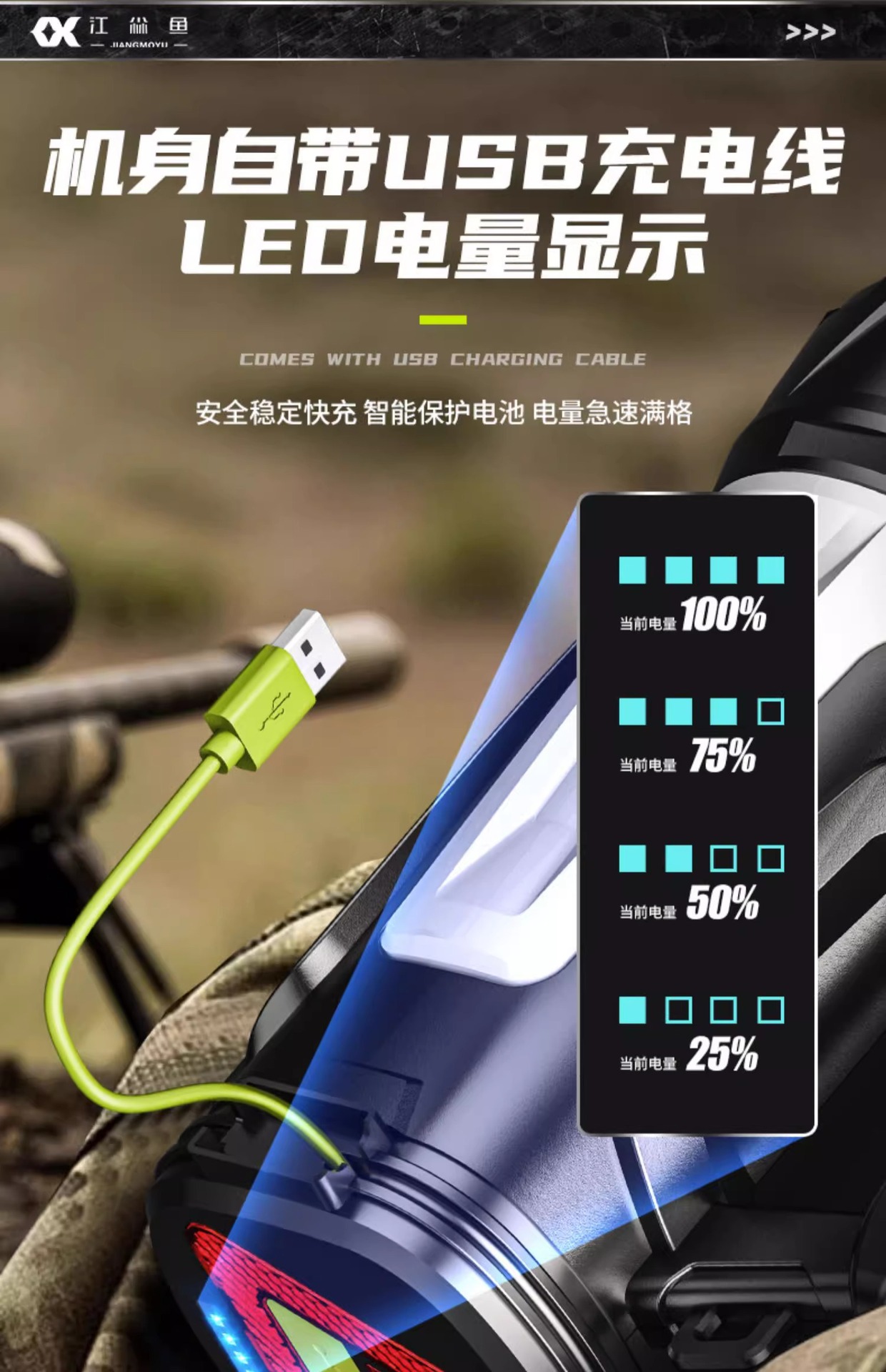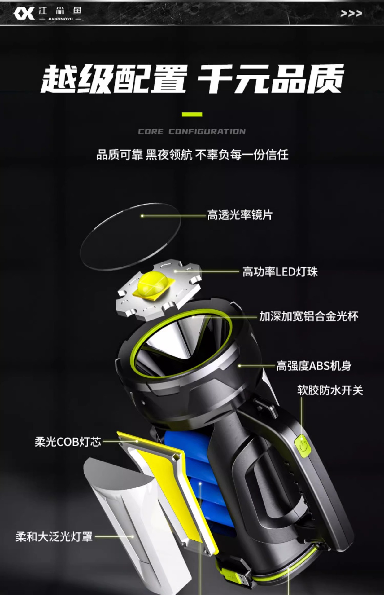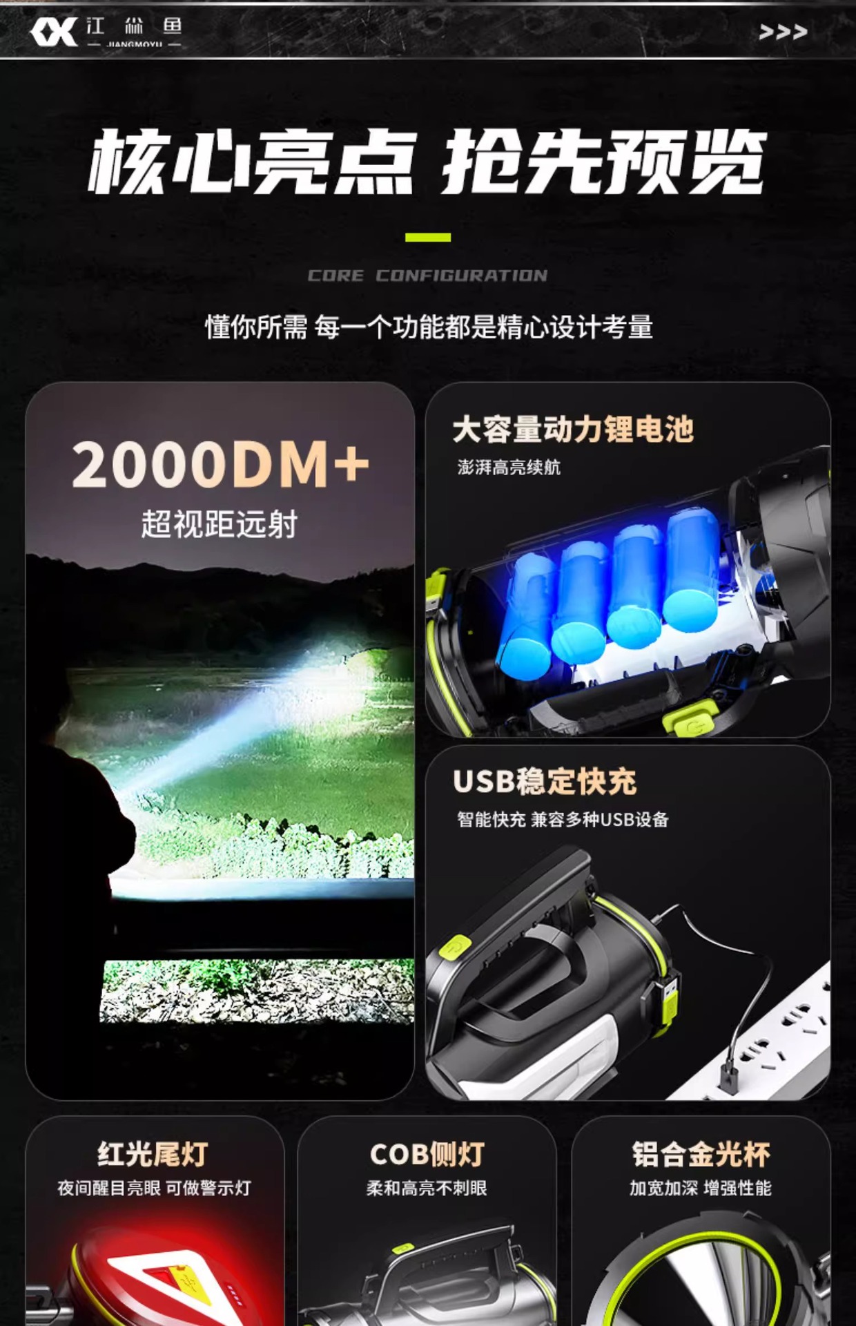 휴대용 야외 강력 탐조등 충전식 장시간 사용 순찰 비상 후미등 경고 휴대용 손전등 맞춤 제작