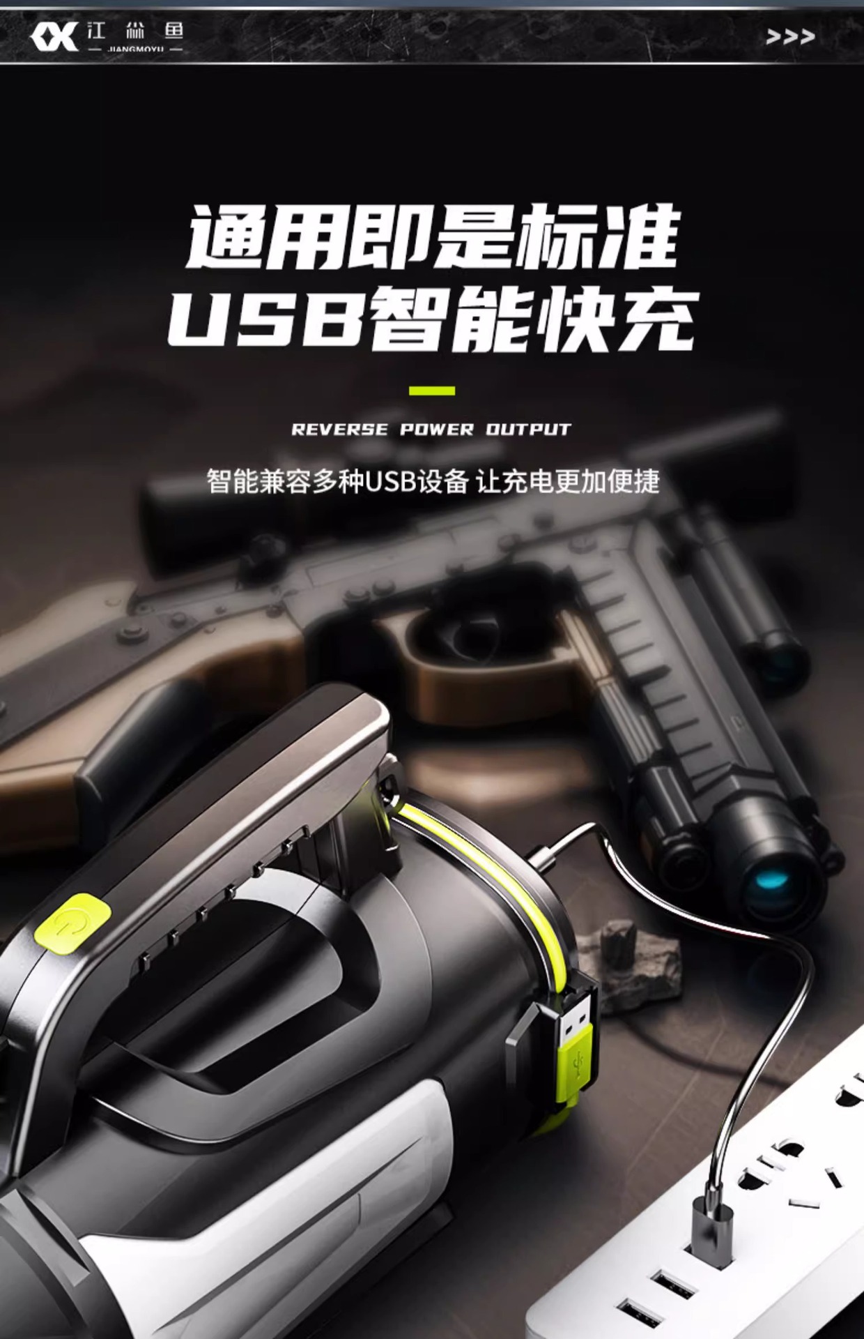 휴대용 야외 강력 탐조등 충전식 장시간 사용 순찰 비상 후미등 경고 휴대용 손전등 맞춤 제작스토어 가기