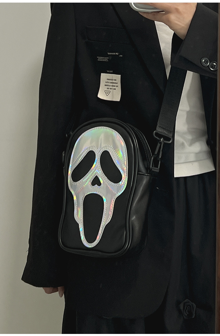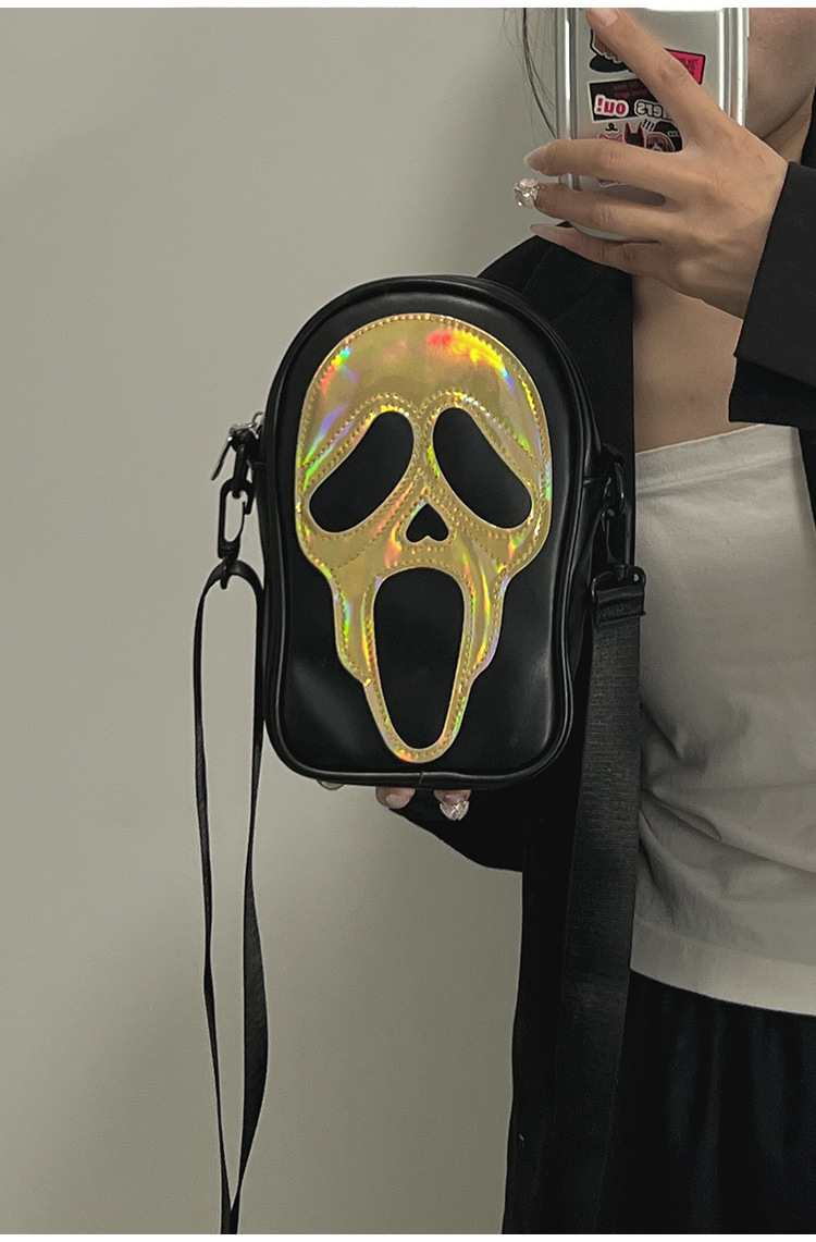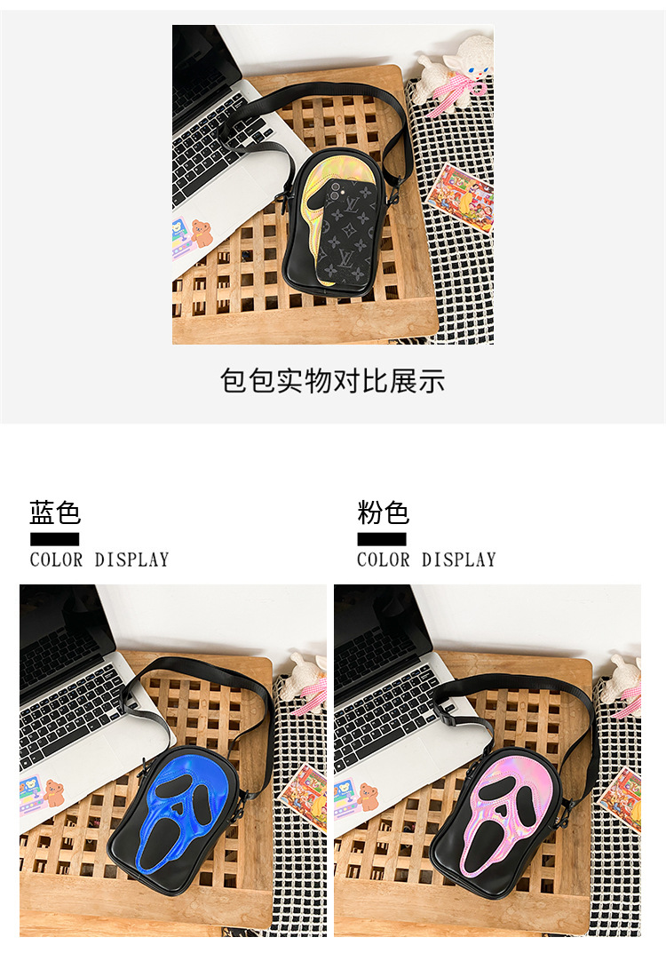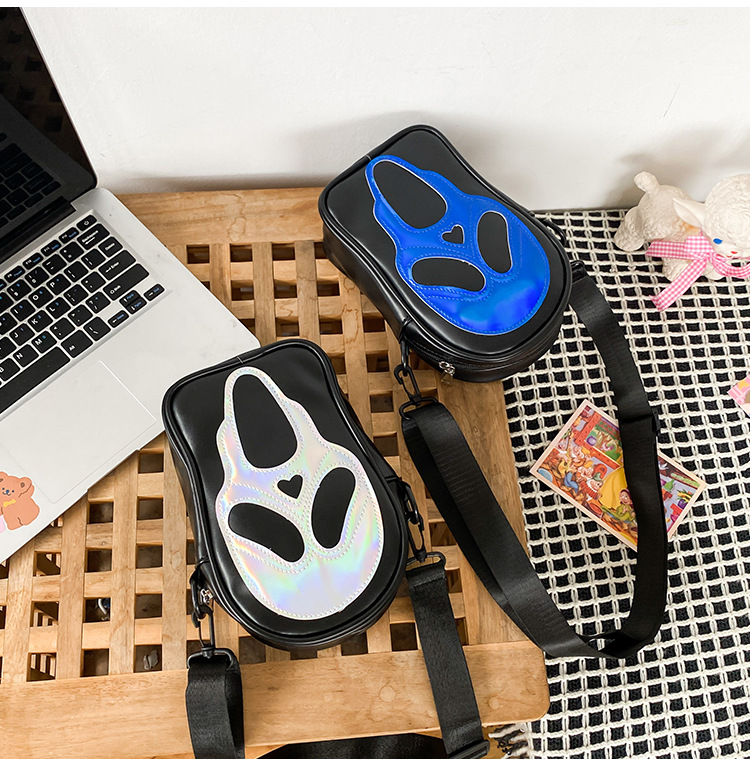 대외 무역 새로운 두개골 가방 레이저 Pu 어깨 가방 여성 성격 재미있는 할로윈 유령 얼굴 가방 남성 유령 작은 사각형 가방