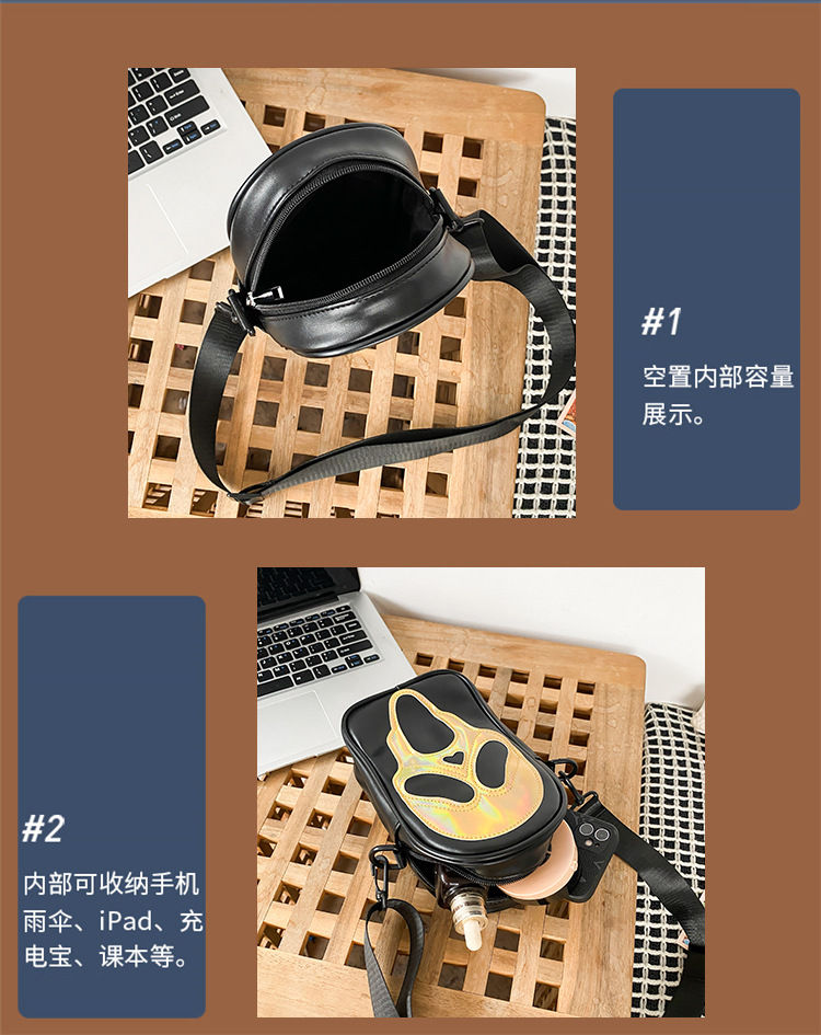 대외 무역 새로운 두개골 가방 레이저 Pu 어깨 가방 여성 성격 재미있는 할로윈 유령 얼굴 가방 남성 유령 작은 사각형 가방스토어 가기
