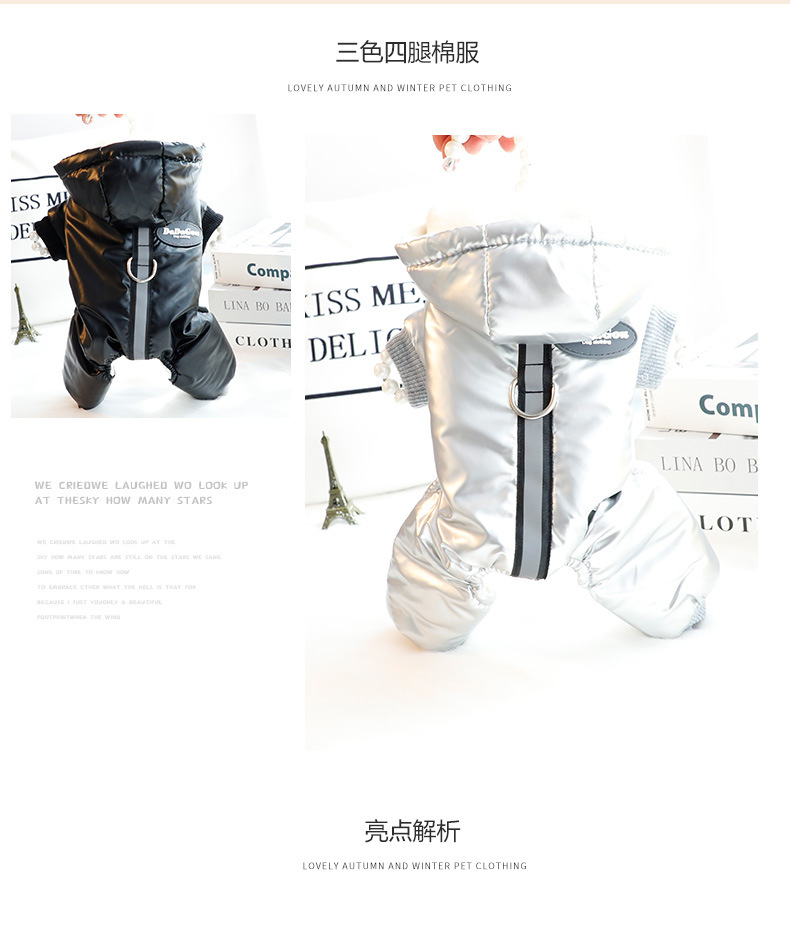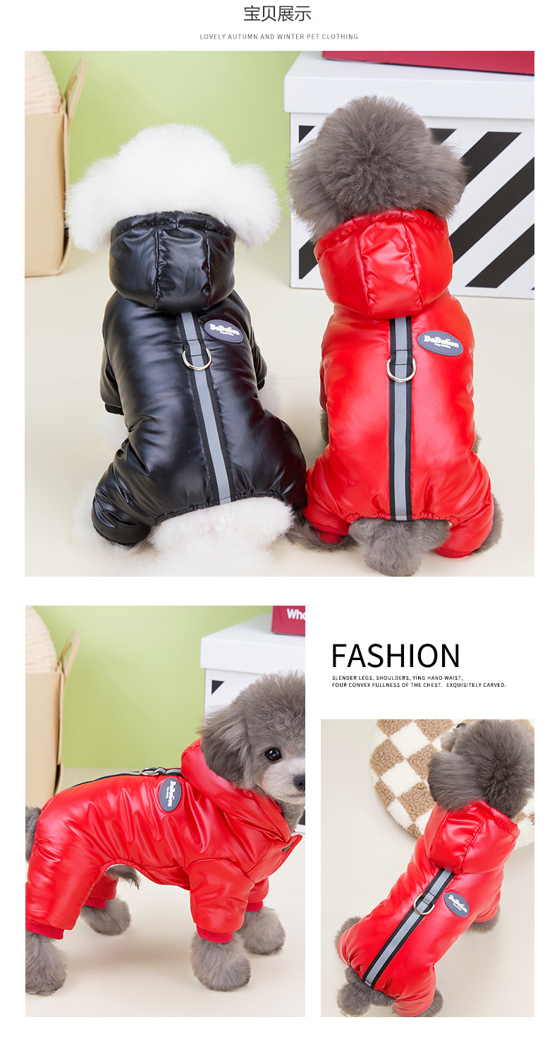 개 옷 가을과 겨울 두꺼운 네 발 코튼 패딩 재킷 발수성 유행 반사 스트립 작은 개 테디 애완 동물 5436스토어 가기