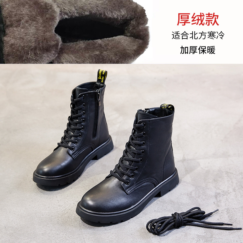 정품 가죽 마틴 부츠 여성 영국 스타일 부츠 2024 새로운 겨울 벨벳 두꺼운 다목적 플랫 바닥 대형 짧은 부츠 41스토어 가기