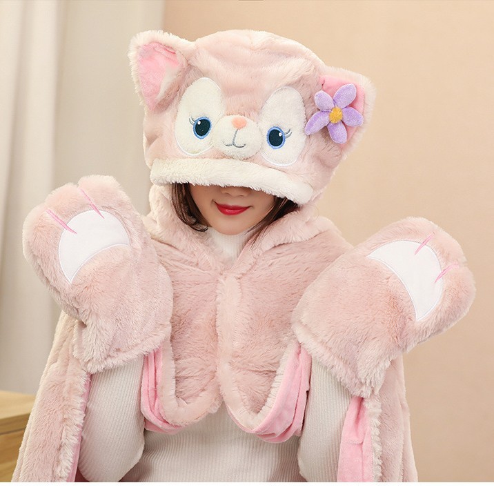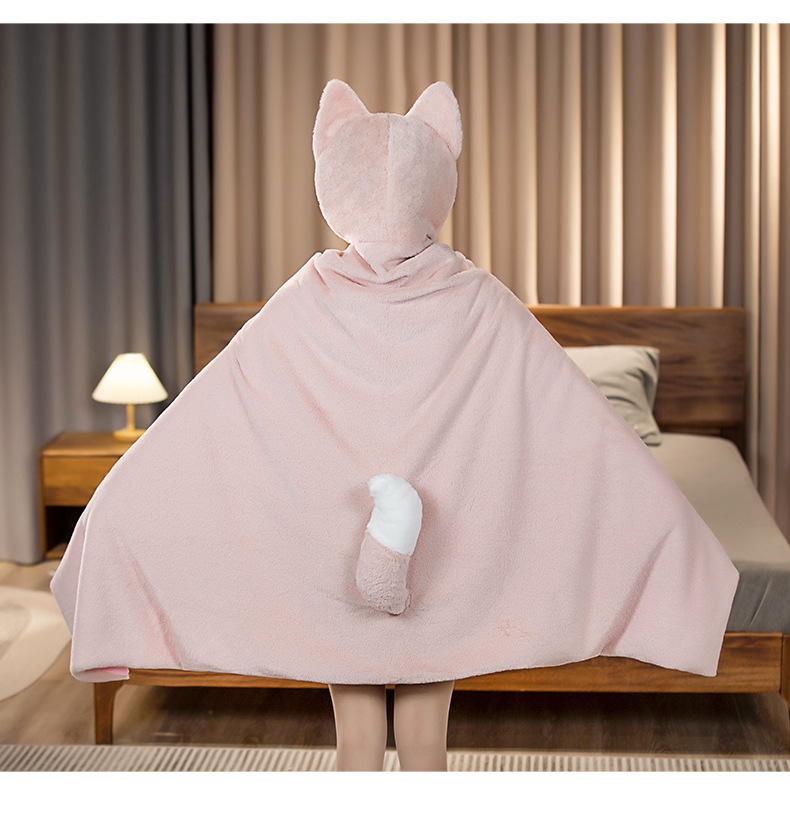 만화 더블 레이어 따뜻한 드레이핑 나벨 숄 후드 망토 담요 학생 낮잠 담요 사무실 에어컨 담요