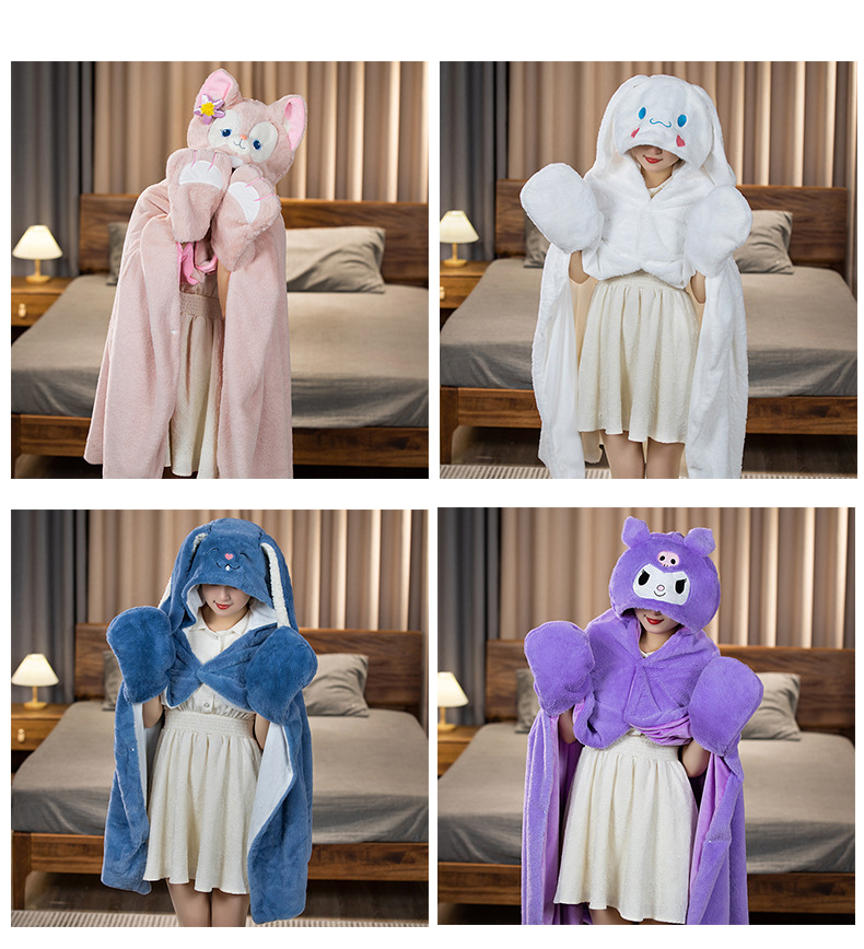 만화 더블 레이어 따뜻한 드레이핑 나벨 숄 후드 망토 담요 학생 낮잠 담요 사무실 에어컨 담요스토어 가기