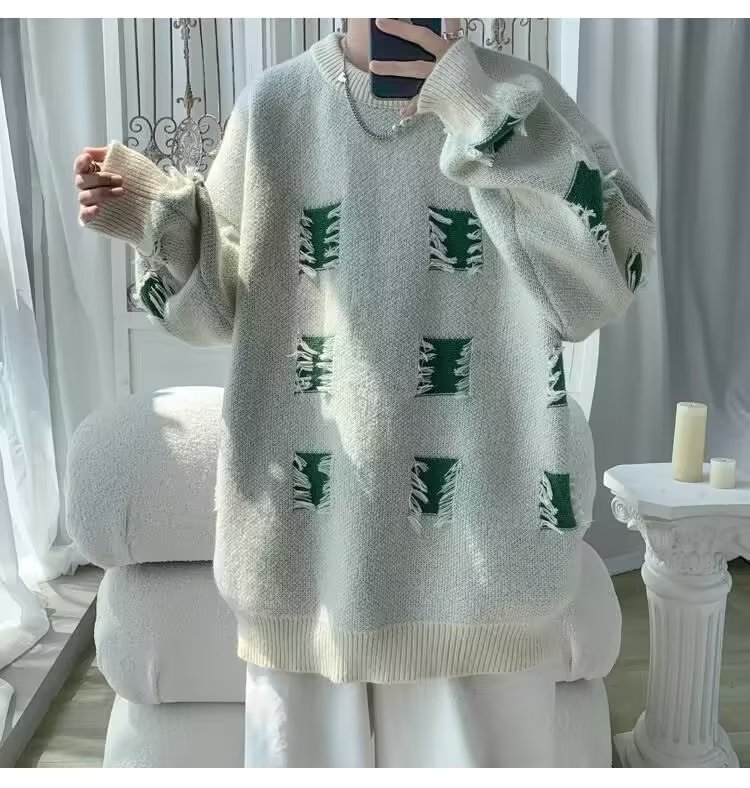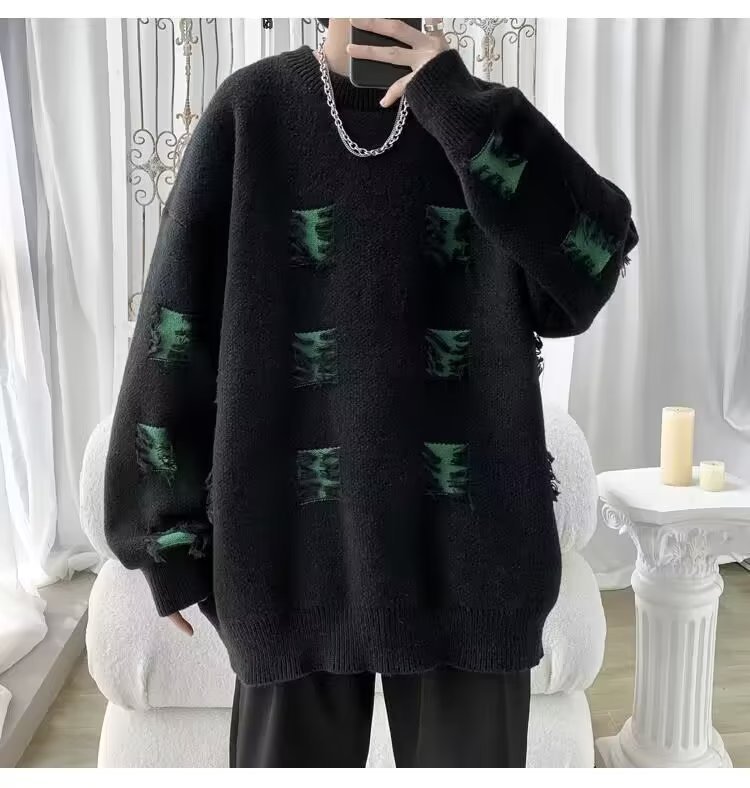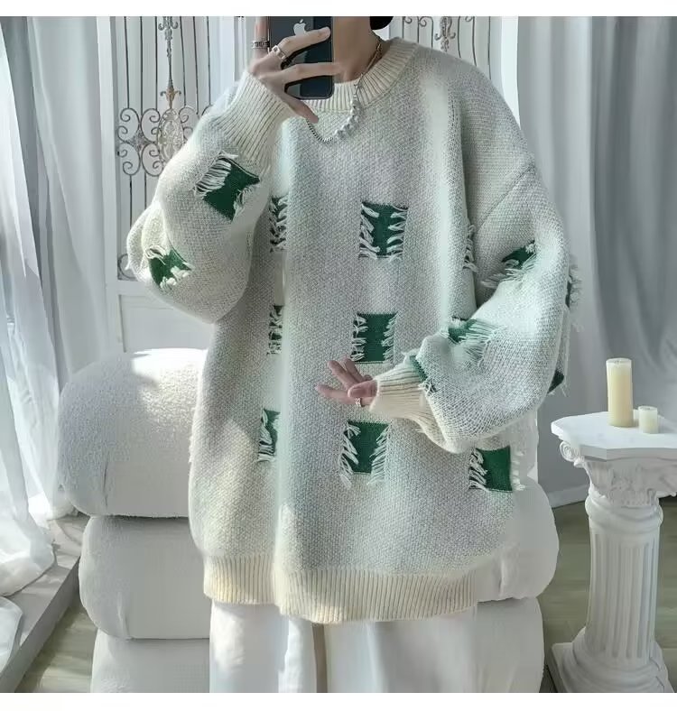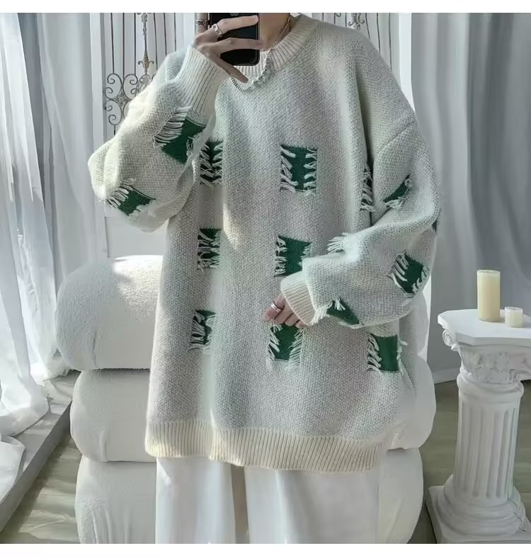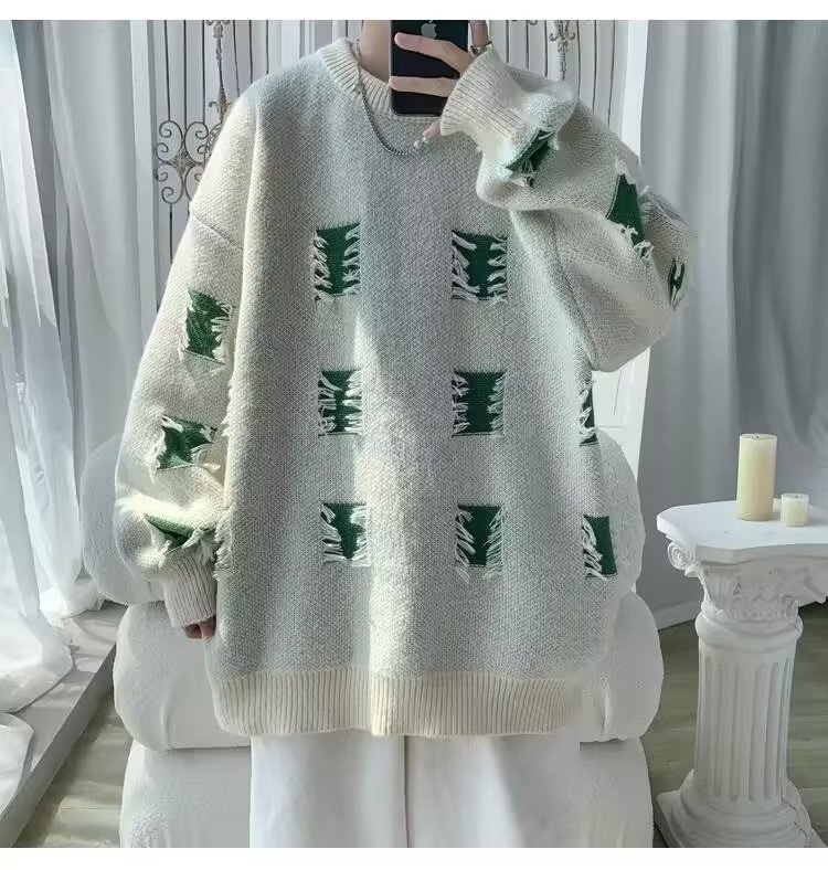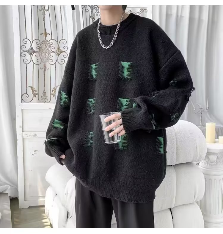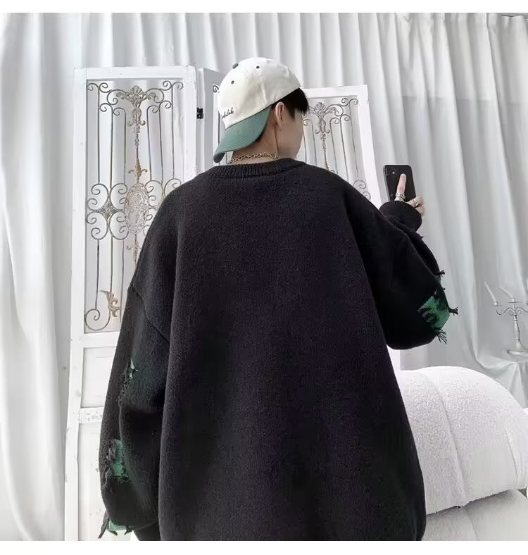 파괴적인 스웨터 남자의 겨울 새로운 미국 스타일 유행 브랜드 느슨한 라운드 넥 스웨터 탑 틈새 모든 매치 재킷 유행