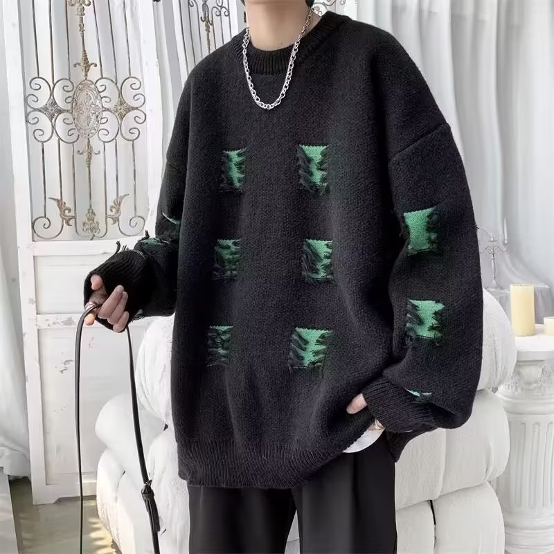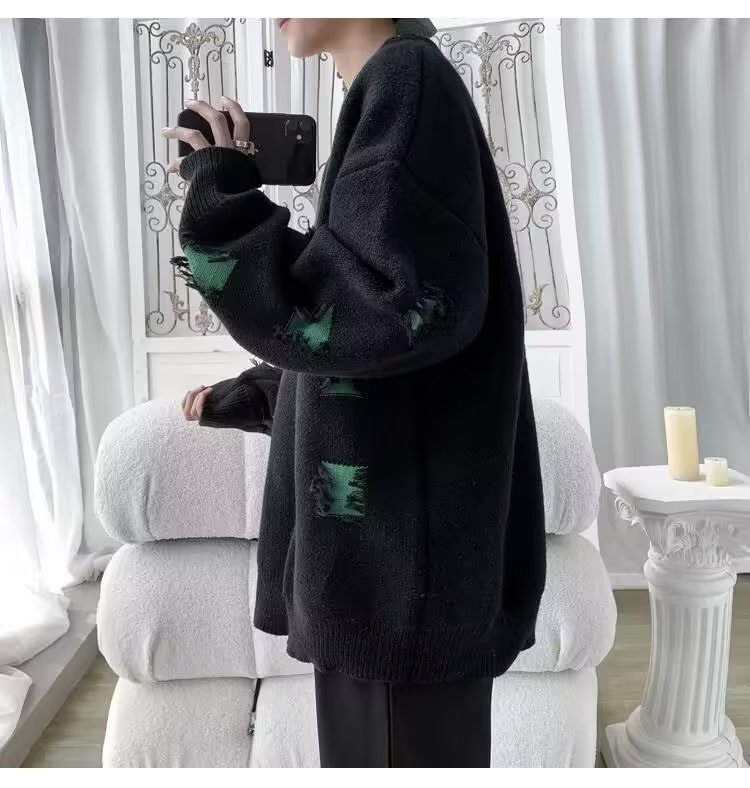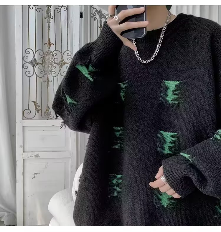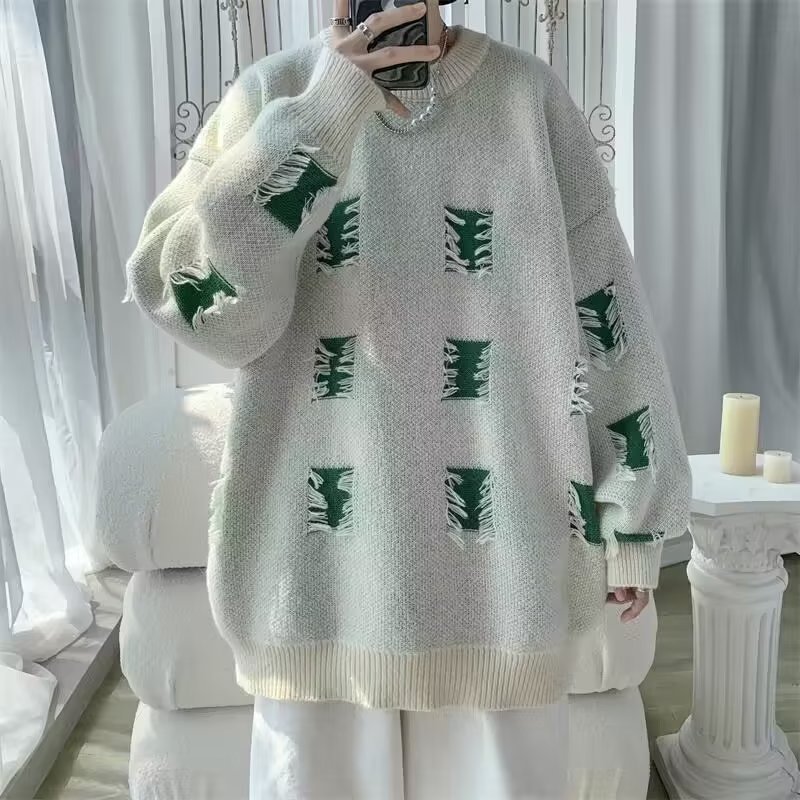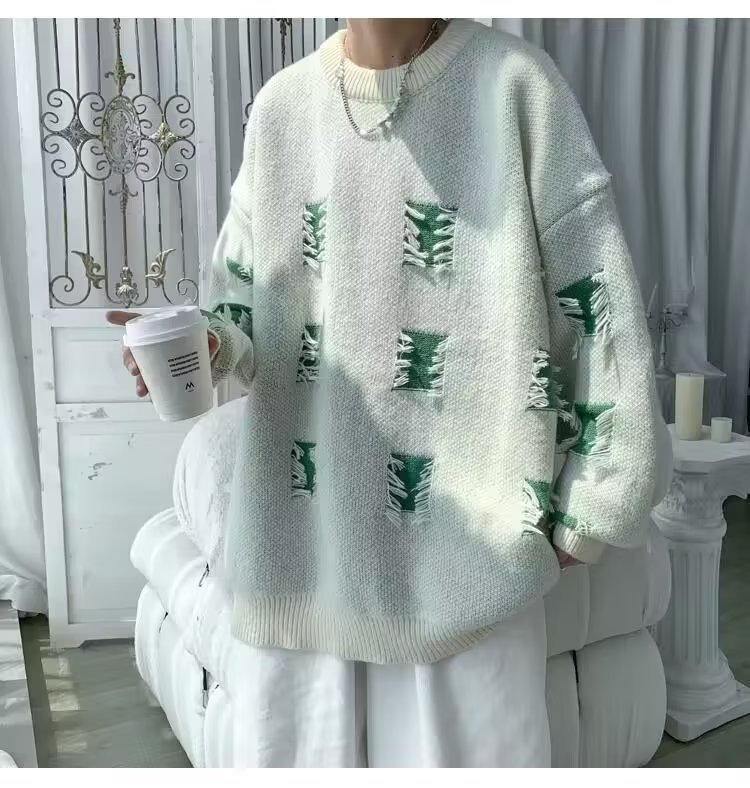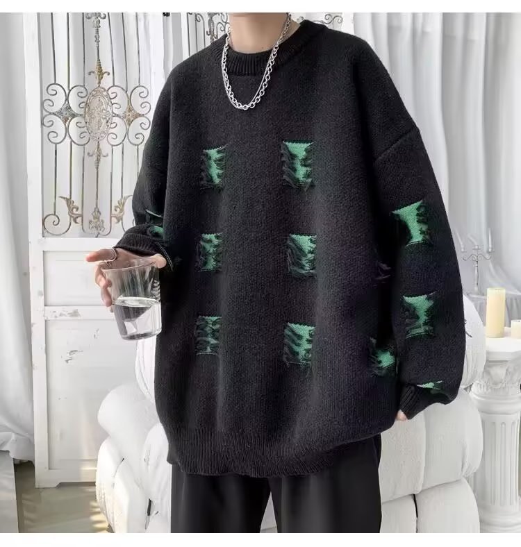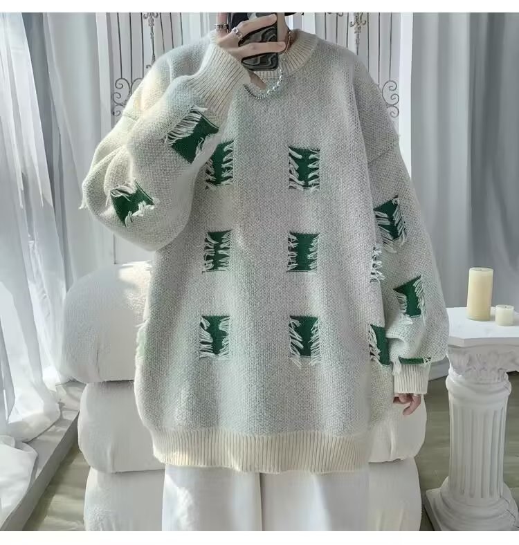 파괴적인 스웨터 남자의 겨울 새로운 미국 스타일 유행 브랜드 느슨한 라운드 넥 스웨터 탑 틈새 모든 매치 재킷 유행