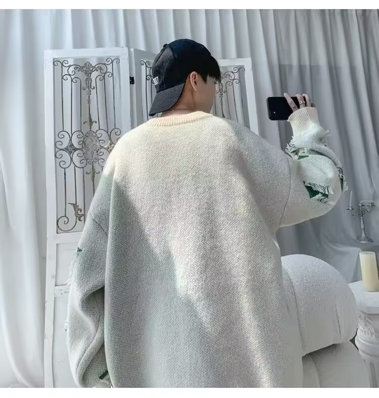 파괴적인 스웨터 남자의 겨울 새로운 미국 스타일 유행 브랜드 느슨한 라운드 넥 스웨터 탑 틈새 모든 매치 재킷 유행스토어 가기