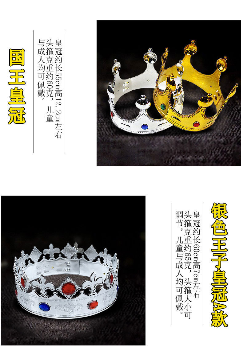 아마존 수출 원피스 업 성능 프린스 킹 크라운 모자 머리띠 황제 여왕 공주 헤어 액세서리