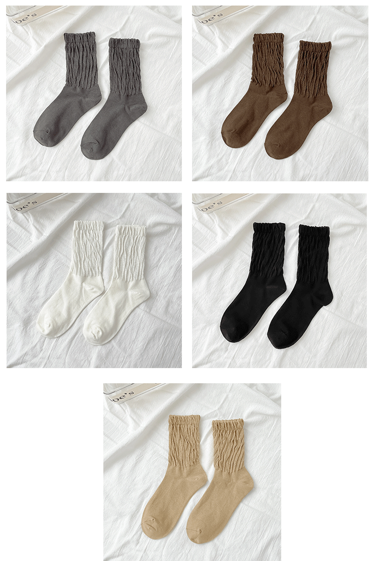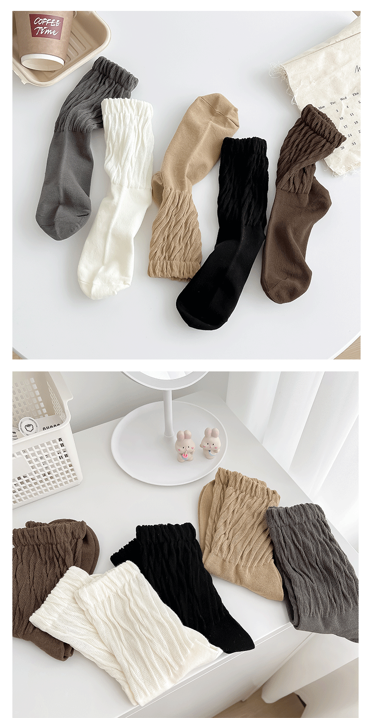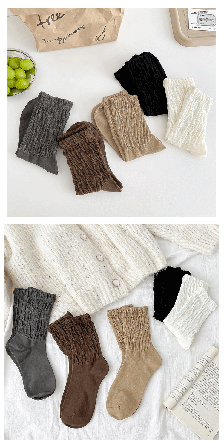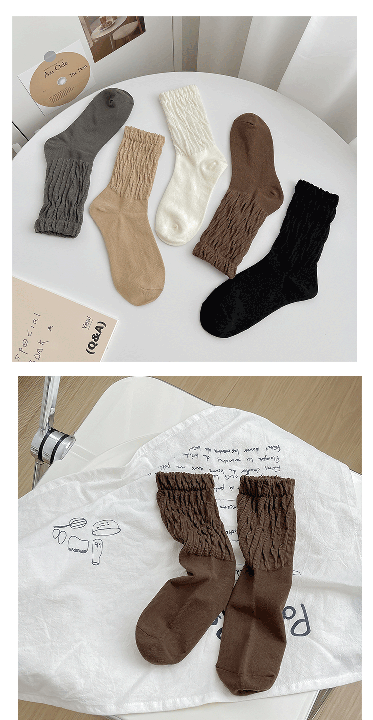 Ji Four 코끼리 양말 여성의 가을과 겨울 새로운 maillard 다크 브라운 중간 길이 양말 빗질 면 한국식 단색 주름 스택 양말스토어 가기