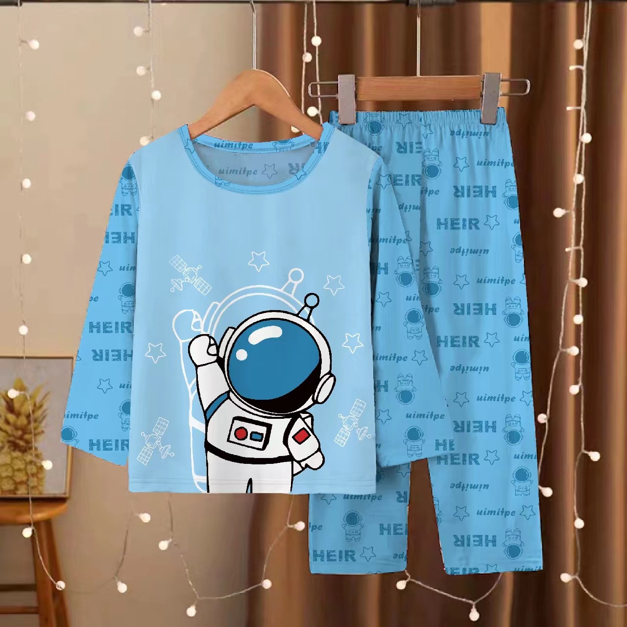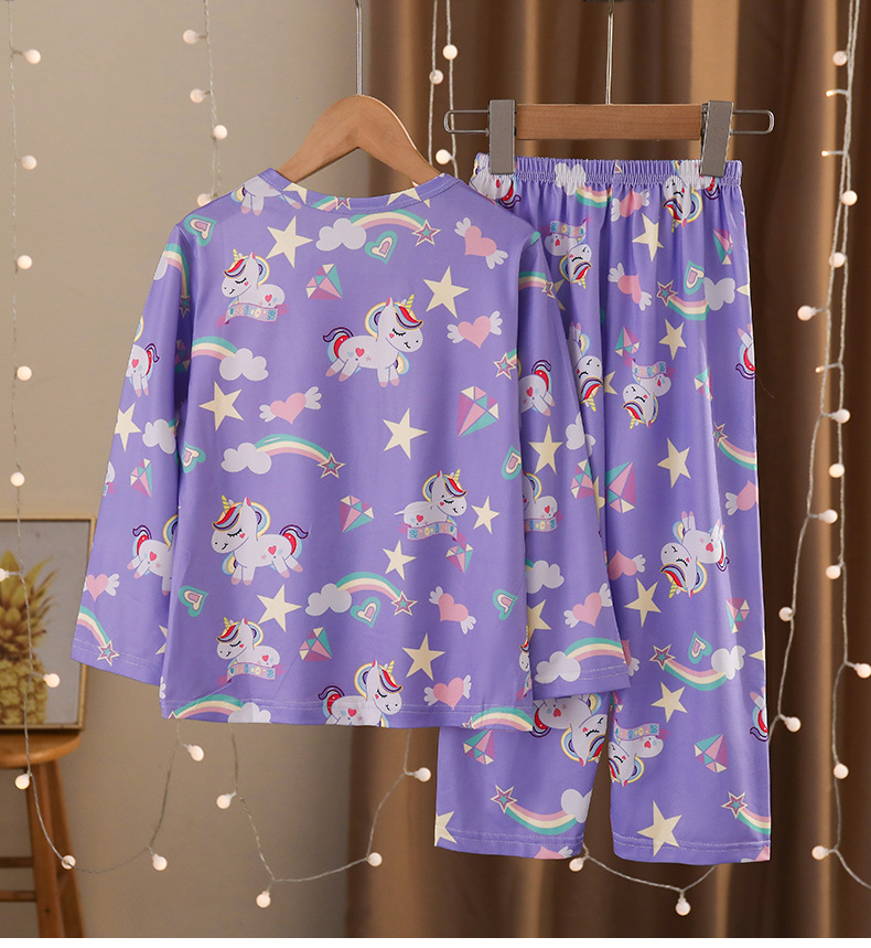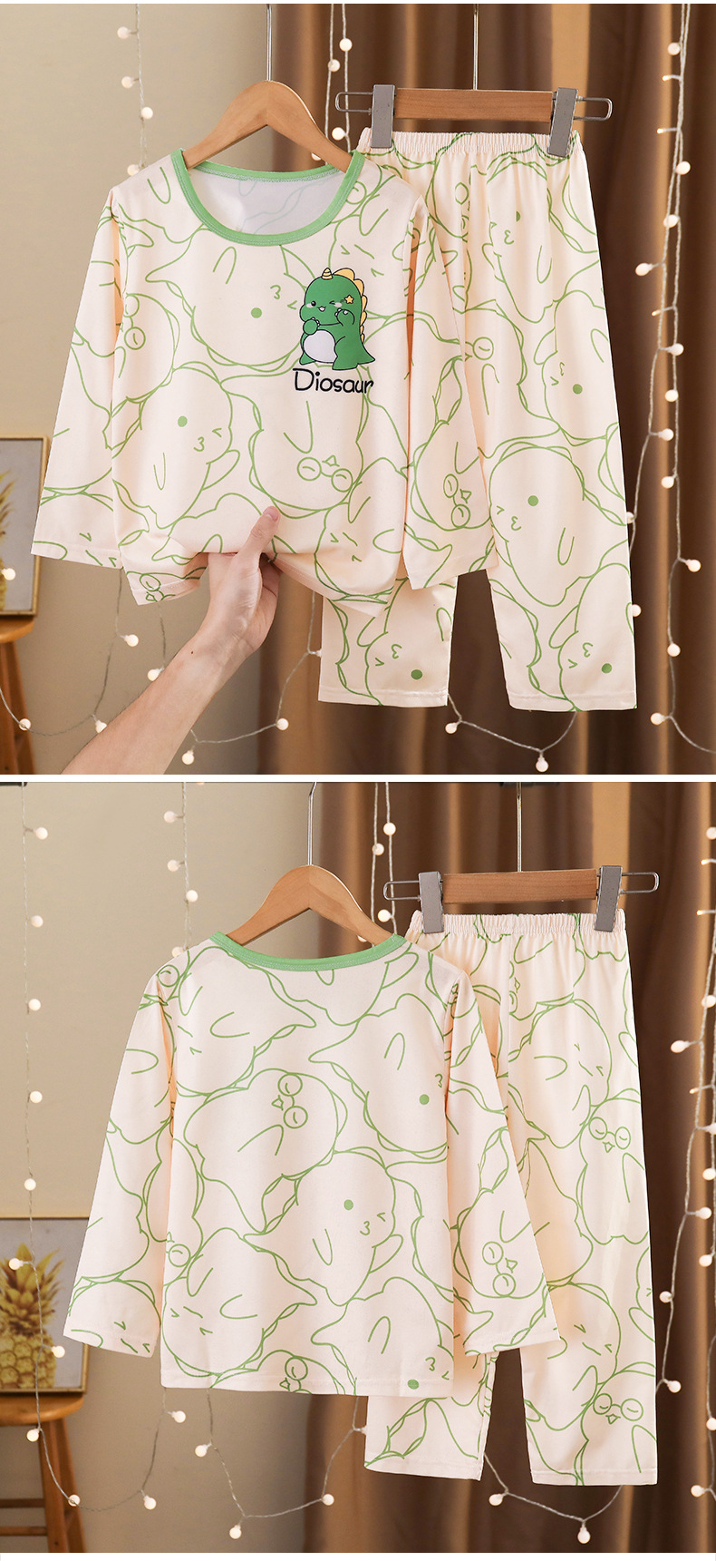 크로스 보더 어린이 잠옷 가을 여름 세트 여자의 새로운 소년 긴팔 가정복 얇은 어린이 아기 에어컨 옷스토어 가기