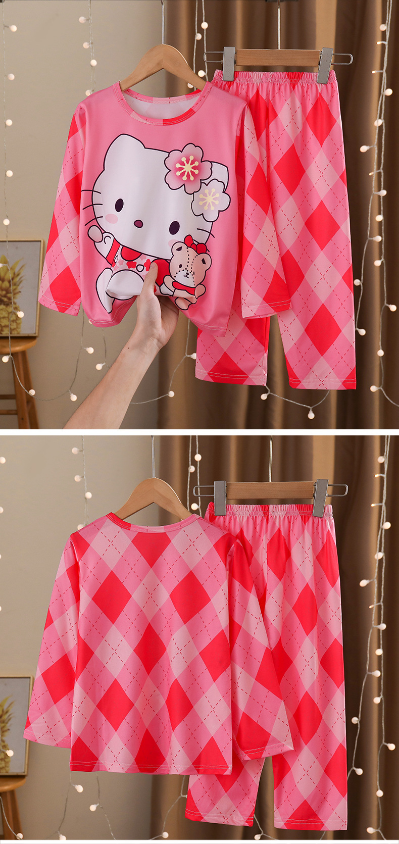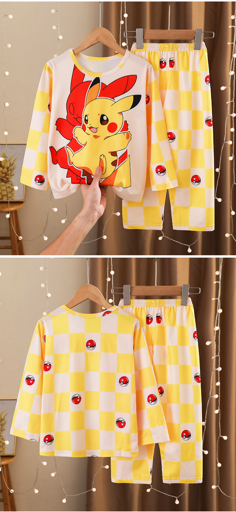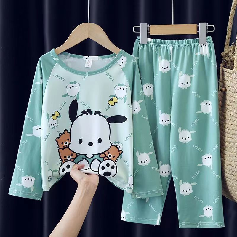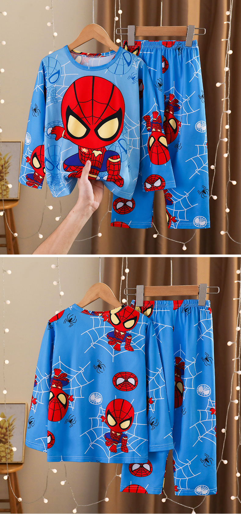 크로스 보더 어린이 잠옷 가을 여름 세트 여자의 새로운 소년 긴팔 가정복 얇은 어린이 아기 에어컨 옷스토어 가기