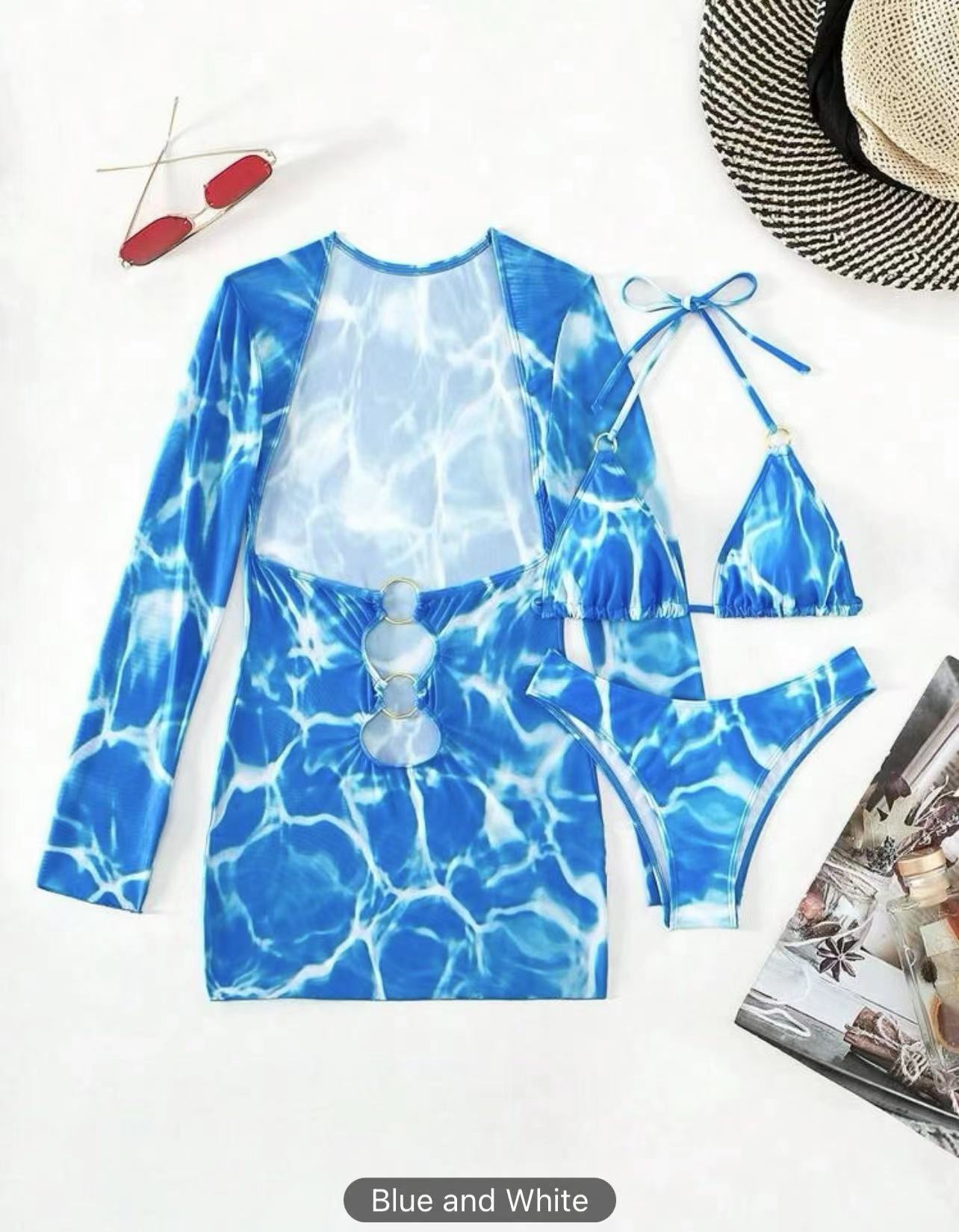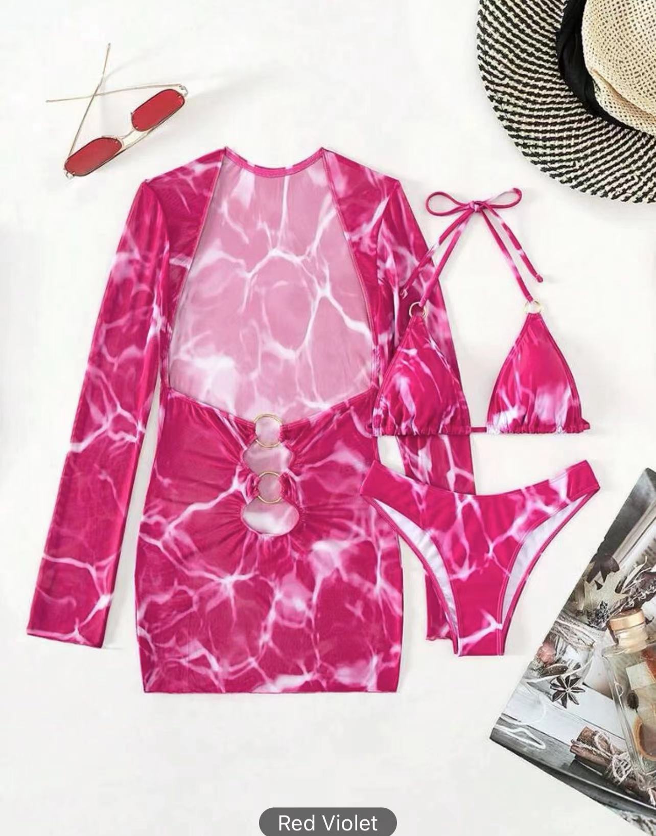 쓰리피스 메쉬 비키니 수영복 여성용 멀티 컬러 섹시 메쉬 아마존 비키니 AliExpress 멀티 컬러 유럽과 미국스토어 가기