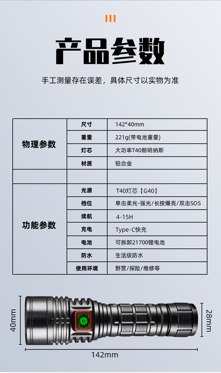 • G40 손전등 수입 램프 구슬 [1 21700 리튬 배터리] 항공기 상자
