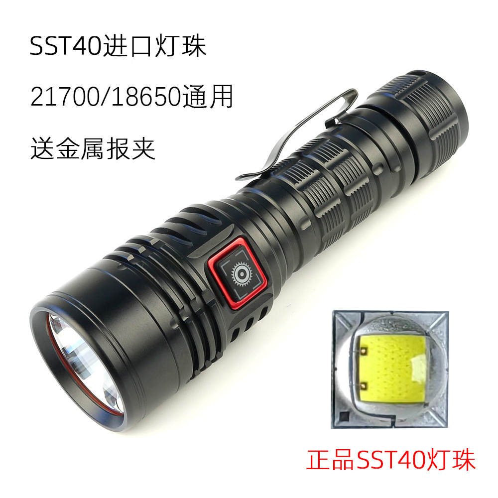 정품 SST40 손전등 슈퍼 밝은 장거리 21700 충전식 G40 고정 초점 야외 휴대용 통합 창고스토어 가기