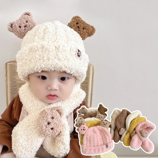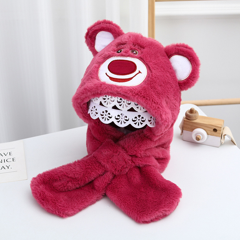 겨울 어린이 딸기 곰 모자 스카프 원피스 귀여운 따뜻한 두꺼운 봉제 아기 소년과 소녀 목 귀 보호 모자