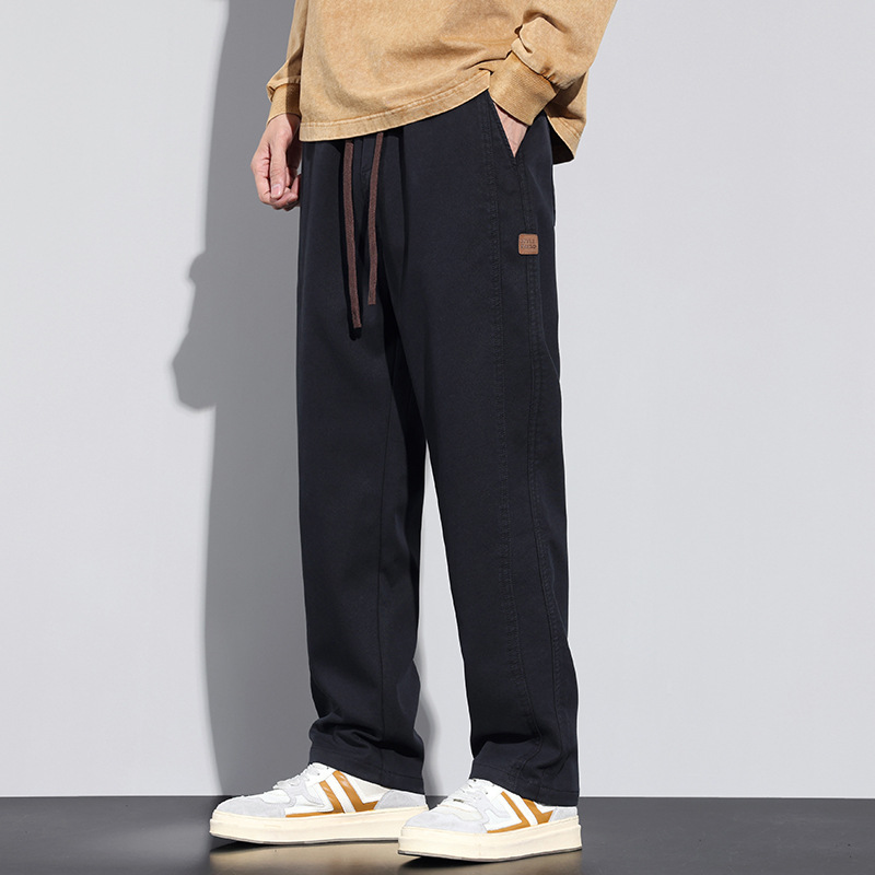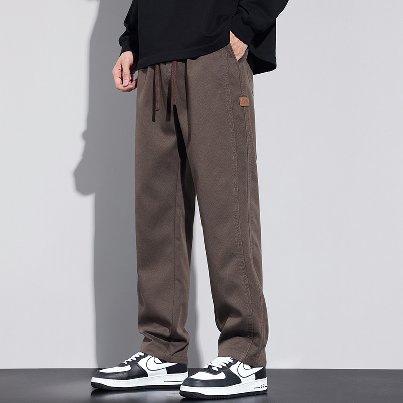 가을과 겨울 기모 두꺼운 캐주얼 긴 바지 남성용 2023 새로운 느슨한 스트레이트 와이드 레그 따뜻한 바지
