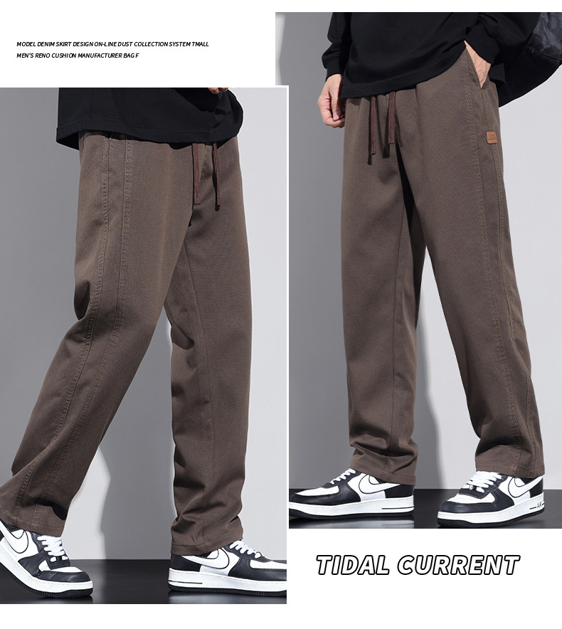 가을과 겨울 기모 두꺼운 캐주얼 긴 바지 남성용 2023 새로운 느슨한 스트레이트 와이드 레그 따뜻한 바지스토어 가기