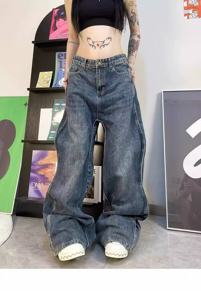 틈새 트렌디 브랜드 웨이브 모양의 청바지 스트리트 디자인 센스 하이 스트리트 마이크로 SAG 센스 트렌디 핸섬 팬츠스토어 가기