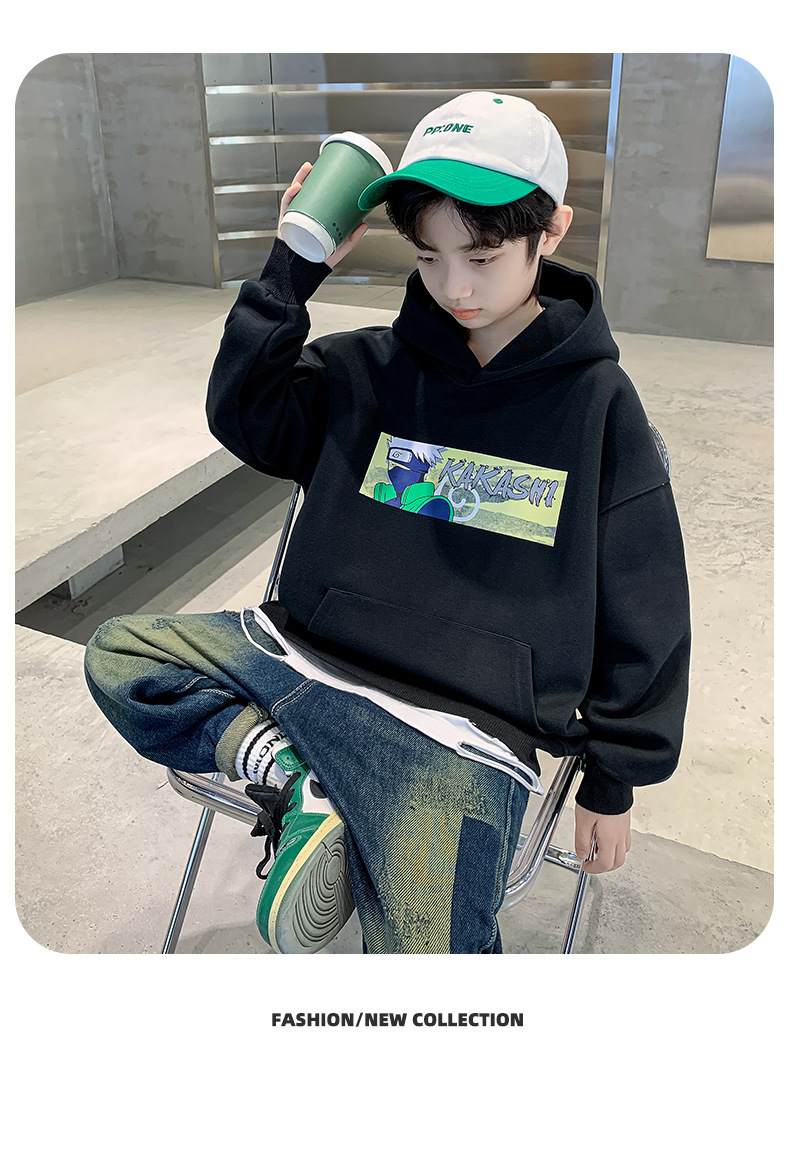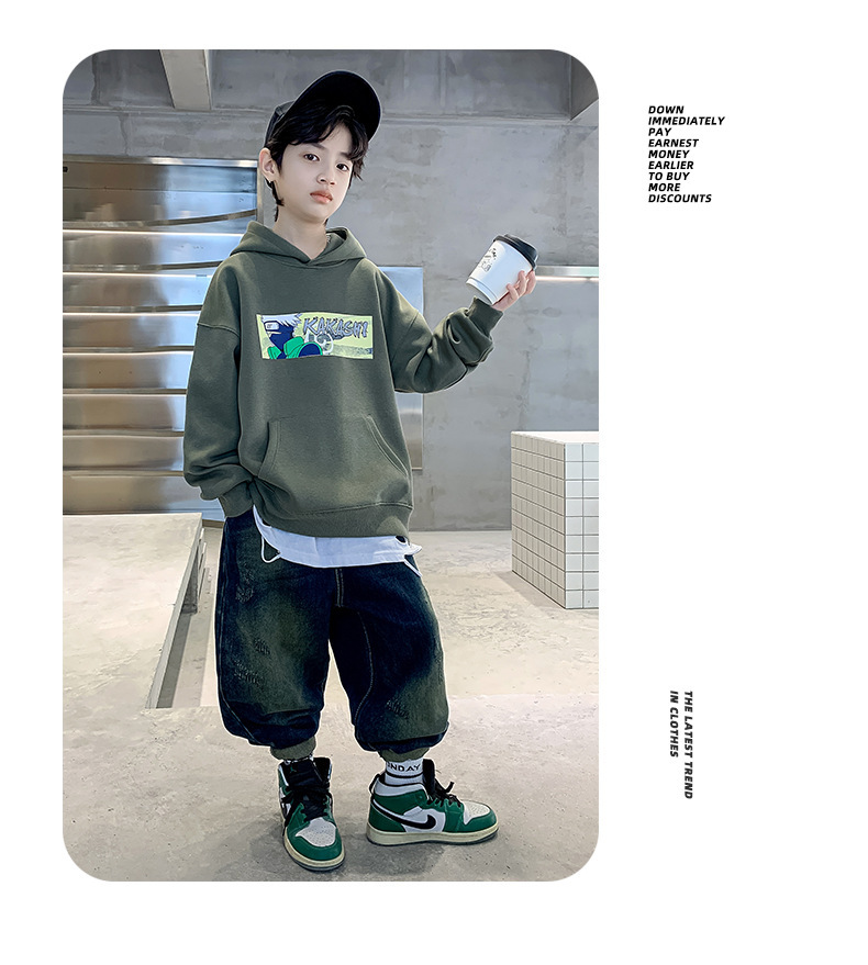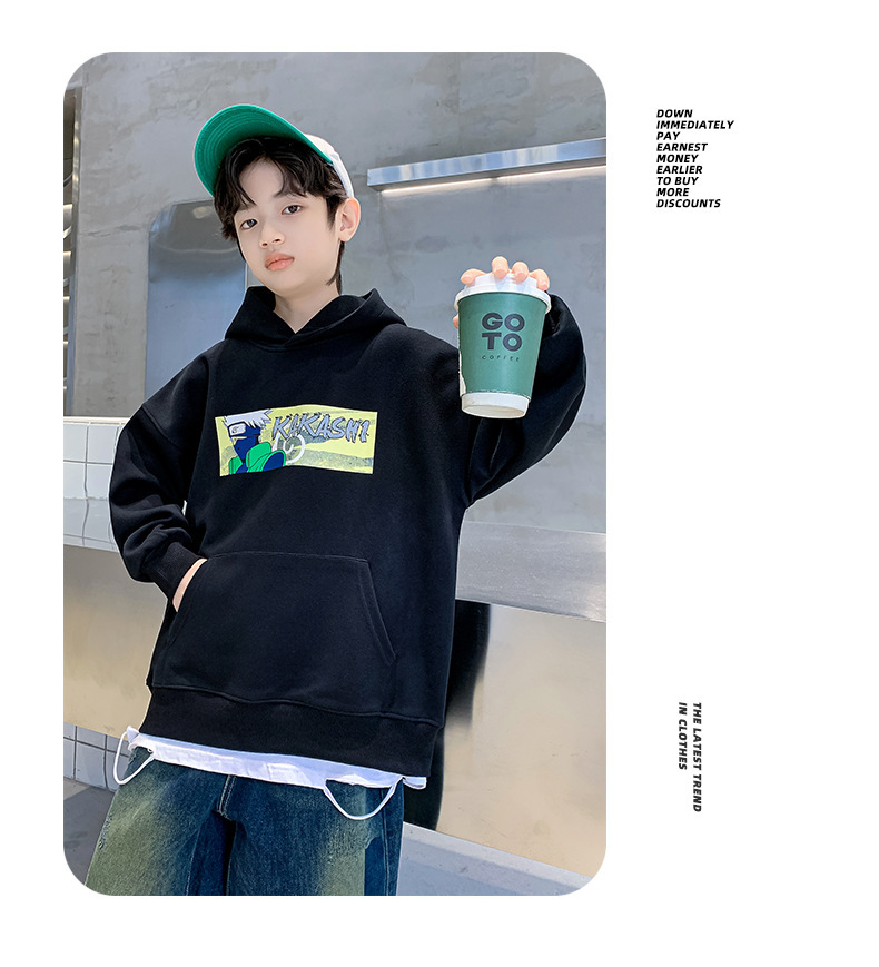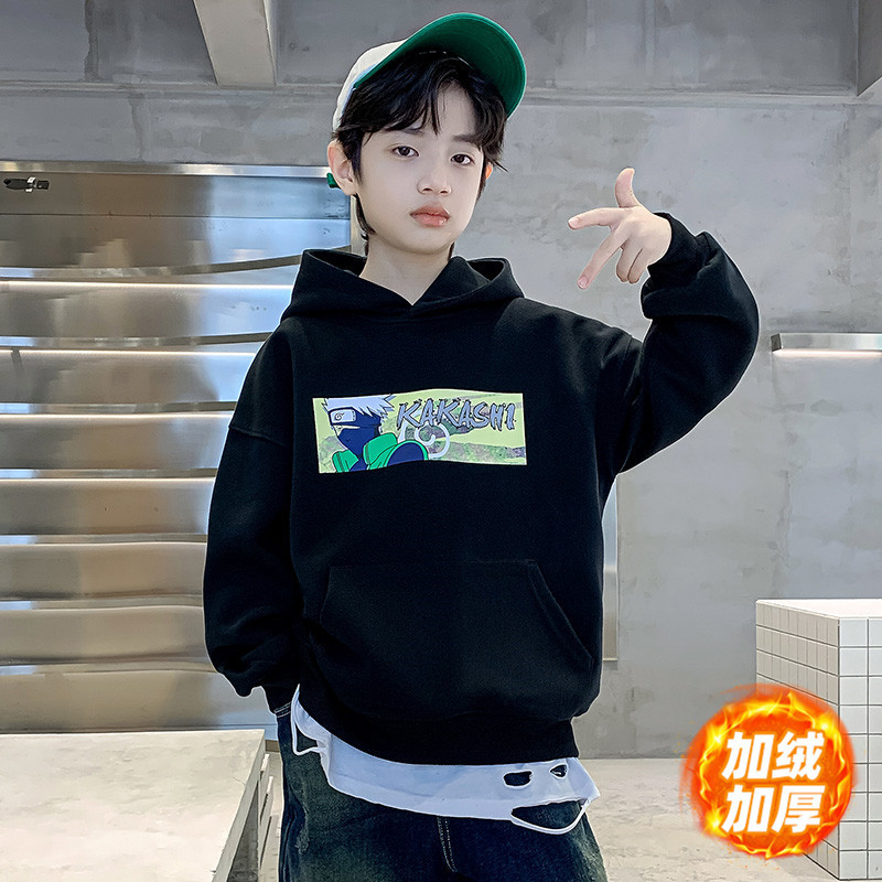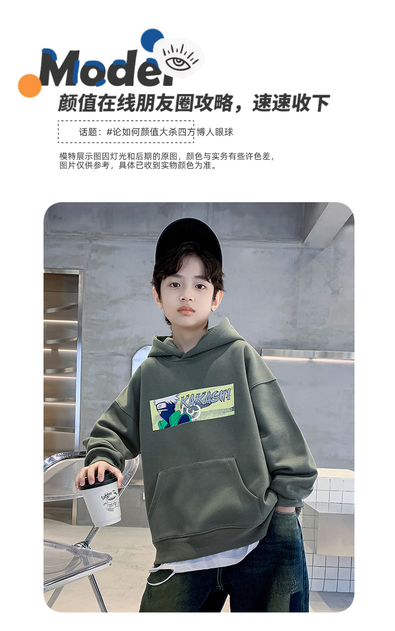 소년 기모 조끼 가을과 겨울 한국 아동복 2023 새로운 큰 소년 유행 인쇄 풀오버 탑스토어 가기
