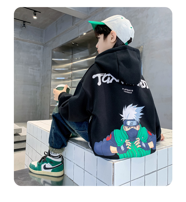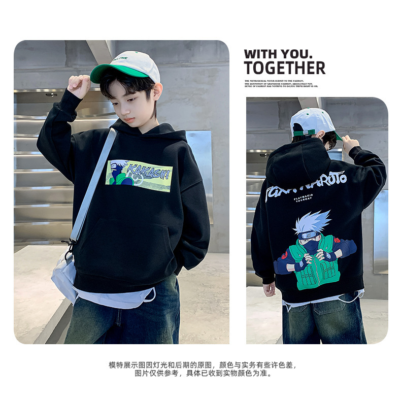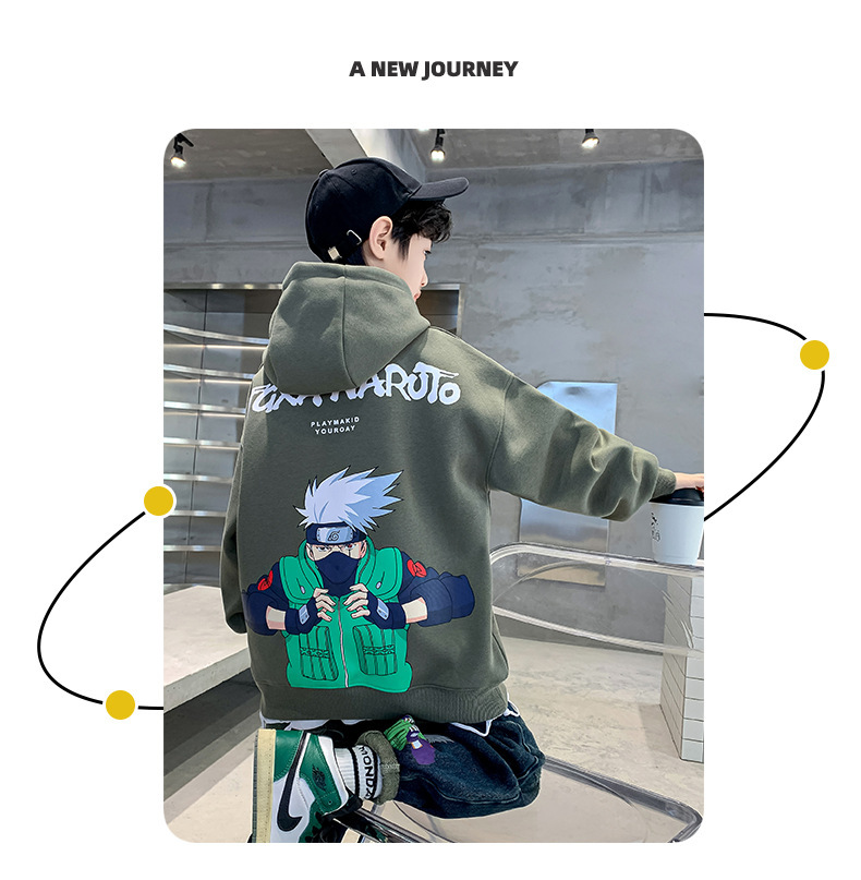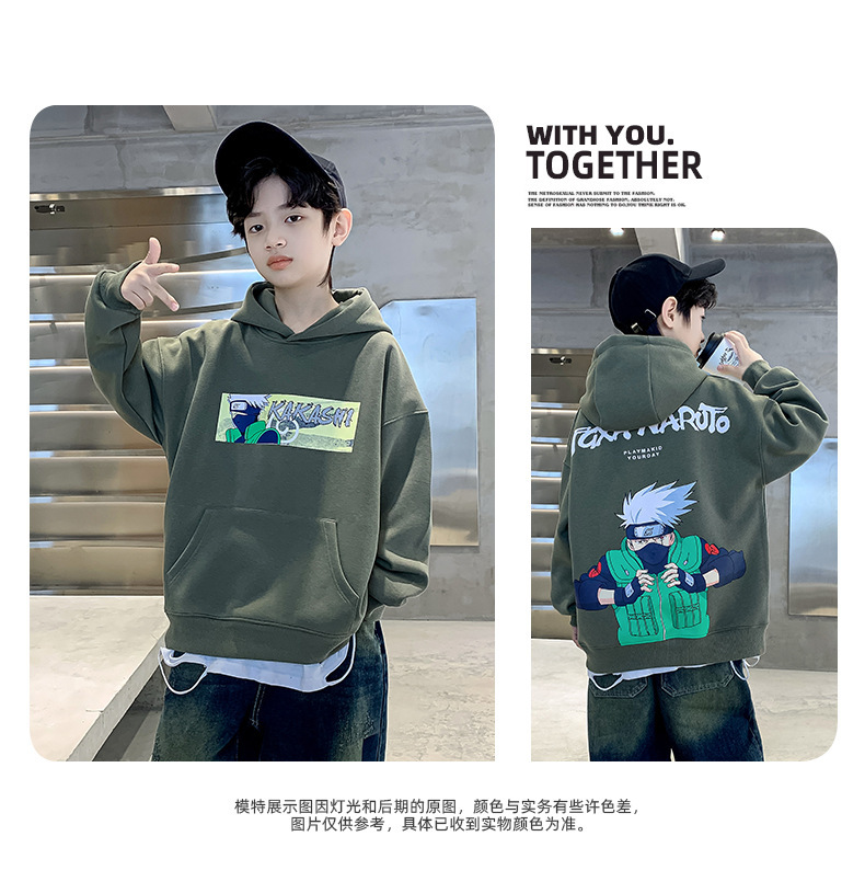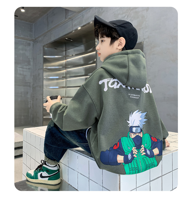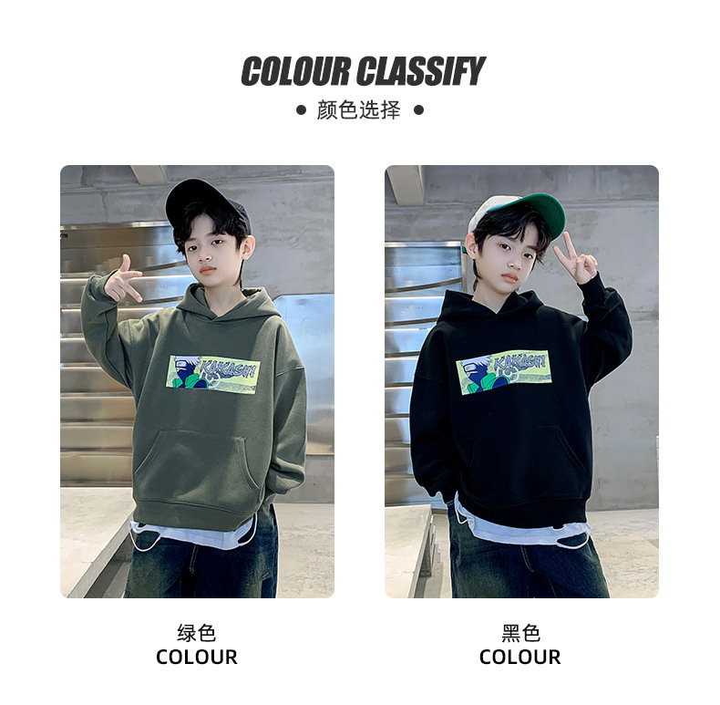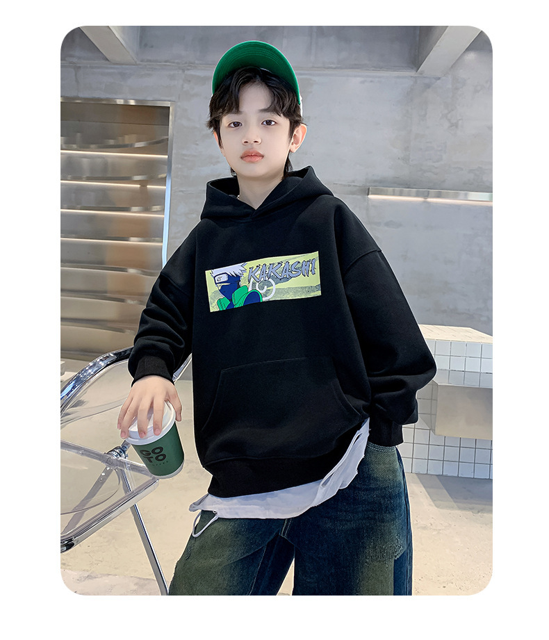 소년 기모 조끼 가을과 겨울 한국 아동복 2023 새로운 큰 소년 유행 인쇄 풀오버 탑스토어 가기