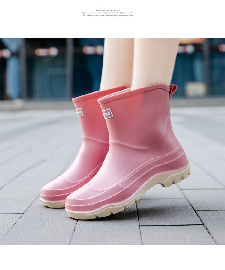 사계절 여성용 장화 일본식 패션 편안한 장화 여성용 원피스 방수 미끄럼 방지 물 신발 기모 짧은 고무 신발스토어 가기