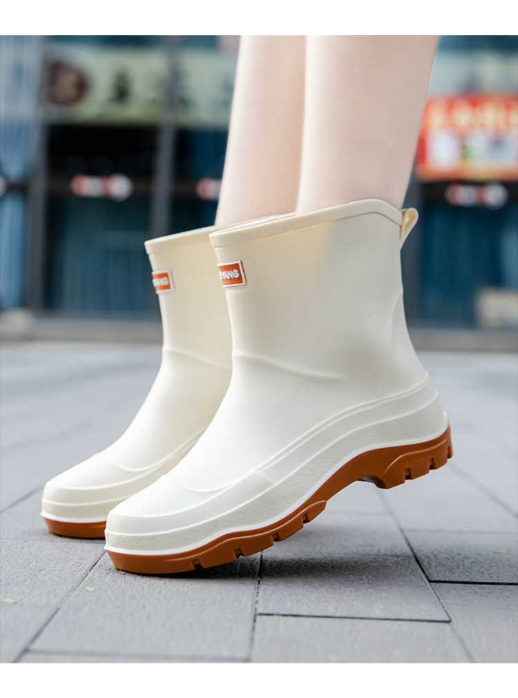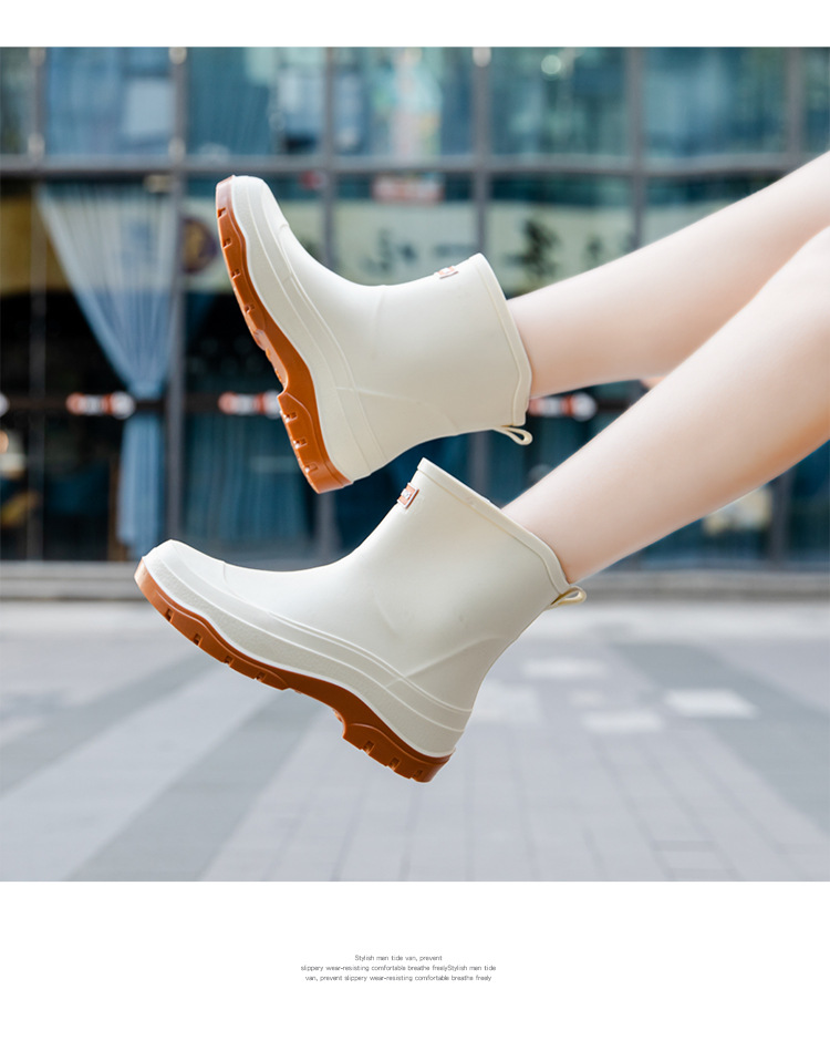 사계절 여성용 장화 일본식 패션 편안한 장화 여성용 원피스 방수 미끄럼 방지 물 신발 기모 짧은 고무 신발
