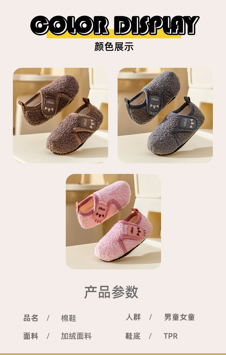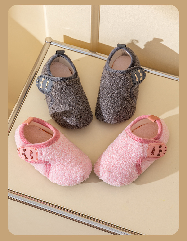 어린이 바닥 신발 두꺼운 밑창 양털 미끄럼 방지 홈 부드러운 밑창 기모 두꺼운 마오 마오 신발 만화 차가운 방지 바닥 양말스토어 가기