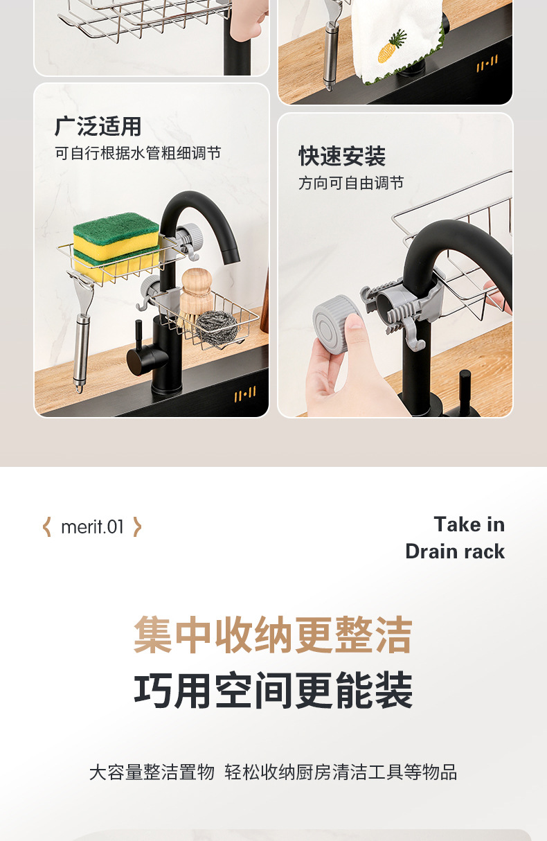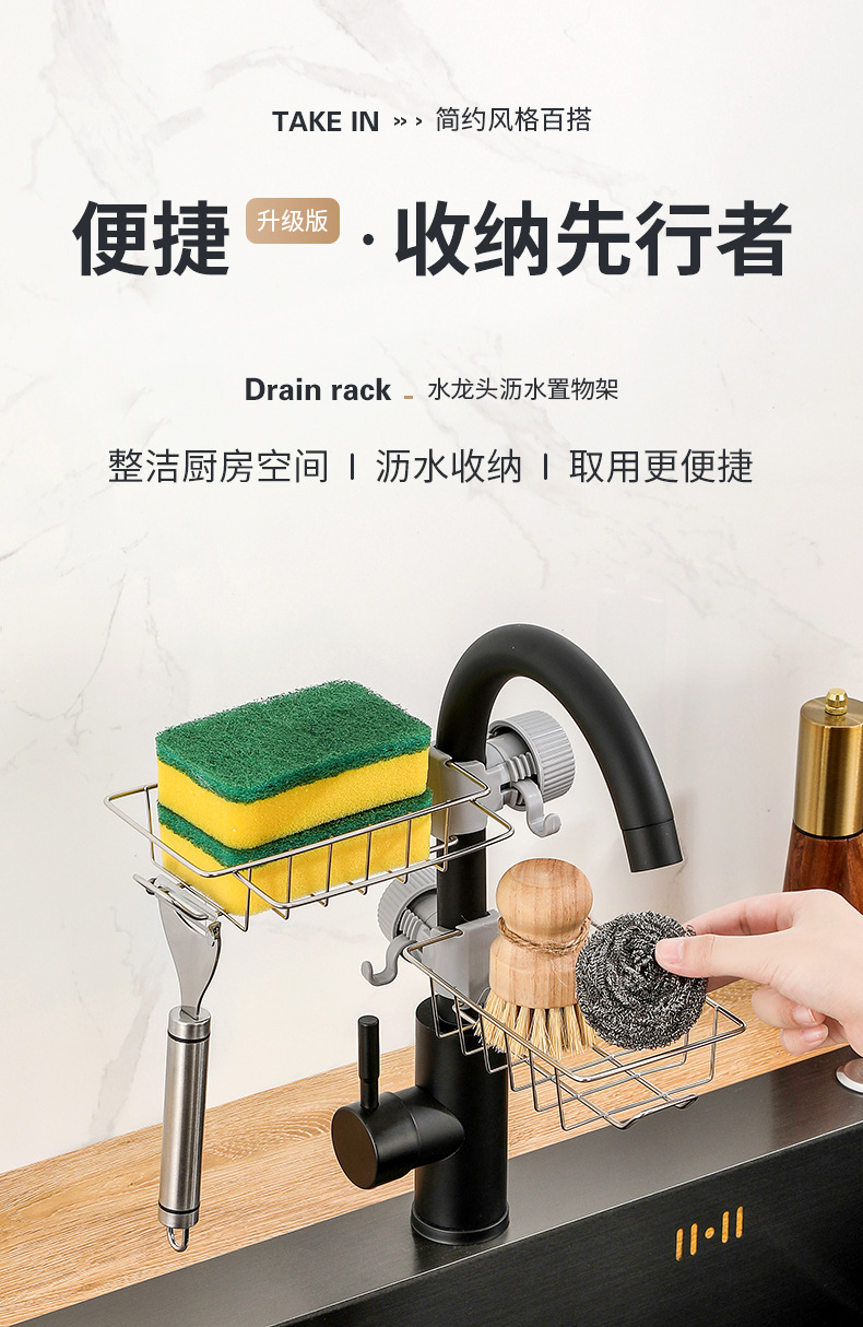 수도꼭지 보관 랙 스테인레스 스틸 주방 싱크 보관 랙 싱크 걸레 바구니 초대형 배수 랙스토어 가기