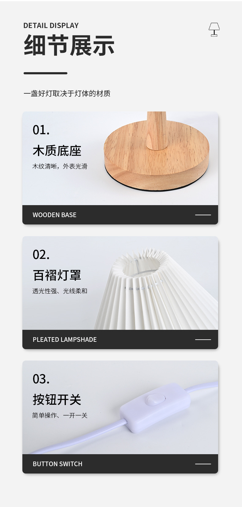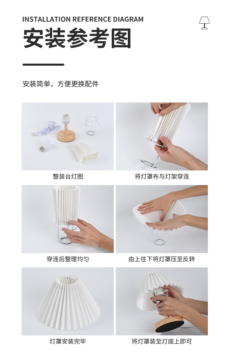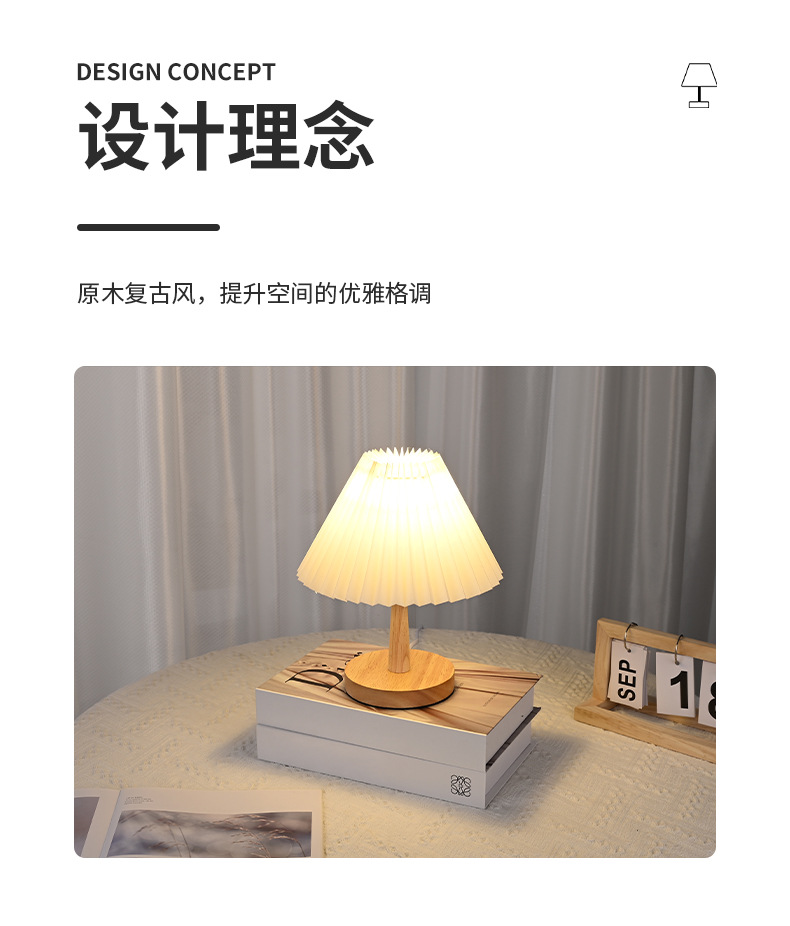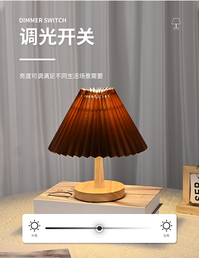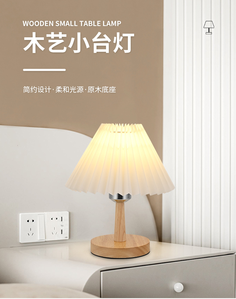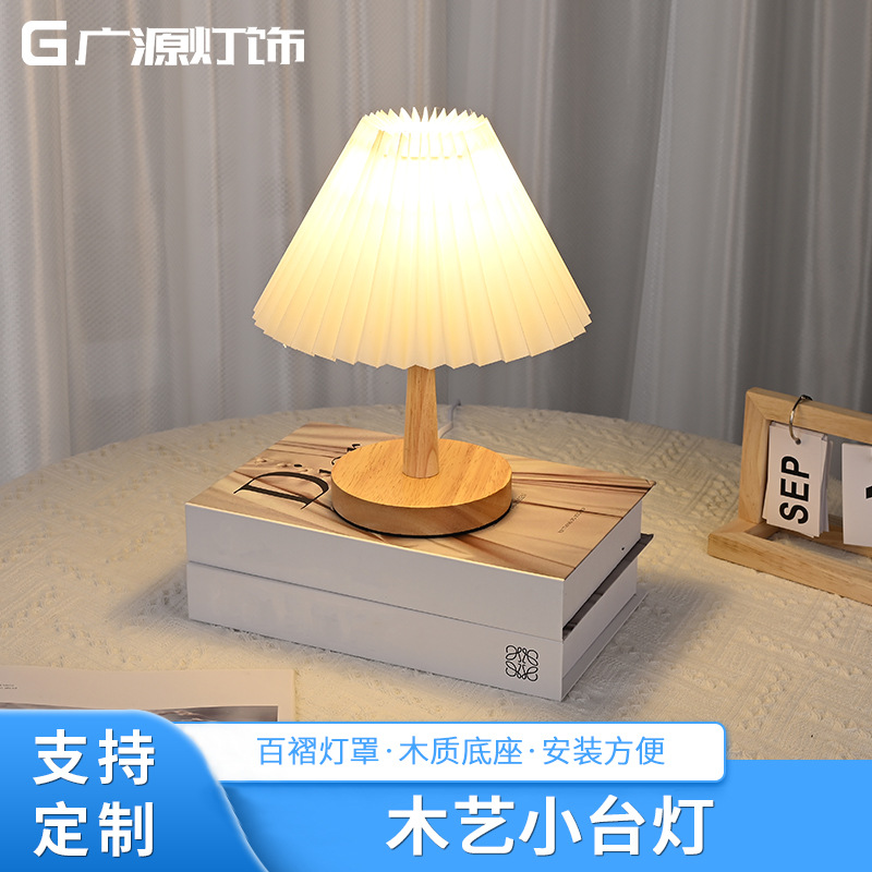 나무 작은 테이블 램프 led 직물 주름 램프 침실 장식 창조적 인 밤 빛 가정 따뜻한 침대 옆 램프 도매