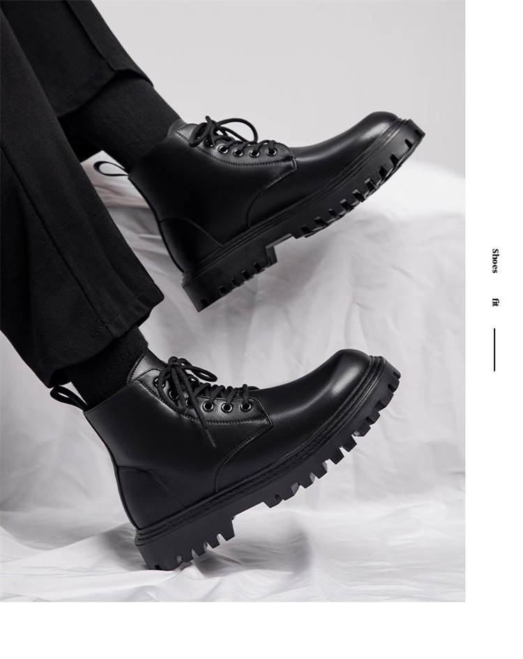 2025 가을 신작 남성 가죽 부츠 가을 신작 영국 스타일 마틴 부츠 남성 부츠 가죽 솔리드 컬러 블랙