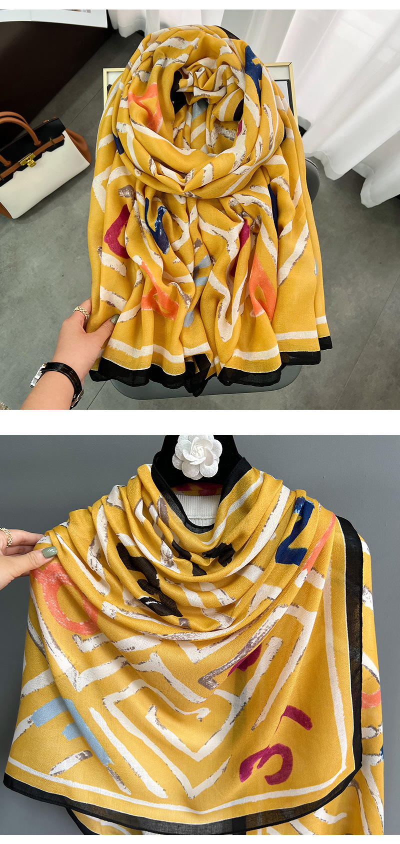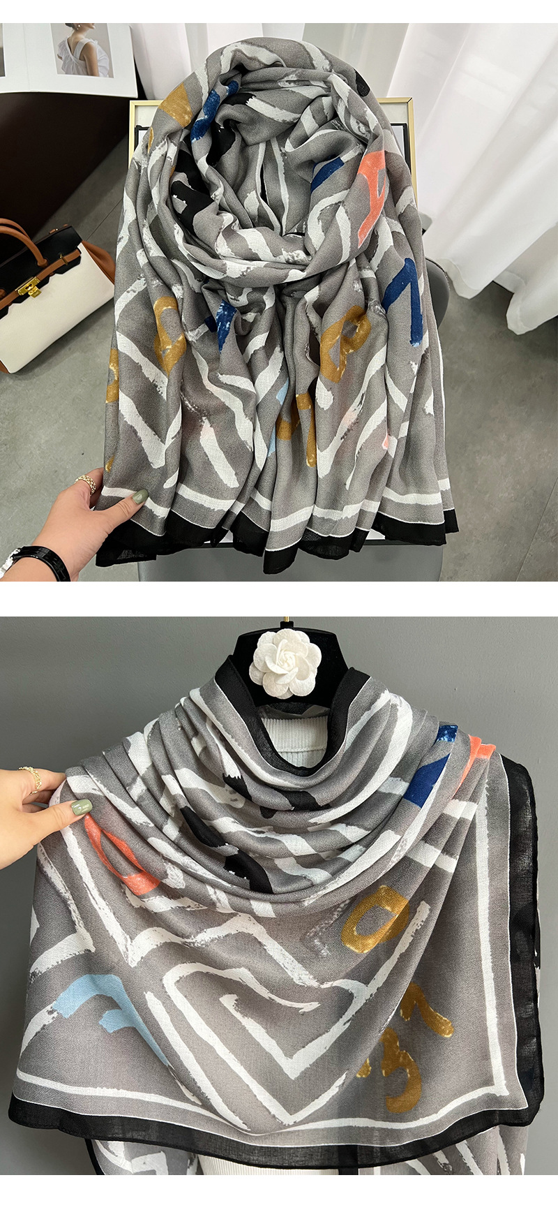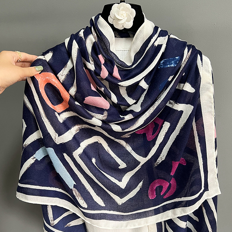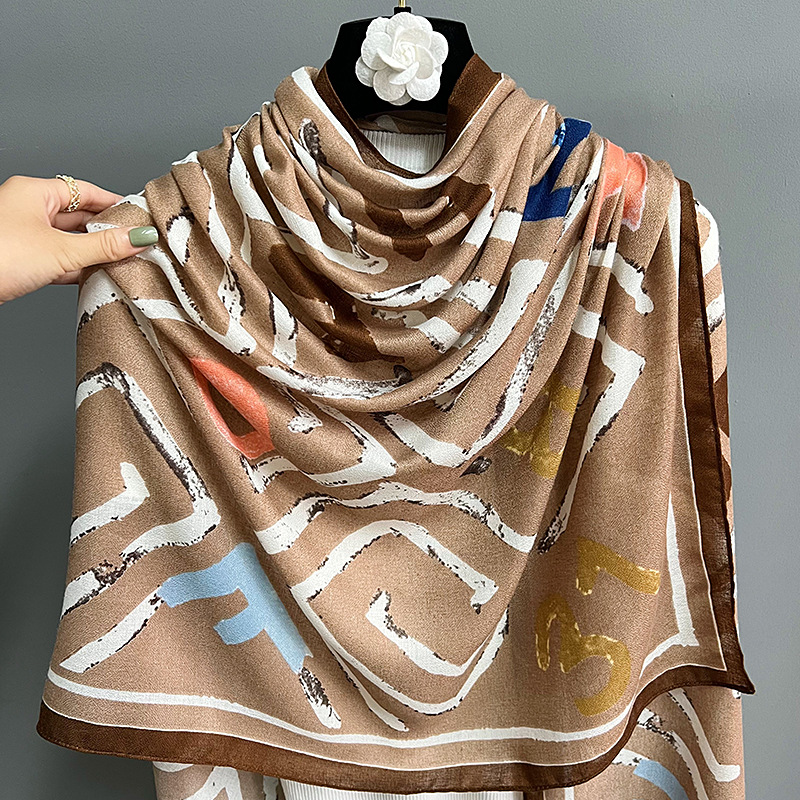 크로스 보더 신면 린넨 레터 스카프 여성 한국 패션 하이 엔드 감각 외부 숄 패딩 따뜻한 스카프 도매
