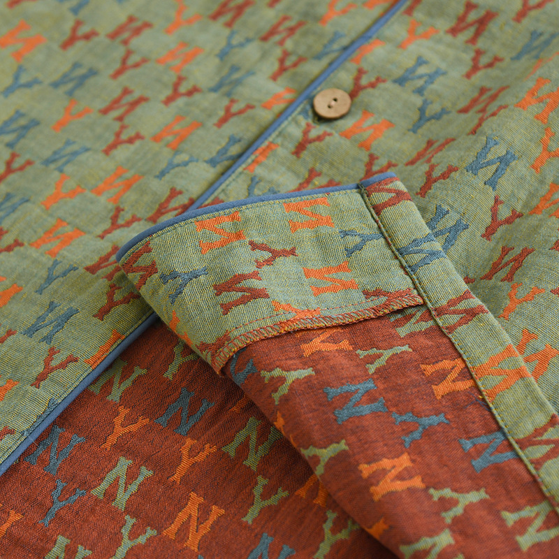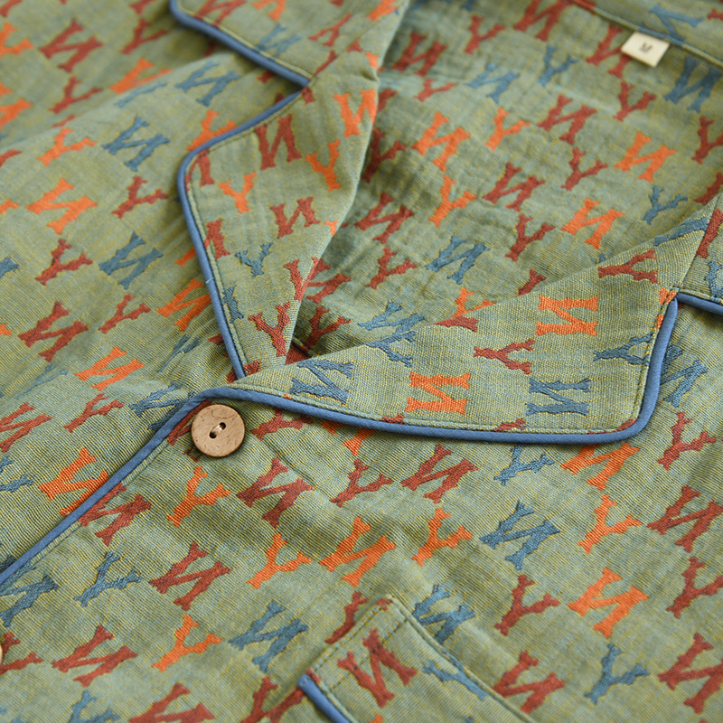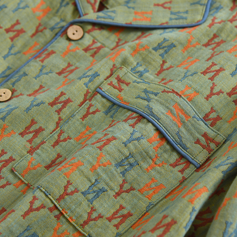 남자의 원사 염색 자카드 사계절 모든 면 플러스 사이즈 옷깃 가정 옷 세트 느슨한 편안한 속옷 가정 옷스토어 가기