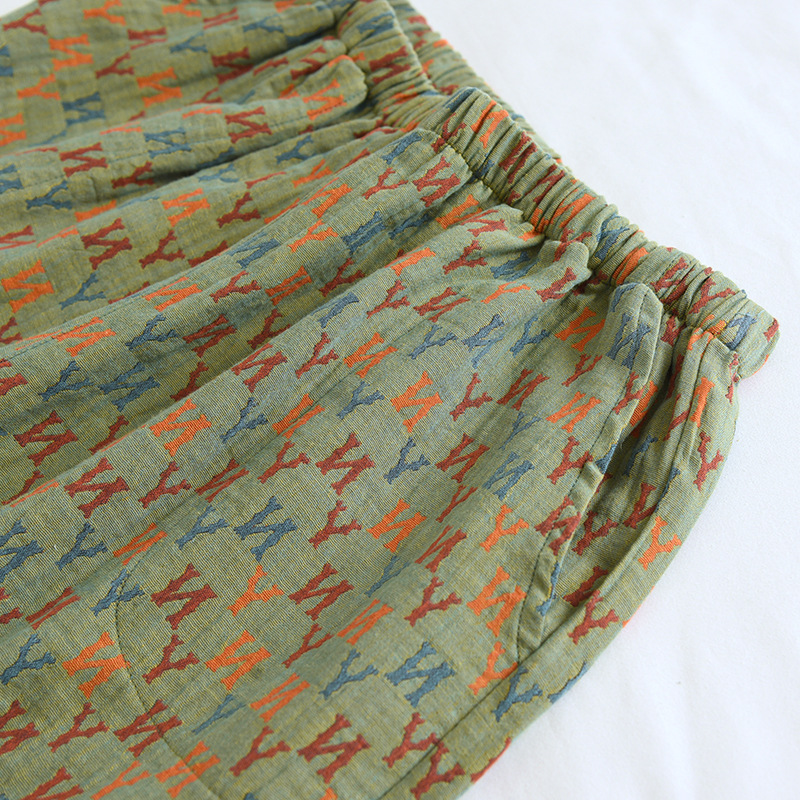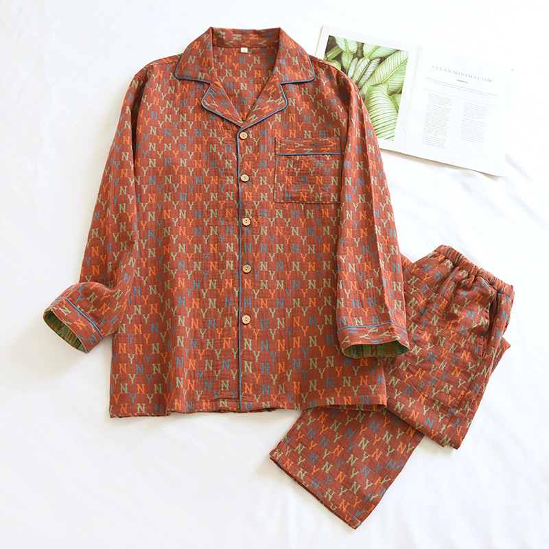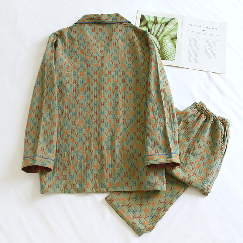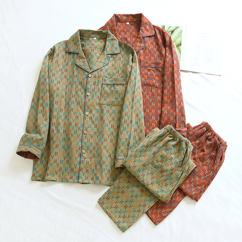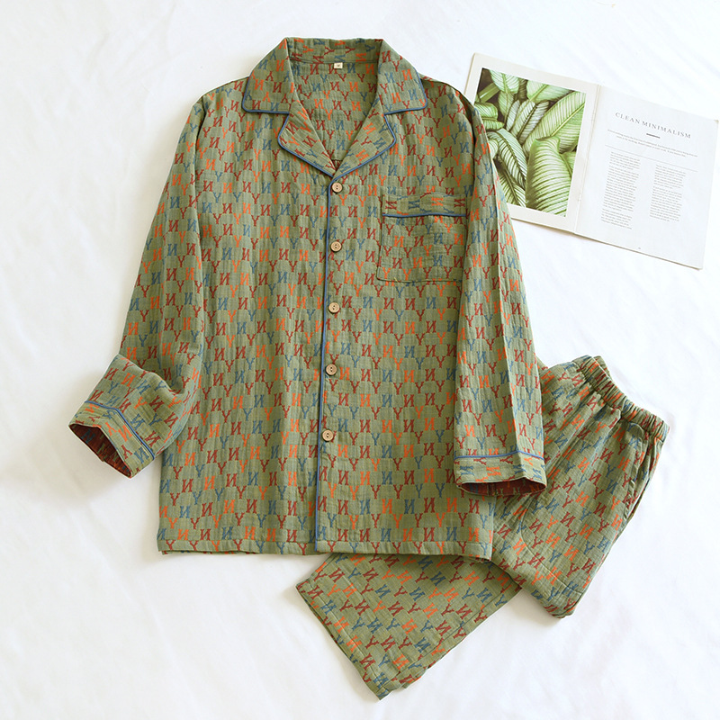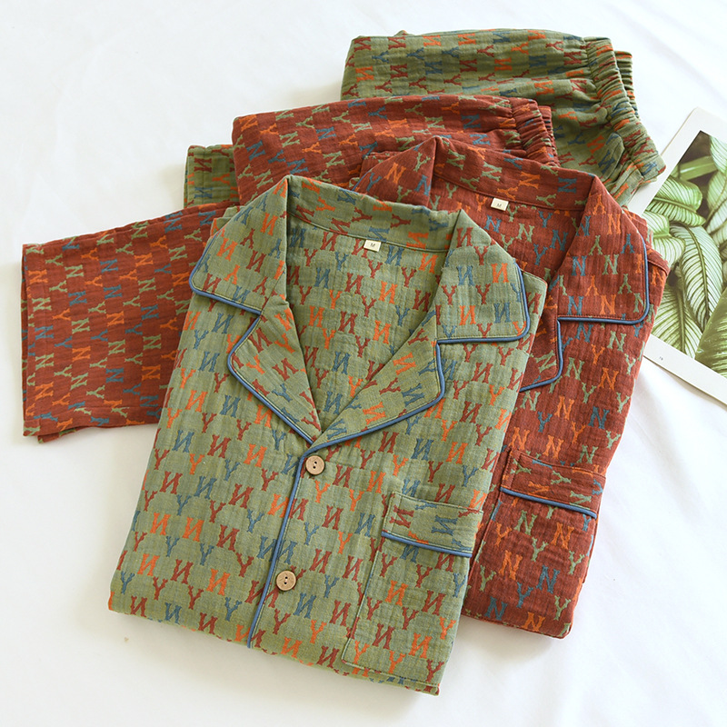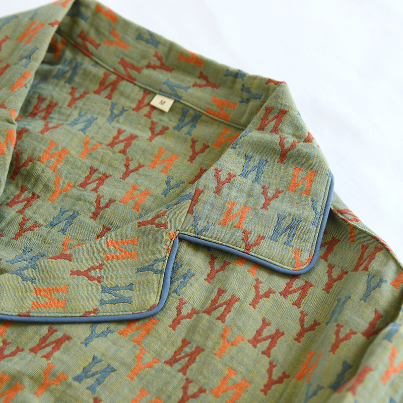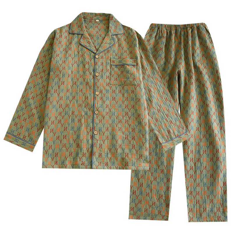 남자의 원사 염색 자카드 사계절 모든 면 플러스 사이즈 옷깃 가정 옷 세트 느슨한 편안한 속옷 가정 옷