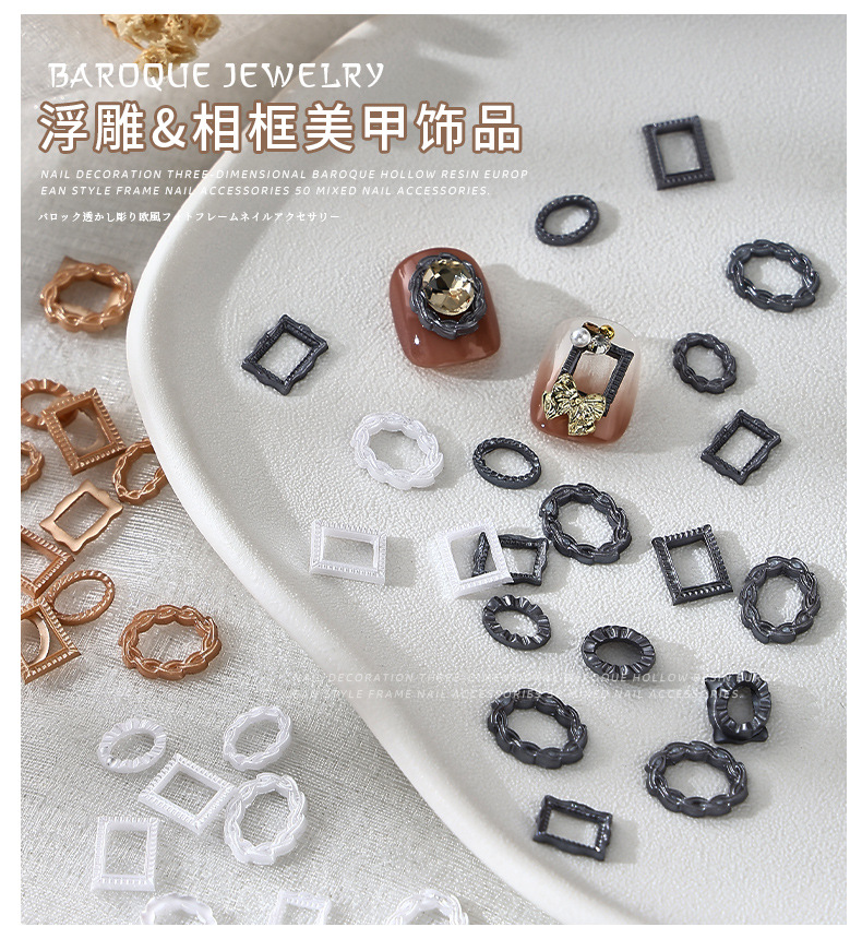 네일 아트 양각 사진 프레임 보석 바로크 복고풍 인터넷 연예인 중공 고대 골드 화이트 DIY 네일 장식스토어 가기