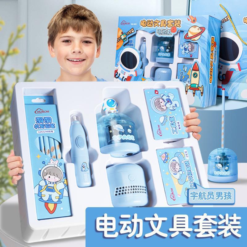 만화 전기 문구 세트 초등 학생 크리스마스 선물 자동 연필 깎이 37 개 세트 학용품 선물 팩스토어 가기