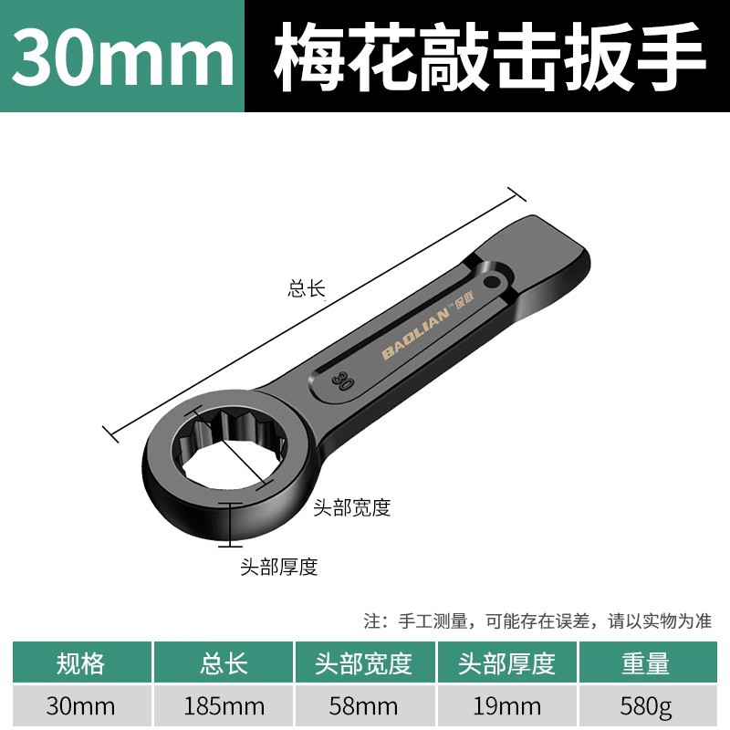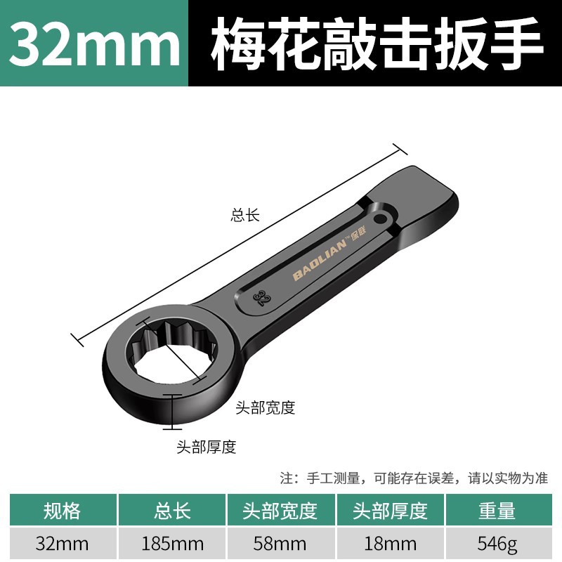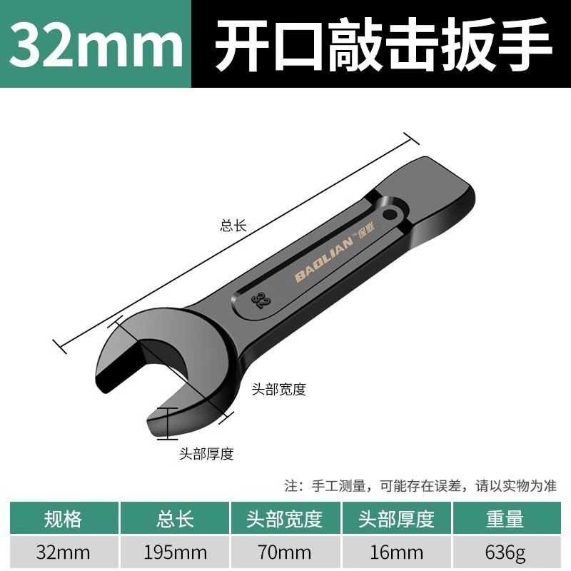 Baolian 헤비 노크 렌치 스트레이트 핸들 싱글 헤드 오픈 링 렌치 24/30/32/36/41/46/50/65스토어 가기