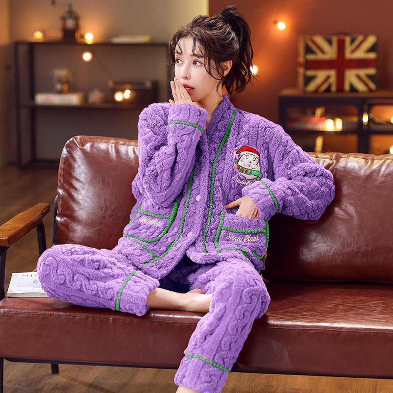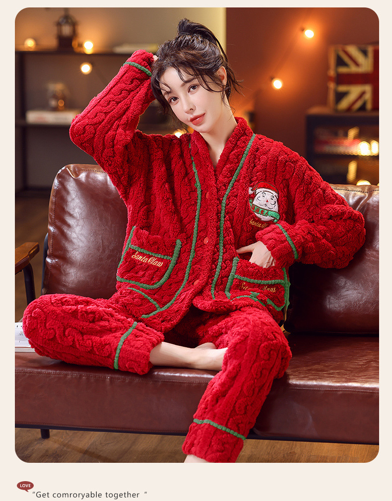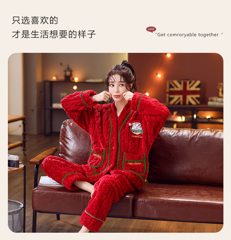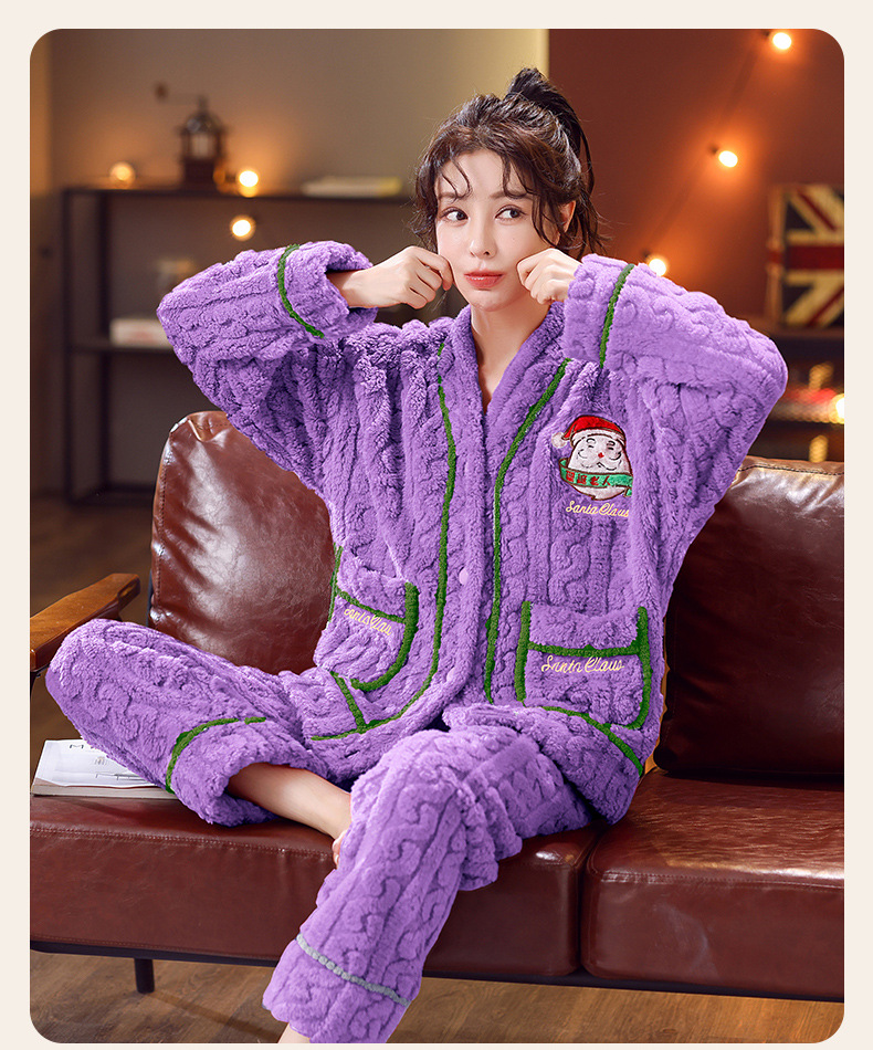 크리스마스 잠옷 도매 국경 새로운 V 넥 벨벳 패딩 플란넬 파자마 겨울 소녀 홈 의류 세트스토어 가기