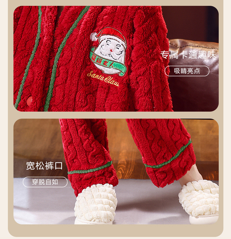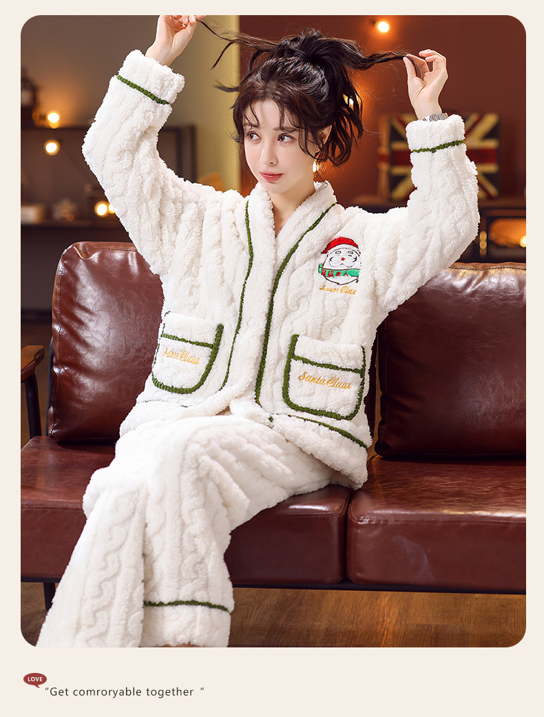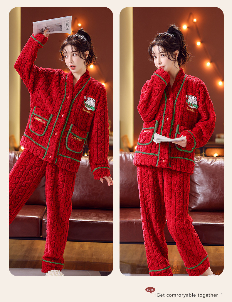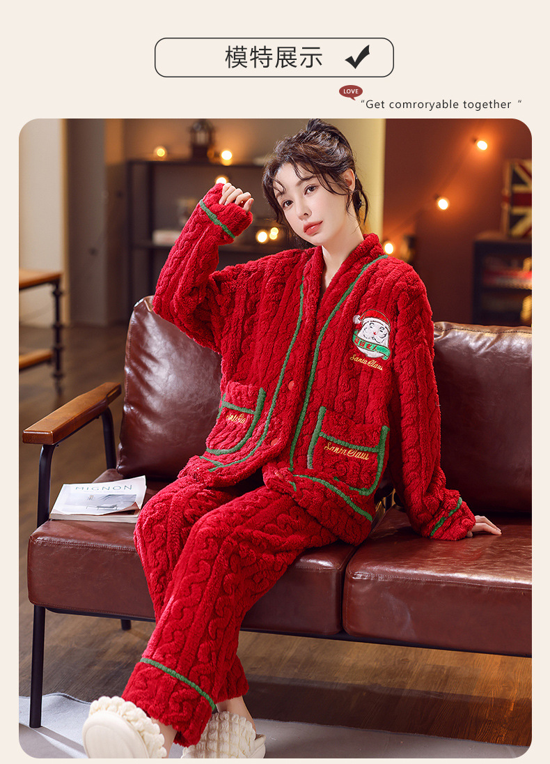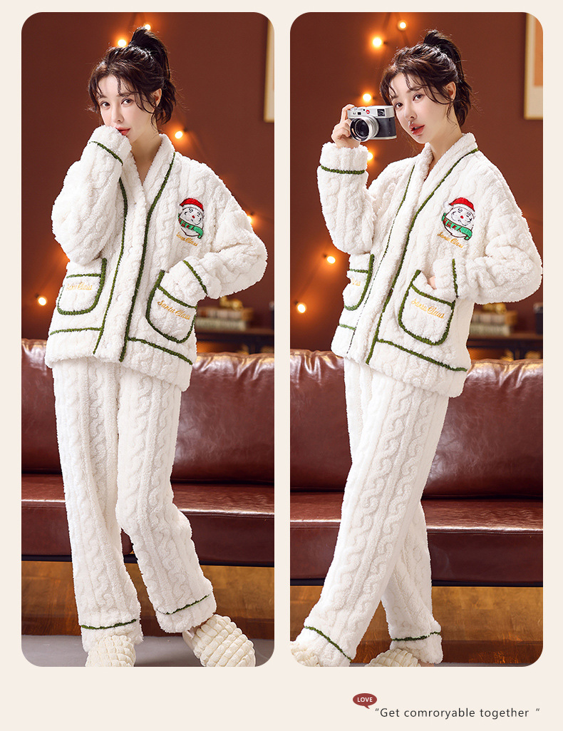 크리스마스 잠옷 도매 국경 새로운 V 넥 벨벳 패딩 플란넬 파자마 겨울 소녀 홈 의류 세트