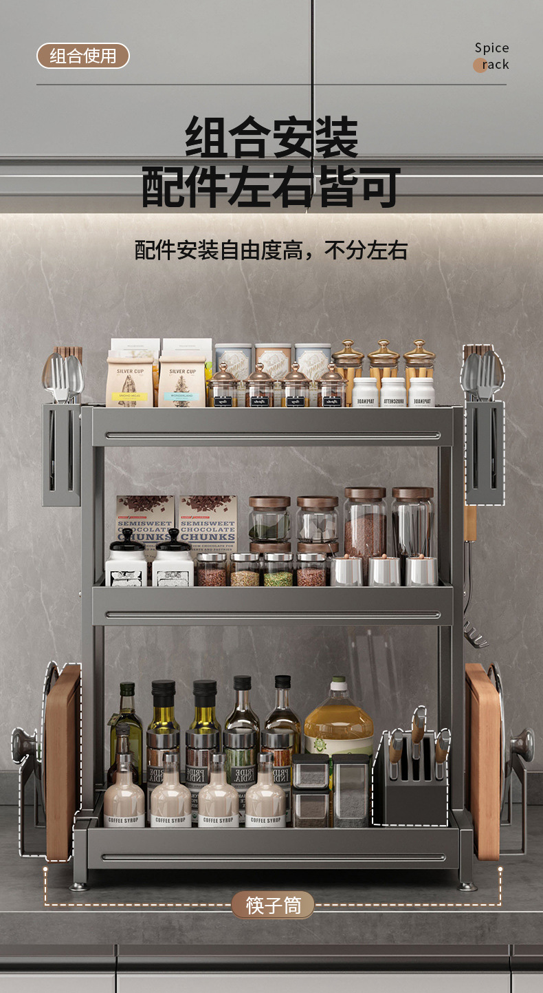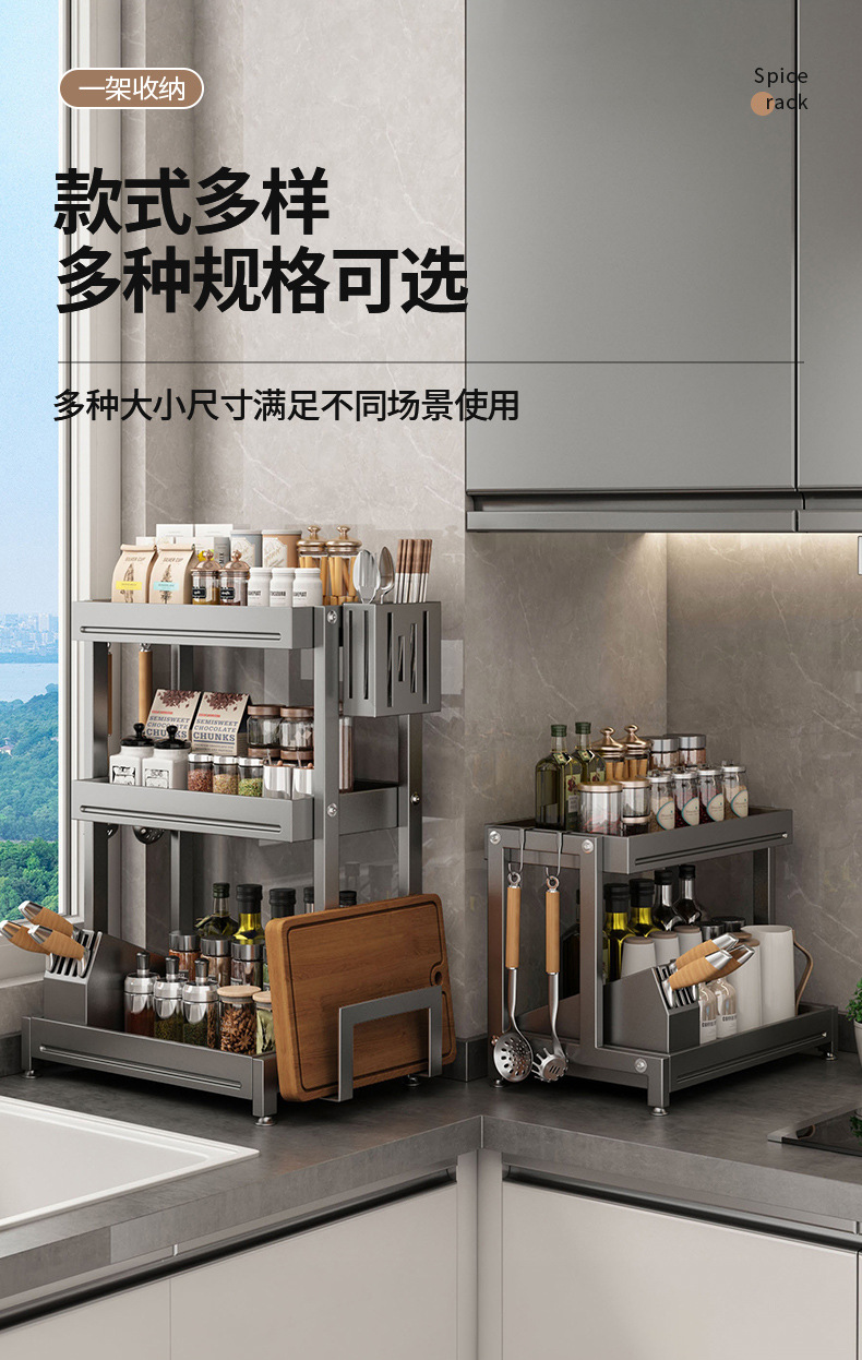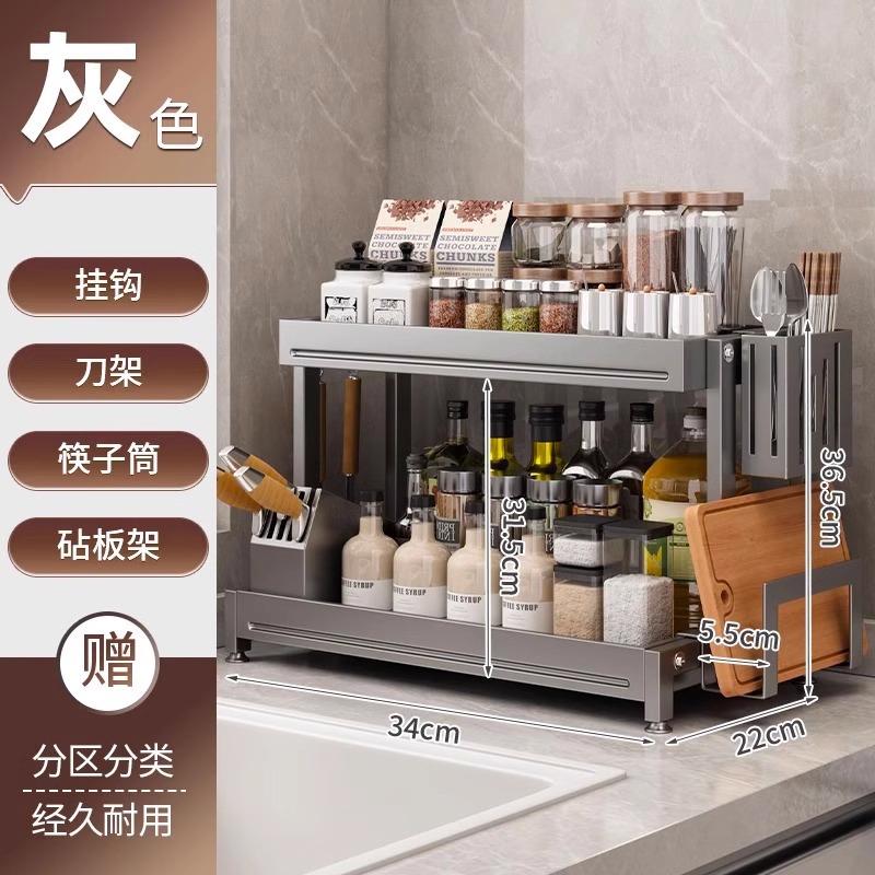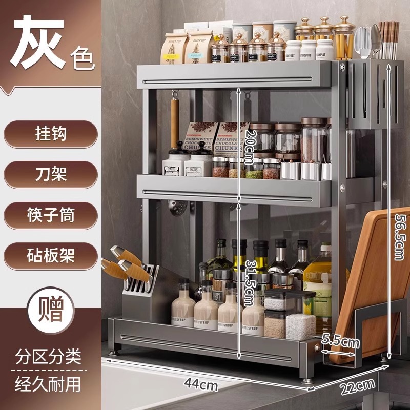 건 그레이 주방 조미료 보관 랙 가정용 조리대 다기능 나이프 홀더 조미료 용품 다층 보관 선반스토어 가기