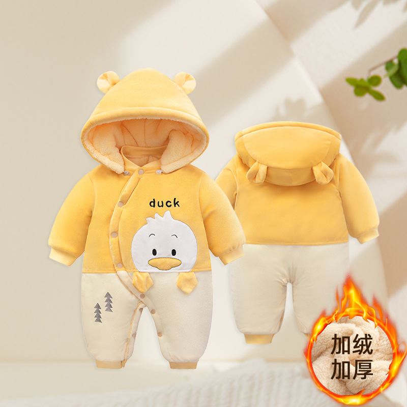 아기의 면 패딩 점프 슈트 겨울 남성과 아기의 Hayi 등산 의류 기모 두꺼운 신생아 외출복 따뜻한 여성의
