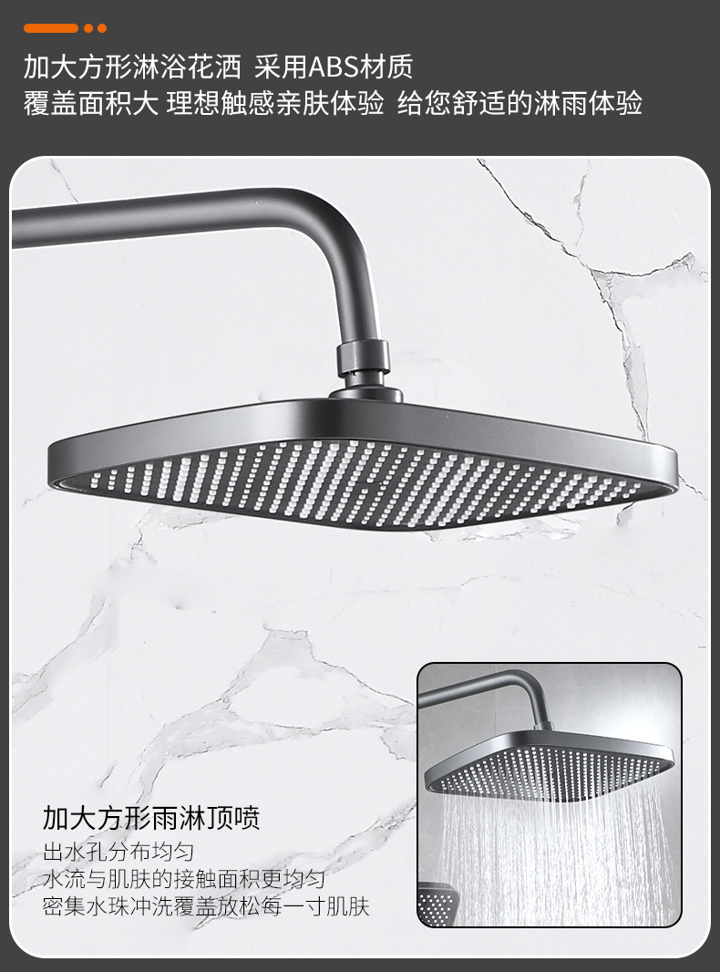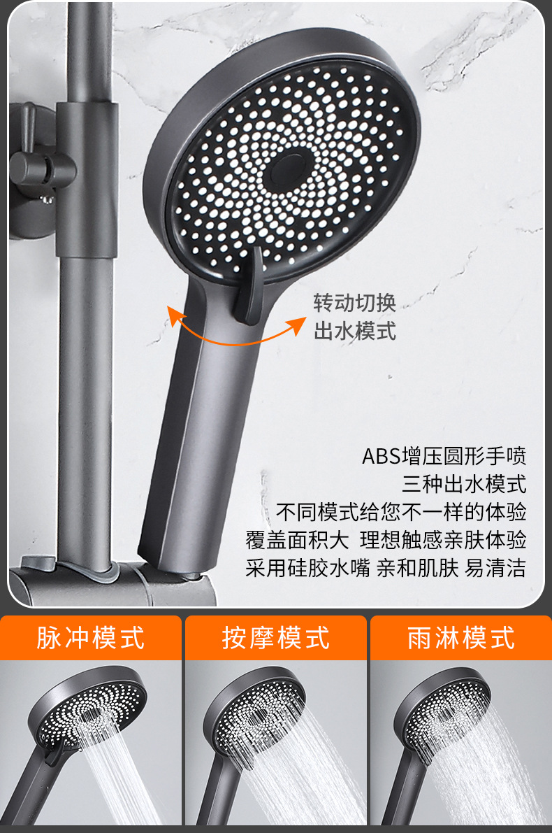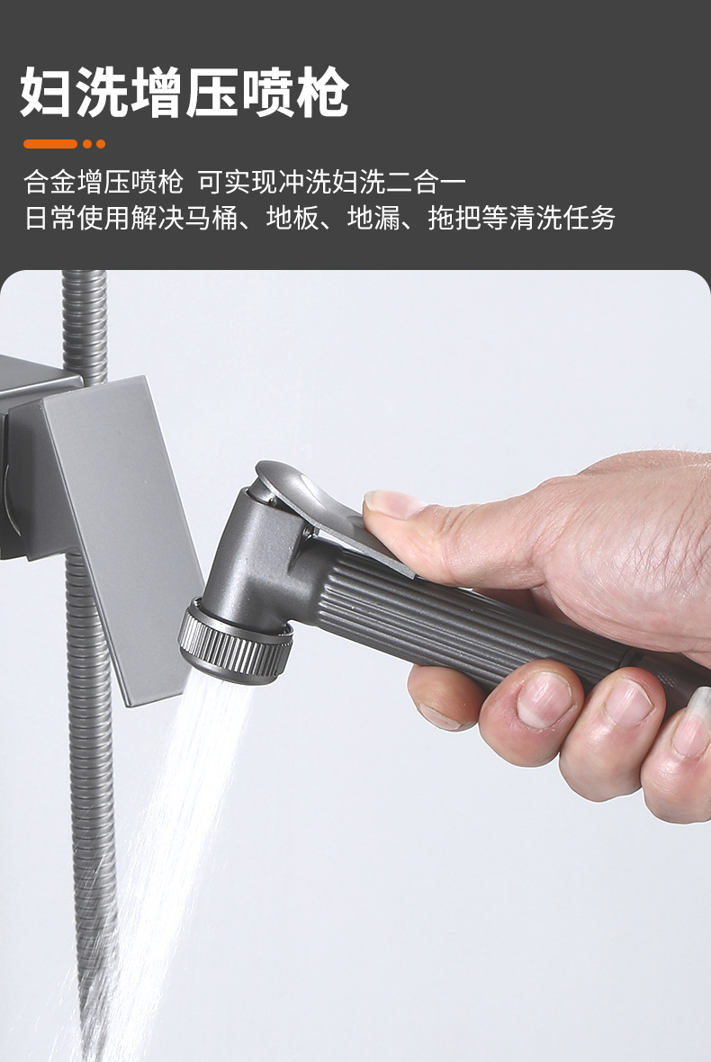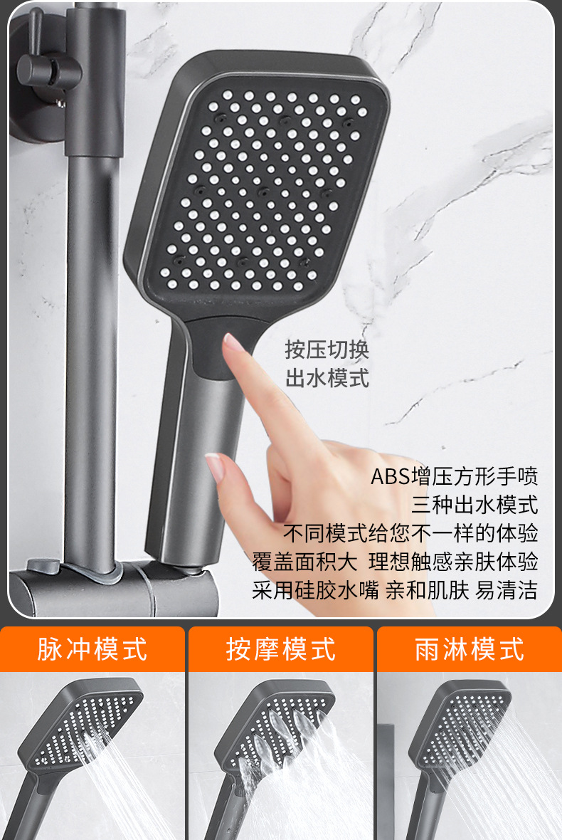 총 회색 욕실 샤워 헤드 세트 뜨겁고 차가운 4 기어 비 가압 샤워 헤드 구리 본체 수도꼭지 국경
