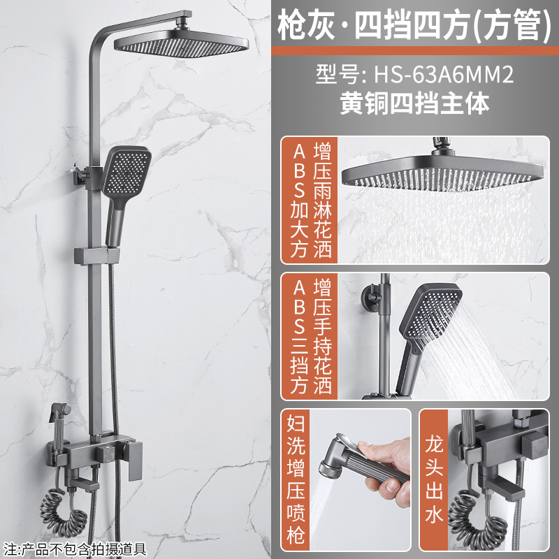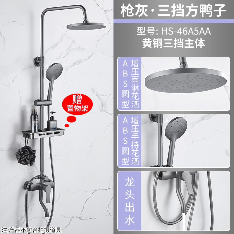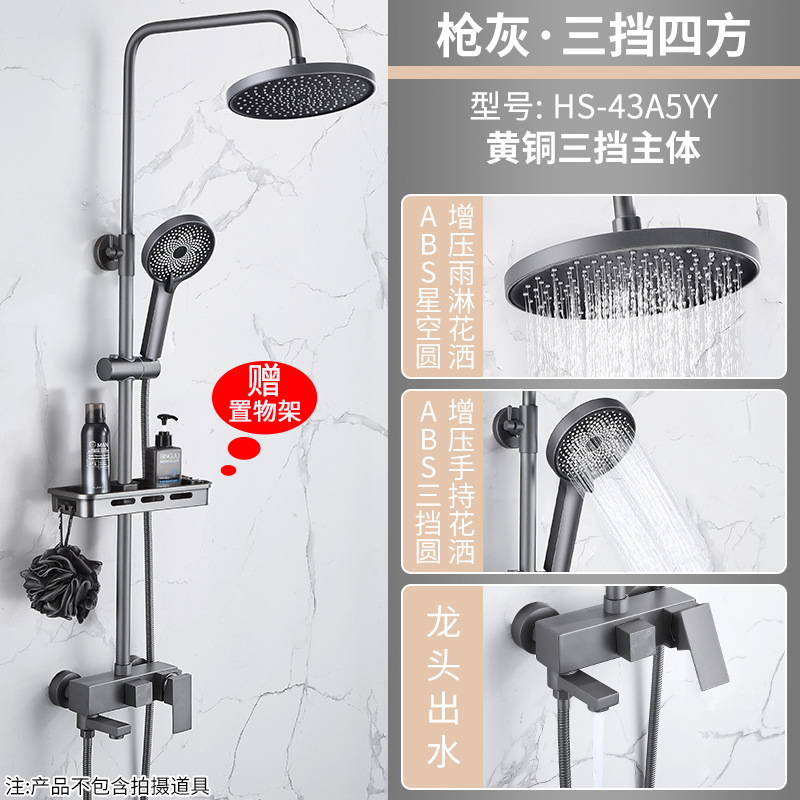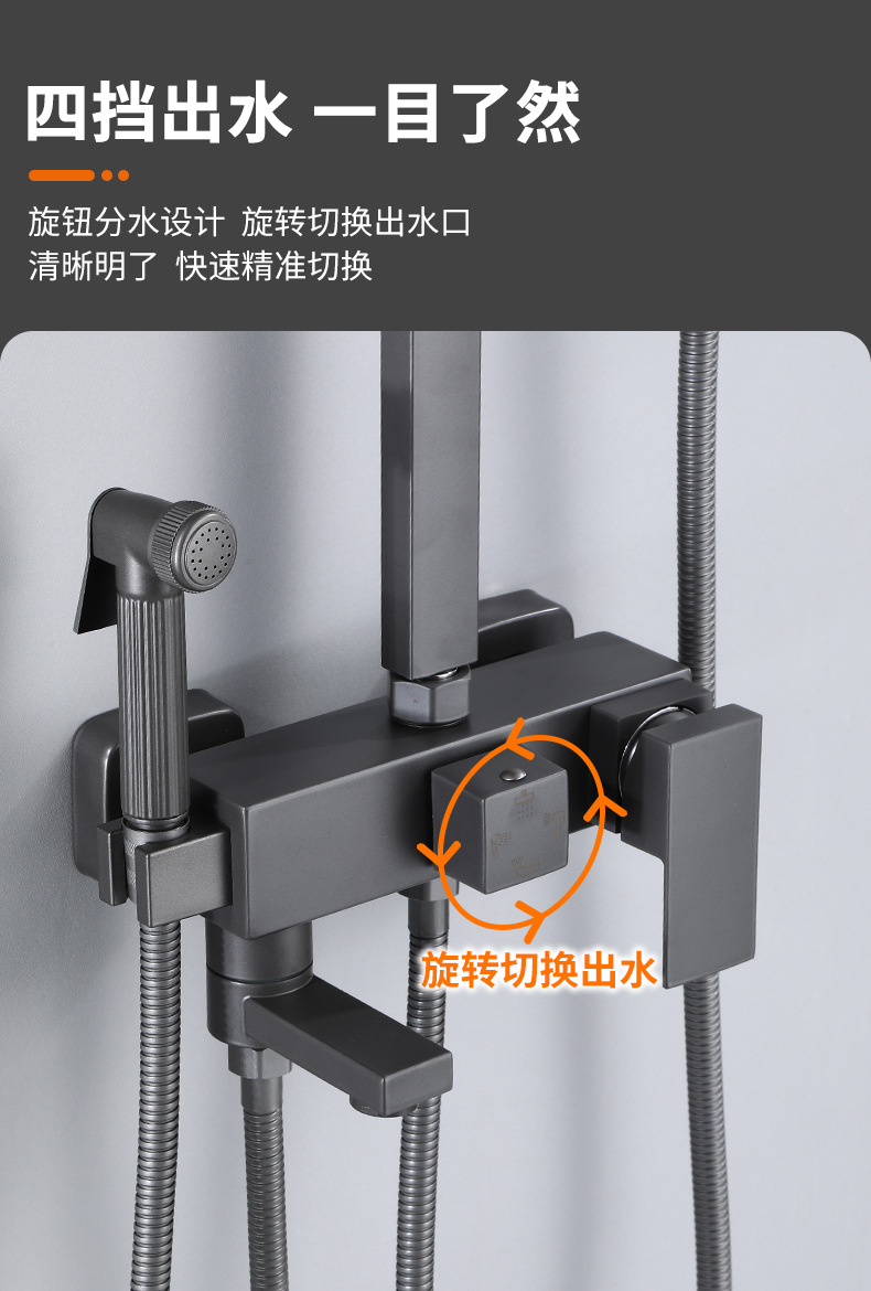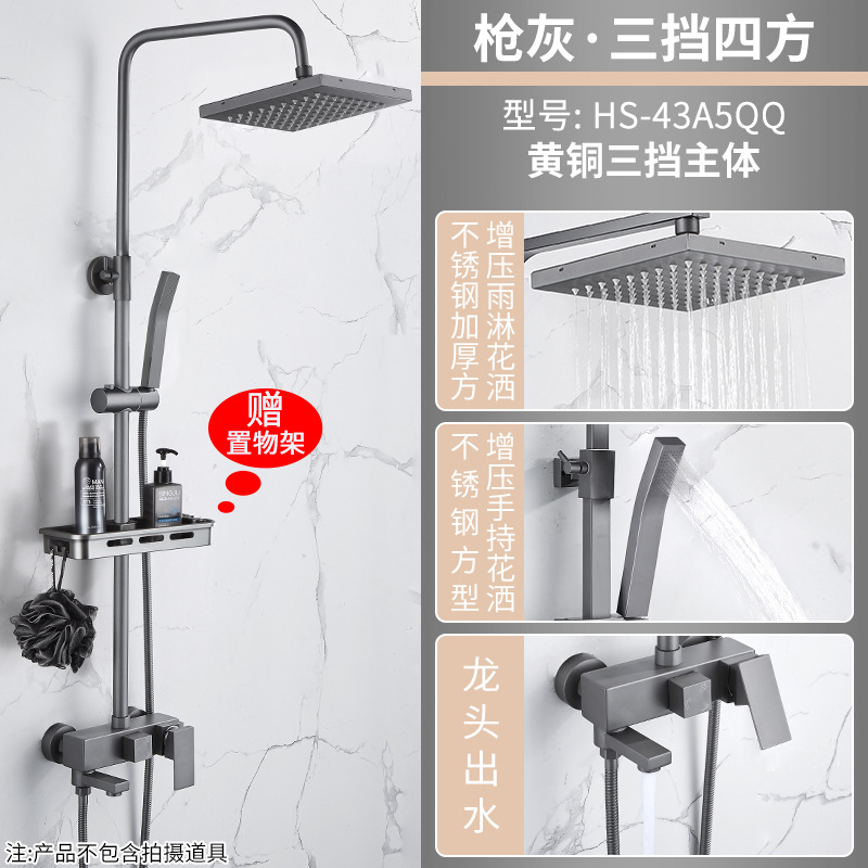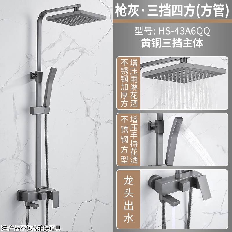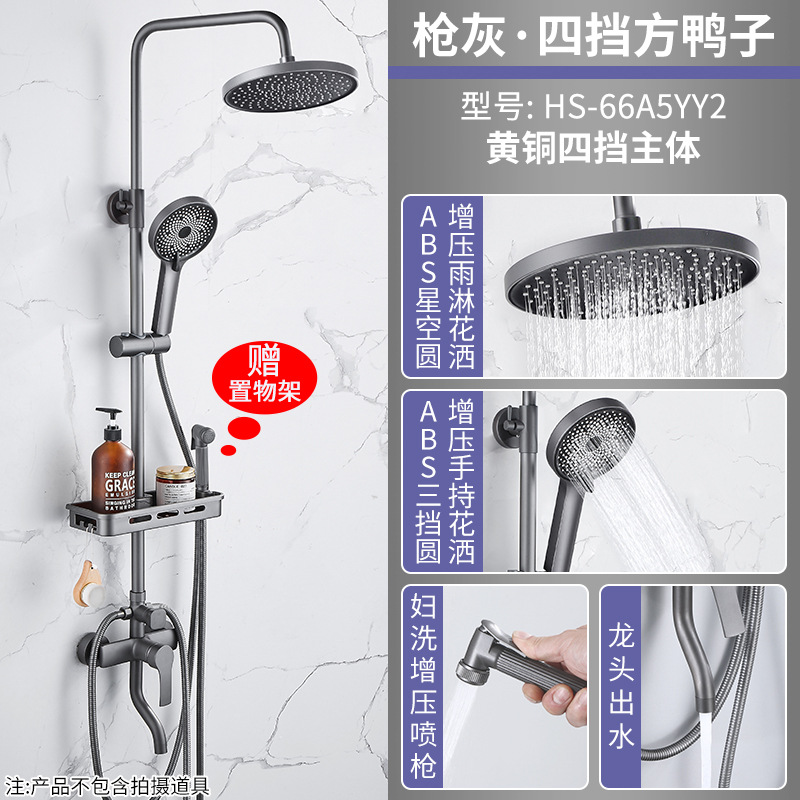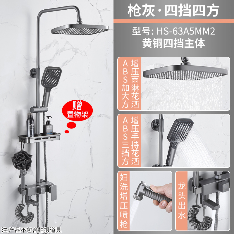 총 회색 욕실 샤워 헤드 세트 뜨겁고 차가운 4 기어 비 가압 샤워 헤드 구리 본체 수도꼭지 국경스토어 가기