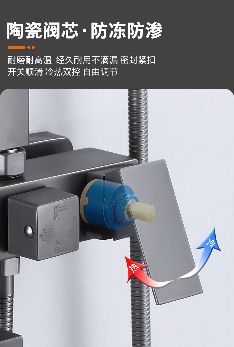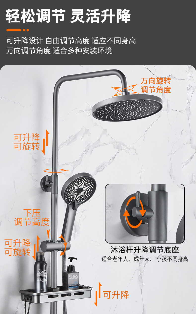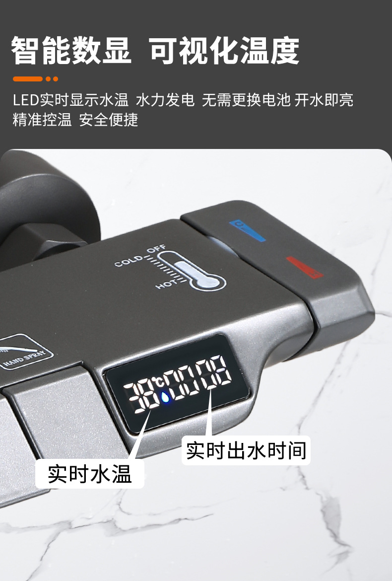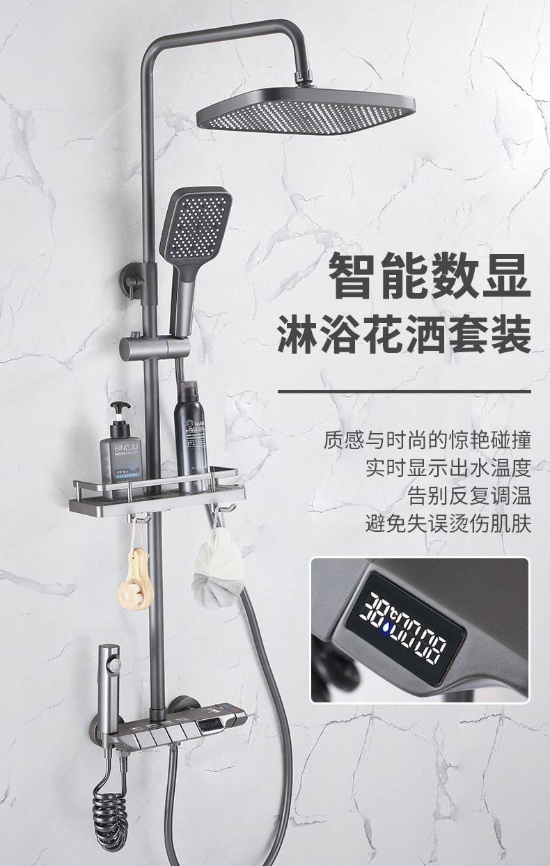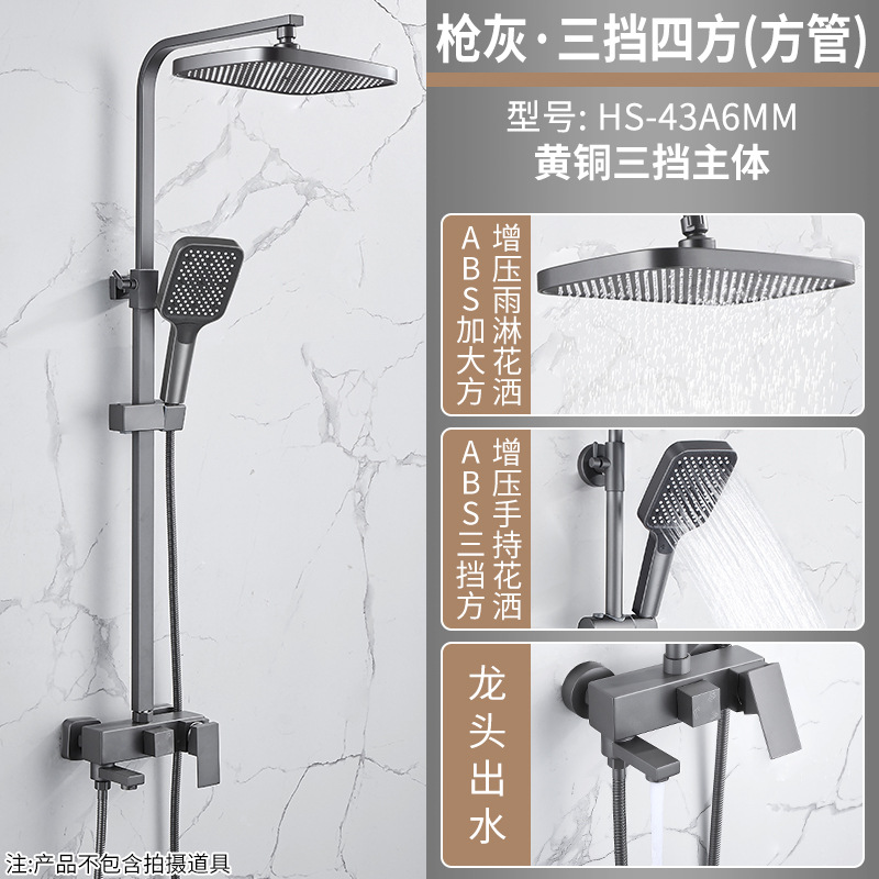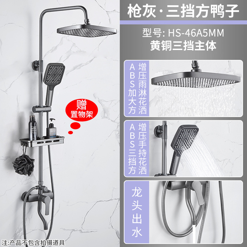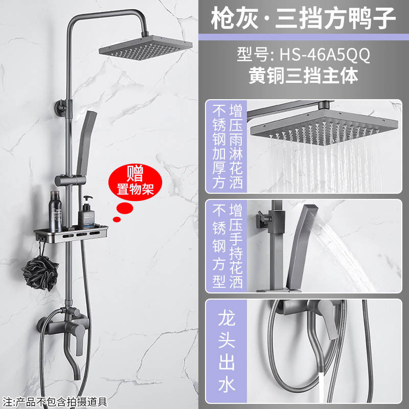 총 회색 욕실 샤워 헤드 세트 뜨겁고 차가운 4 기어 비 가압 샤워 헤드 구리 본체 수도꼭지 국경스토어 가기