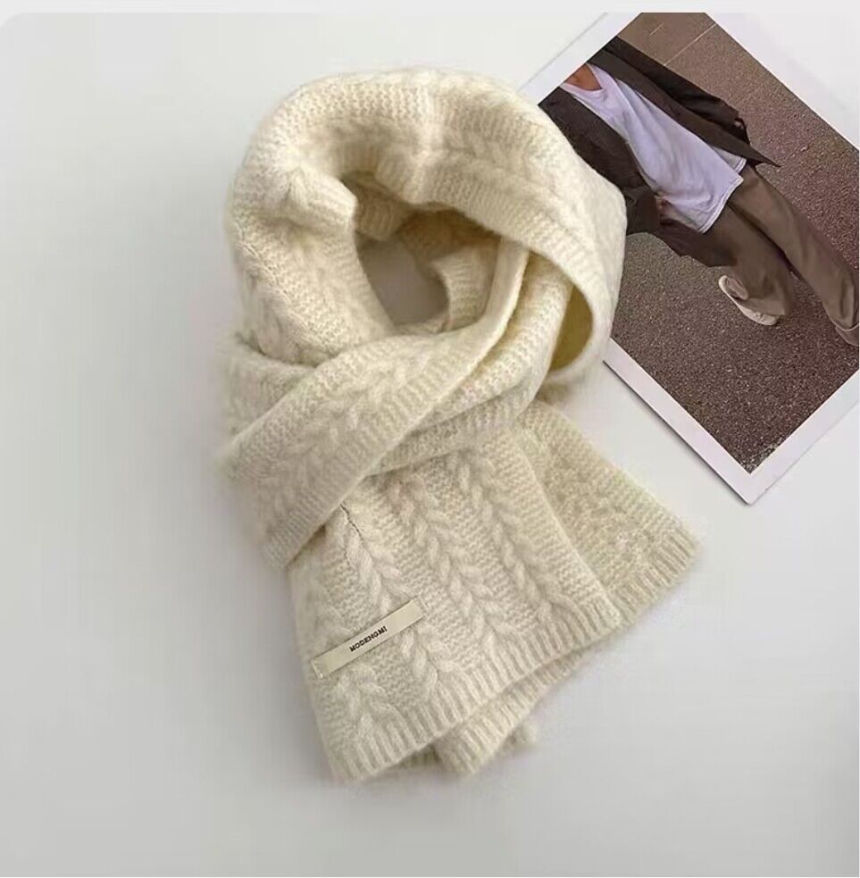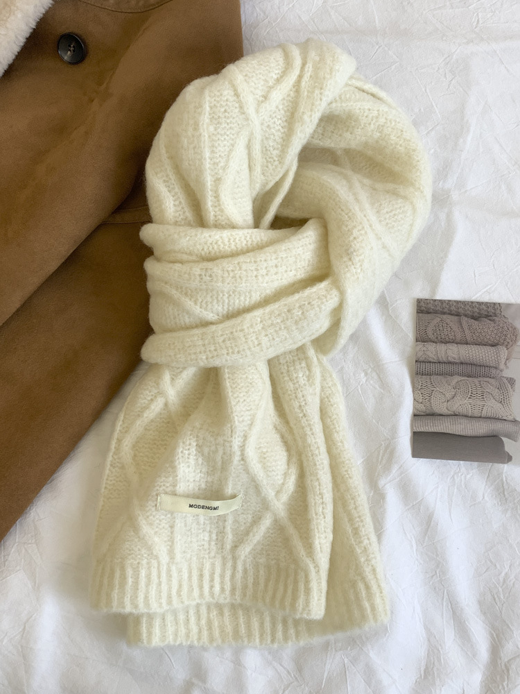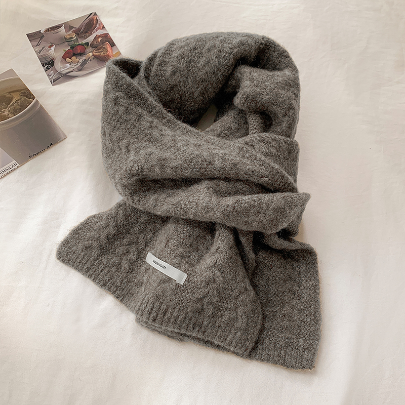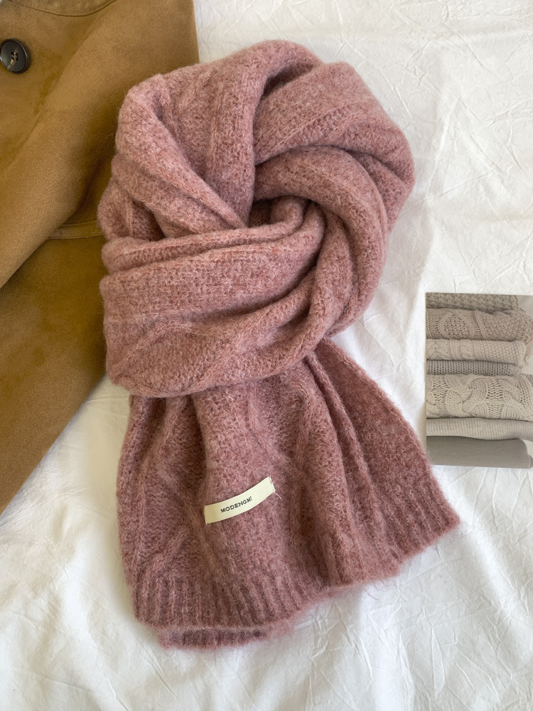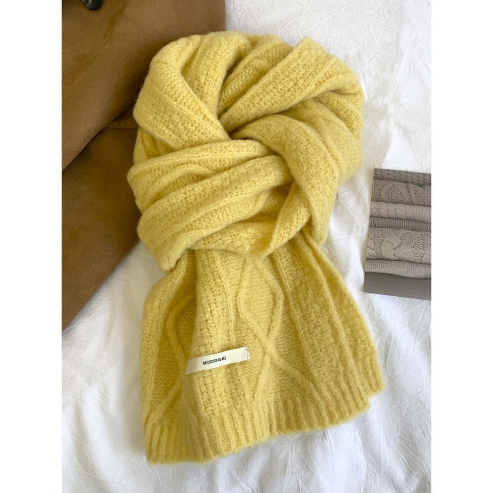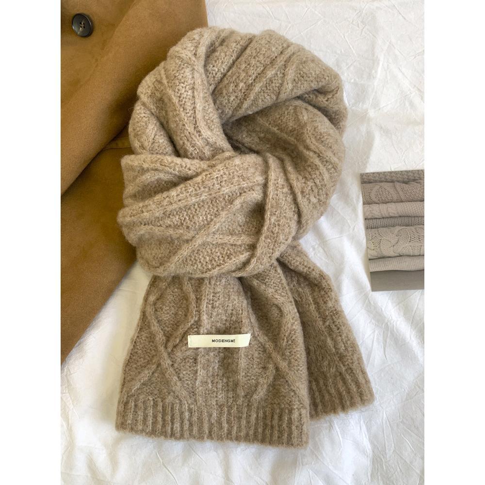 아보카도 그린 울 니트 울 스카프 여성의 가을과 겨울 한국식 단색 따뜻한 두꺼운 학생 트위스트 스카프스토어 가기