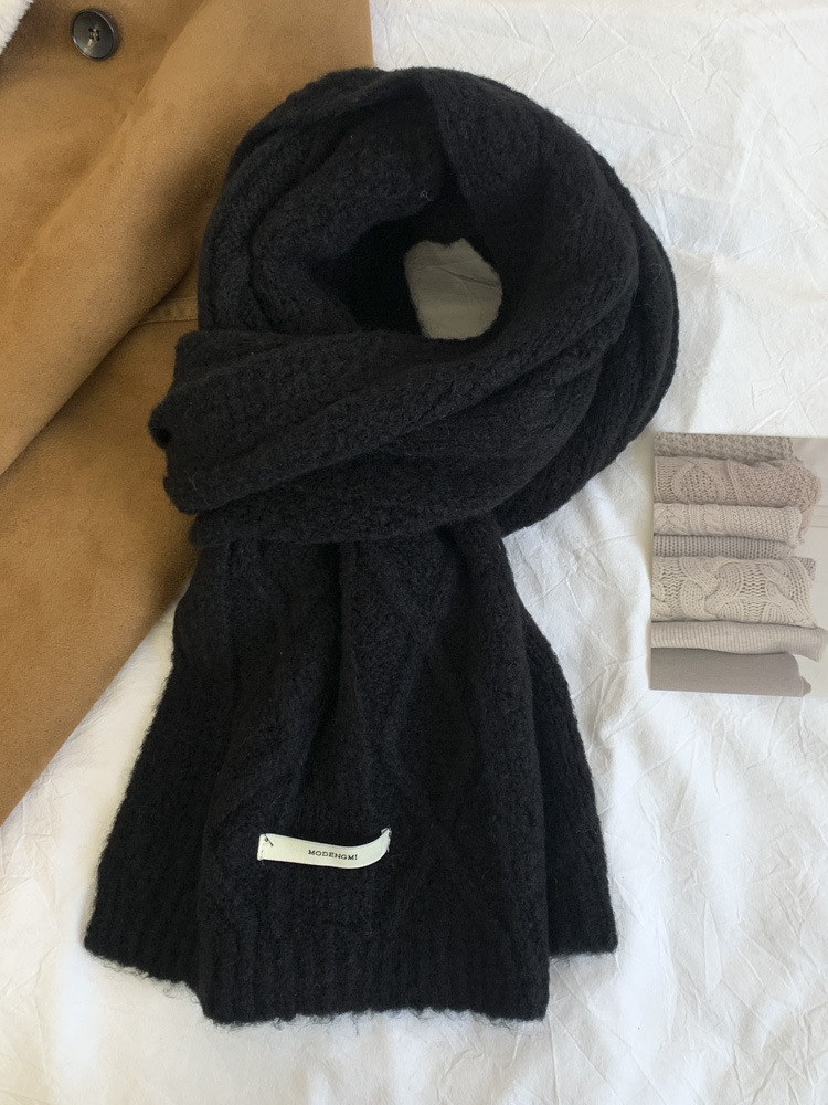 아보카도 그린 울 니트 울 스카프 여성의 가을과 겨울 한국식 단색 따뜻한 두꺼운 학생 트위스트 스카프