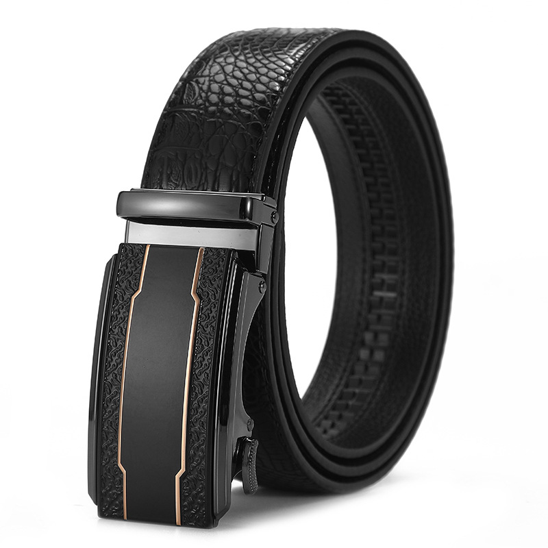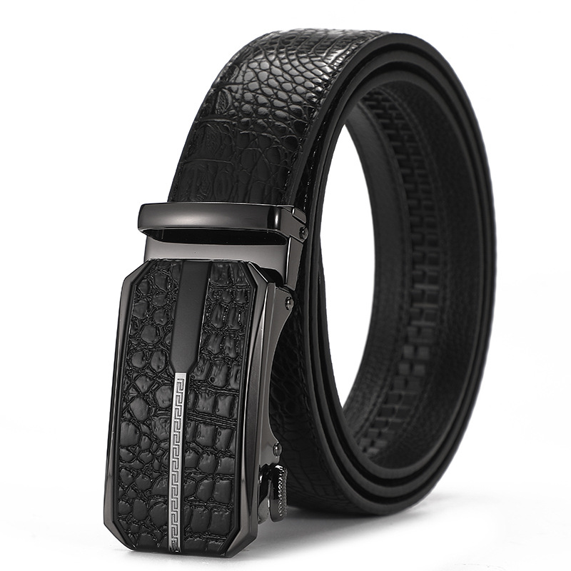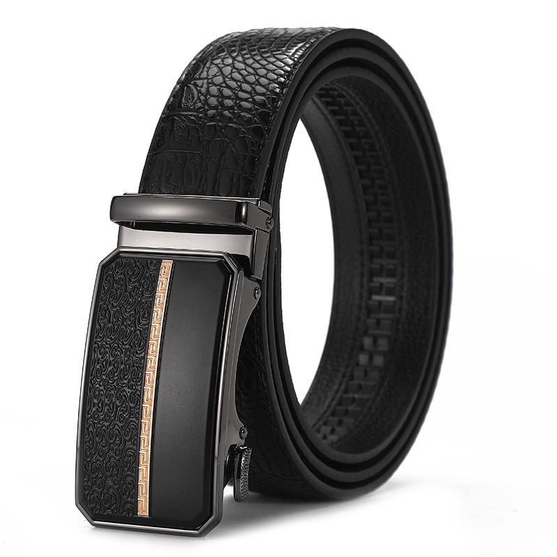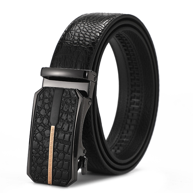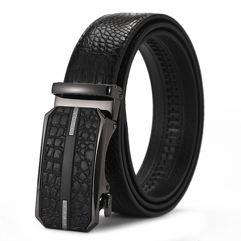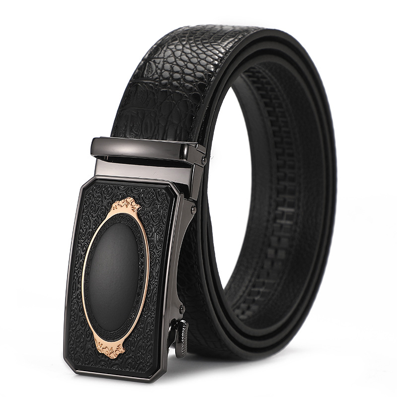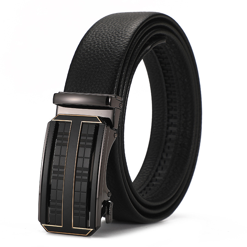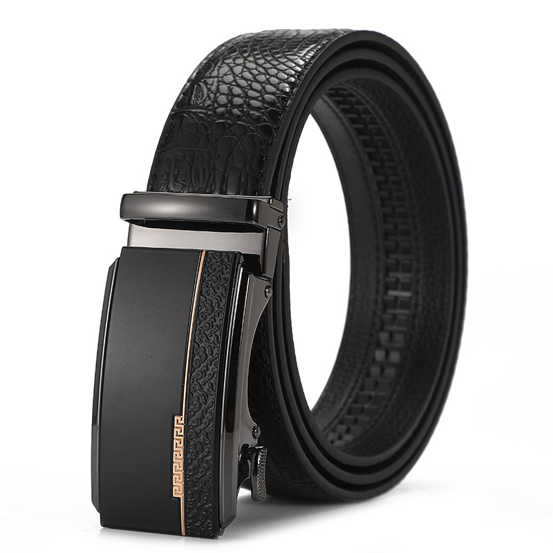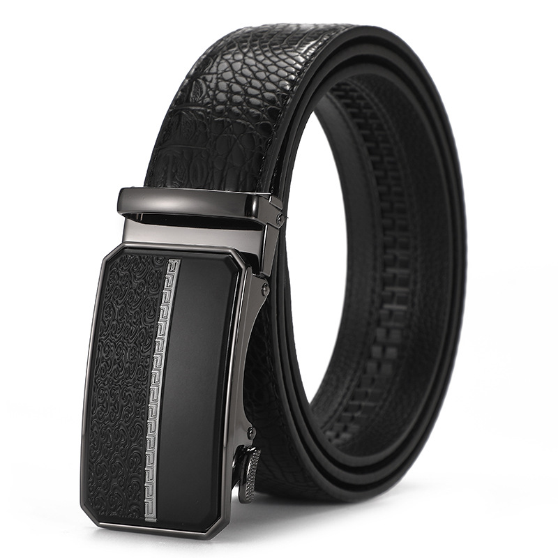 새로운 가죽 벨트 남성 정품 가죽 자동 버클 고급 Cowhide 벨트 남성 유럽과 미국 비즈니스 올 매치 합금 바지 벨트